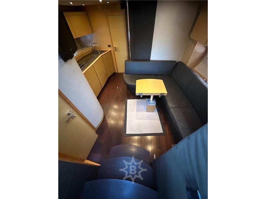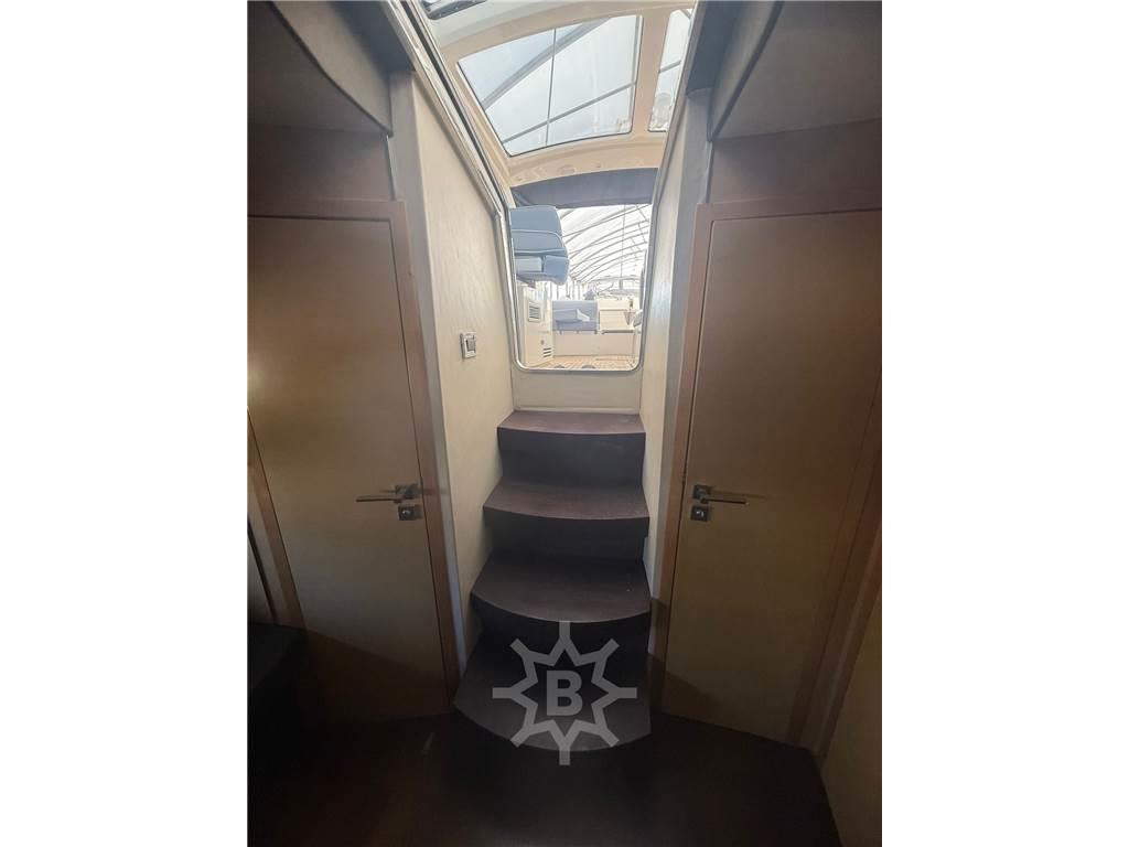 Notas internasNotas de la instrumentaciónAngolo barra, Bussola, Comando motori elettronico, Contametri catena, Contamiglia, Ecoscandaglio, GPS, Pilota automatico, Plotter, Radar, Radio VHF.Notas de armamentoAllestimento tecnico e di coperta:Colorazione speciale (scafo con banda grigia), Doccia esterna, Elica di prua - bow thruster, Faro orientabile, 2 Flap idraulici, Hard top, Lavandino nel Pozzetto, Luci di cortesia, Passerella (idraulica), Piattaforma (in teak), Pozzetto Teak, Presa 220V banchina, Presa acqua banchina, Salpa Ancore Elettrico, Scaletta da bagno, Tavolo pozzetto, 2 Winch tonneggio di poppa. Dotazioni domestiche di bordo: Aria condizionata, BBQ/ Grill, Clima reversibile, Impianto acque nere, Pavimento interno in legno, Prese interne 12v, Prese interne 220v, 2 WC marino elettrico. Intrattenimento: Altoparlanti, Impianto TV, Stereo, TV. Cucina ed elettrodomestici: Cucina, Frigorifero esterno, Frigorifero interno, ICE Maker, Microonde, Piastra in vetroceramica. Tappezzerie: Copripozzetto, Cuscineria completa, Cuscineria di poppa, Cuscineria di prua, Cuscineria Pozzetto. |
