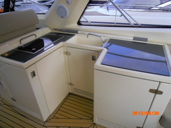 Notas internas2 cabinas dobles con camas dobles, piso 1 cabina cocina completa con todo nevera, nevera, horno, fregadero con grifo mezclador, congelador Gran salón con sofá en forma de l Pisos de madera Reversible aire acondicionado calefacción Notas de la instrumentaciónVHFFishfinder Registro y velocÃmetro GPS. Trazador gráfico piloto automático Stern cabrestantes 2 800 W, GPS y Radar de gráfico 12.1 sistema eléctrico. Aleta. LAT, solapas de indicadores Solapas de rectificadores Cuerno Molinete cadena de contador Alarmas Sistema de antena de tv Sistema de alta fidelidad de radio/cd Notas de armamentoParte superior de vidrio duro puede abrirse eléctricamentepueden abrir ventanas laterales eléctricamente -Pasarela hidráulica besenzoni popa nadar mecanismo electro-hidráulico de teca affondabile plataforma para transporte y lanzamiento de la oferta bañera Teca Helice de proa, genreratore diesel, aire acondicionado en cada habitación, incluyendo la cabina hidráulico trim tabs con indicadores, gris y tanque de aguas negras, Mobile en cabina equipada con nevera, parrilla y lavadero Sistema de antena de TV con bombilla halógena tabla de bañera plegable cojines solarium proa, cierra la ventana de toldo. |