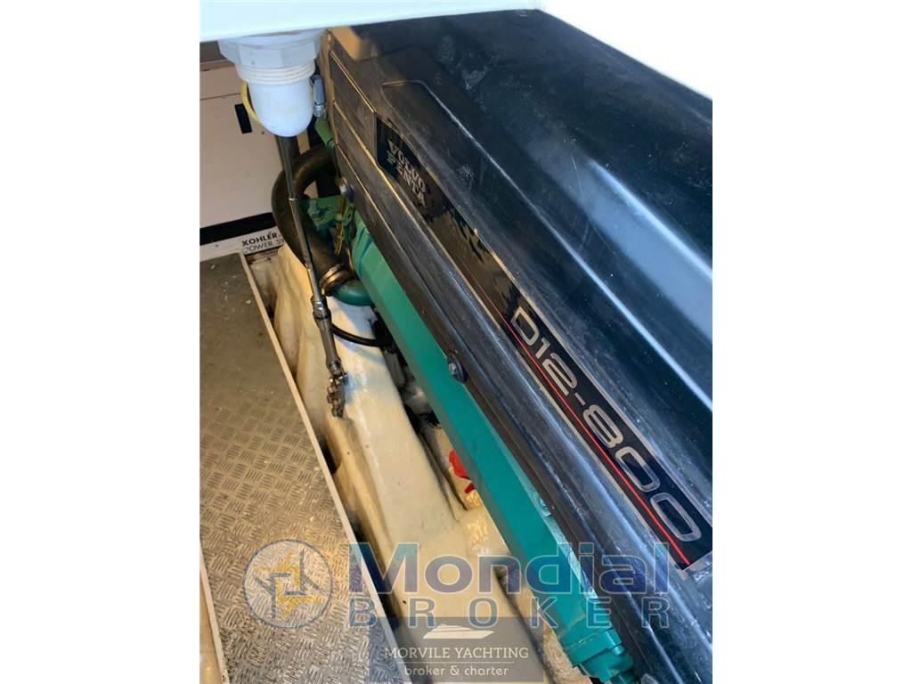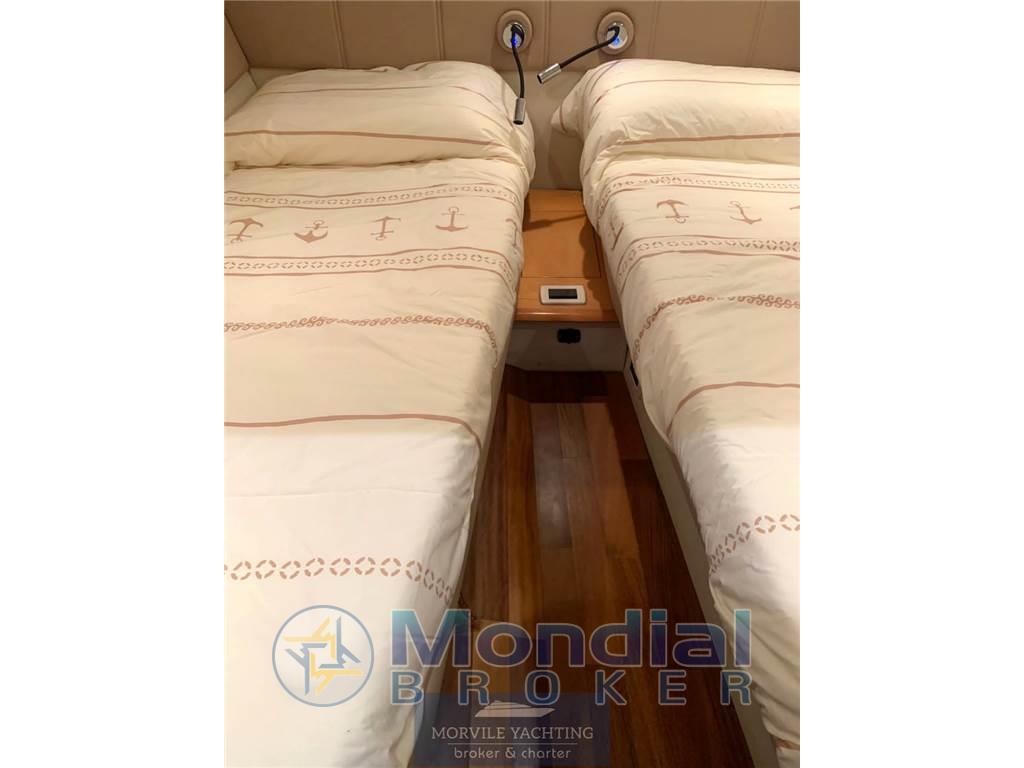 Notas internasCabine: 3 Toilette: 2 Cabine: 3 Notas de la instrumentaciónImpianto elettronico- Ecoscandaglio - Radar - Log-contamiglia - Computer di bordo - Impianto TV - Centrale di navigazione - Plotter - Lettore DVD - Pilota automatico - Radio - Bussola - Lettore CD - GPS - Altoparlanti di pozzetto - VHF Vhf Notas de armamentoCoperture/Tendalini- Tendalino pozzetto Equipaggiamenti Elettrici - Presa corrente a terra - Generatore: KOHLER 11 KW Equipaggiamenti interni - Elica di poppa - Elica di prua - Pompa di sentina elettrica - Forno - Pompa di sentina manuale - Microonde - WC marino - Aria condizionata: INTERNA ED IN POZZETTO - WC elettrico - Riscaldamento - Acqua calda - Frigorifero: + ICE MAKER - Congelatore - Caricabatterie Dotazioni Esterne - Pozzetto in teak - Doccia pozzetto - Passerella idraulica: A SCOMPARSA - Autogonfiabile - Cuscineria pozzetto - Tavolo pozzetto - Scaletta bagno Dotazioni Addizionali Controllo tramite joystick |