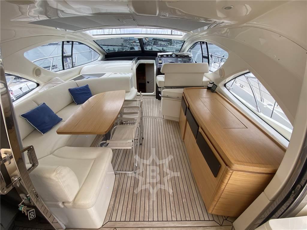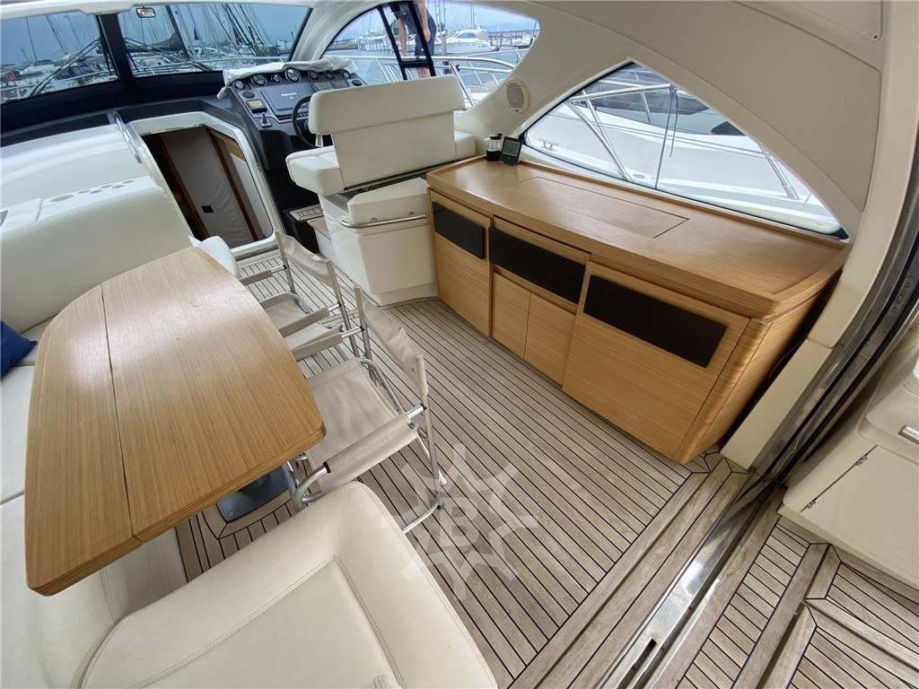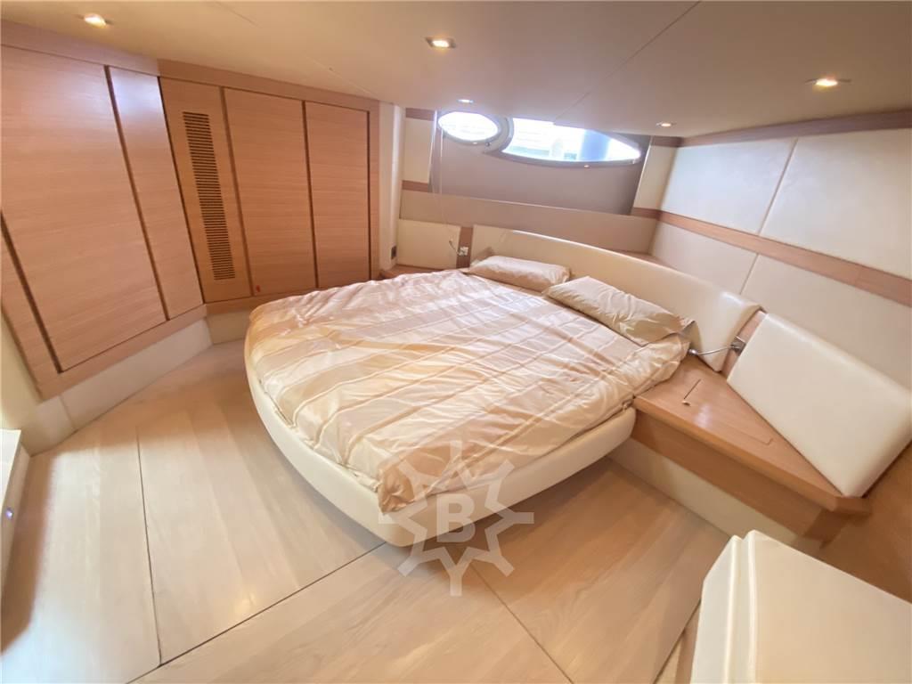 Notas de armamentoAllestimento tecnico e di coperta: Colorazione speciale (con banda blu), Doccia esterna, Elica di prua - bow thruster, Faro orientabile, Flap idraulici, Hard top, Lavandino nel Pozzetto, Luci di cortesia, Passerella (idraulica a scomparsa), Piattaforma (in teak immergibile), Porta ingresso (scorrevole), Pozzetto Teak, Presa 220V banchina, Salpa Ancore Elettrico, Scaletta da bagno, Selle per Tender, Tavolo pozzetto.