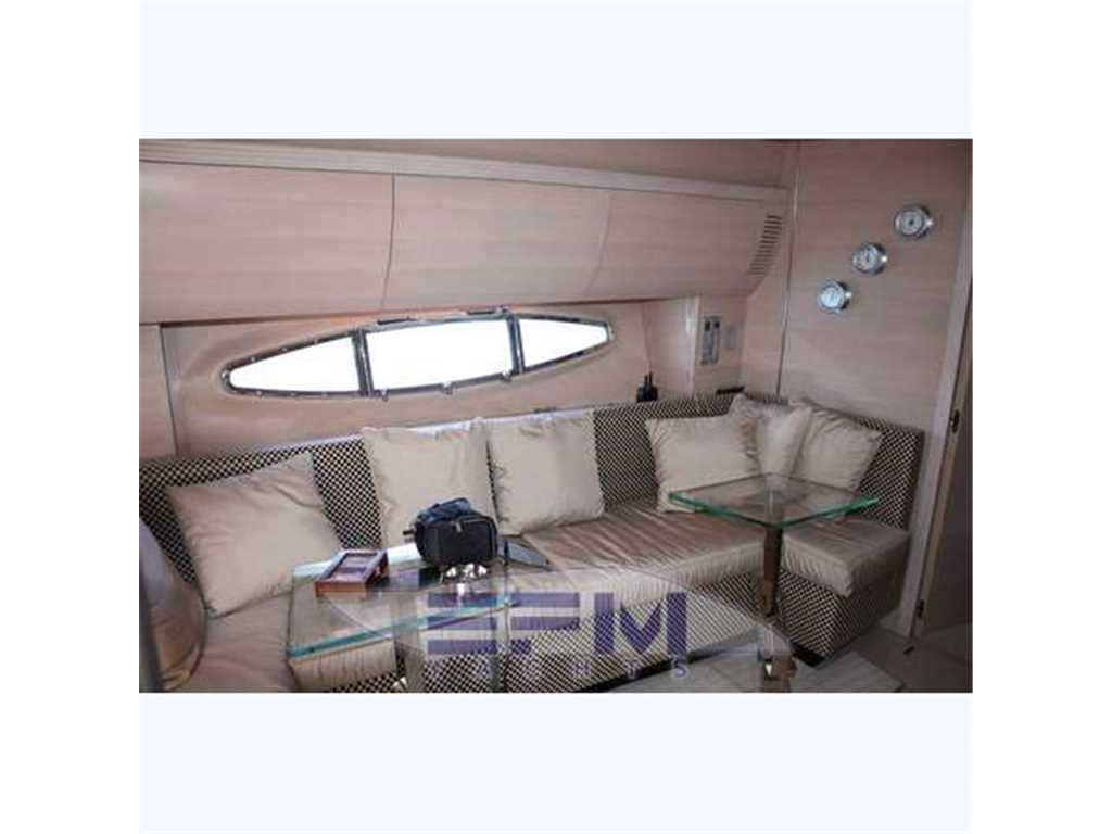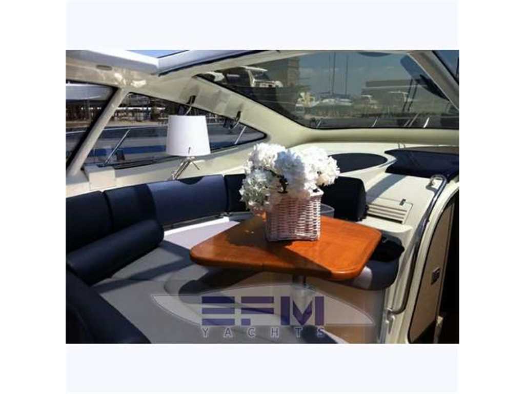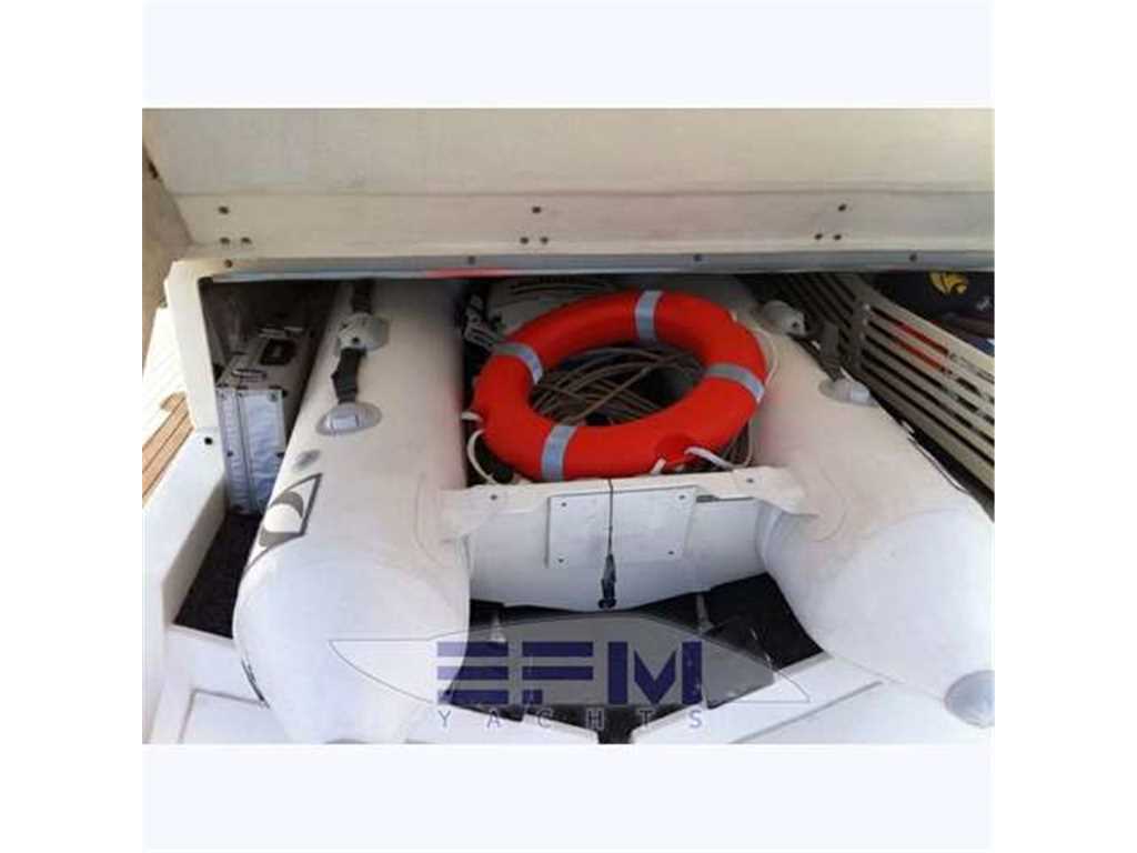 Notas internasSottocoperta è tangibile la sensazione di raffinatezza per la scelta di allestimenti dalle tinte luminose, in modo particolare per ciò che riguarda gli arredi, i rivestimenti di paratie, i cielini e i mobili in rovere sbiancato dalla tonalità molto chiara. Suddivisione e caratteristiche: il salone prevede una zona living a sinistra e la cambusa a dritta, con piano di lavoro a L. A centro barca è collocata la Suite Armatoriale con letto ad isola e bagno riservato completo con lavabo, wc elettrico e box doccia. A dritta trova spazio la cabina ospiti a 2 letti, mentre sul lato opposto è prevista un'altra toilette. A prua c'è la cabina VIP con toilette privata completo con lavabo, wc elettrico e box doccia. Posto di pilotaggio: a dritta del tambuccio, servito da divanetto per pilota e copilota. Plancia di comando dal design accattivante con strumentazione che richiama, nello stile, i cruscotti della auto sportive e piani di lavoro previsti sui vari tavoli, in pozzetto e nel salone Zona cucina: pavimento in legno; mobili in rovere sbiancato; piano di lavoro in Corian; pensili, mobiletti base e cassettiera; stoviglie e posate per 8 persone in alloggiamenti creati ad hoc; forno combinato microonde/grill; piano cottura 2 fuochi in vetroceramica; frigorifero/freezer ad incasso; estintore. Notas de la instrumentaciónStrumentazione elettronica Raymarine completa : Radar raymarine - PLOTTER cartografico Raymarine E 120 - TRIDATA ST60 multifunzione Raymarine - vhf con dsc - pilota automatico ST 600; - TV antenna glomex , DVD, Hi-Fi sistema surround salone e cabina armatore; generatore Mase ; elica di prua e di poppa ; comando hard- top elettroidraulico; indicatori flap; TV LCD nelle cabine ; winch di poppa; sistema elettrico apertura finestrature laterali; contametri catena ancora - Faro orientabileNotas de armamentoDOTAZIONI. Radar · Impianto stereo interno ed esterno · Impianto tv · Tv in dinette e cabine · Aria condizionata fredda e calda · Elica di prua / poppa · Filtri racor · Passerella idraulica retrattile a scomparsa · Plancetta poppa king size in VTR rivestita in teak · Gruppo elettrogeno Mase 13 kw · Raddrizzatori 24V e 12V · Presa 230V · Boiler · Autoclave · Pompe di sentina elettriche e manuali · Verricello elettrico · Cucina interna con piastra cottura, microonde, lavabo e frigo · Mobile pozzetto con grill, lavabo e frigo · Hard top · Garage tender · Due tonneggi a poppa per ormeggio · Full teak massello plancetta, pozzetto · Cuscineria completa, prendisole prua e poppa + coperture nuove 2021 · Calpestio salone in pannelli di rovere sbiancato · Bimini + tenda privacy a poppa · Casse nere con pompa automatica/manuale e deviatore · Cassa grigia raccolta bagni e cucine con pompa automatica/manuale e deviatore · Dotazioni di sicurezza |