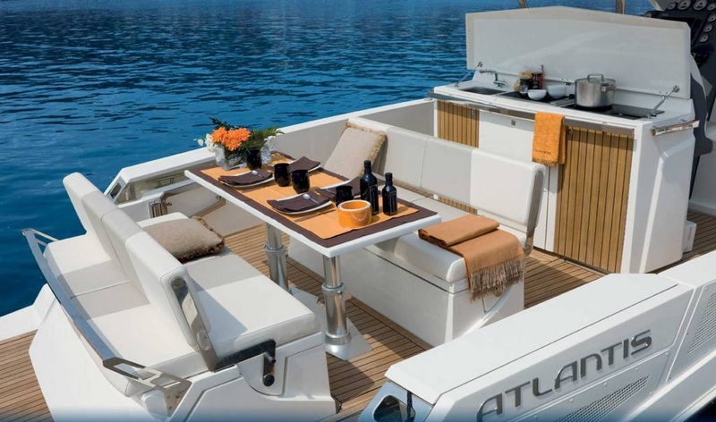 Demostración ejemplar, con la máxima potencia instalada (2x370HP), equipado con toda la lista de accesorios, por valor de unos 400.000 €. 00: ancla de acero inoxidable, aire acondicionado, sofá de cuero, hélice de proa/proa Hi-Fi Fusion Marina estéreo integrado Ipod interfaz-dinette, cabina de mando y Control en el tablero de Searchlight, microondas, 5KW generador Mase, GPS Raymarine C120W, iluminación submarina para nadar de noche, electro-hidráulico puente retractablePiloto automático de piso interior, bambú placa Grill, negro/gris agua tanque, Set Vajilla & cubiertos, cabrestante con mando, toldo eléctrico, duro superior Dinette de transformación integrado en cama, comedor, Custom vinoteca color naranja n Marfil cubierta, cabina de teca se retira el revestimiento no utiliza el molinete, Marina Marbella S.a Srl es distribuidor oficial de Yates de Atlantis |