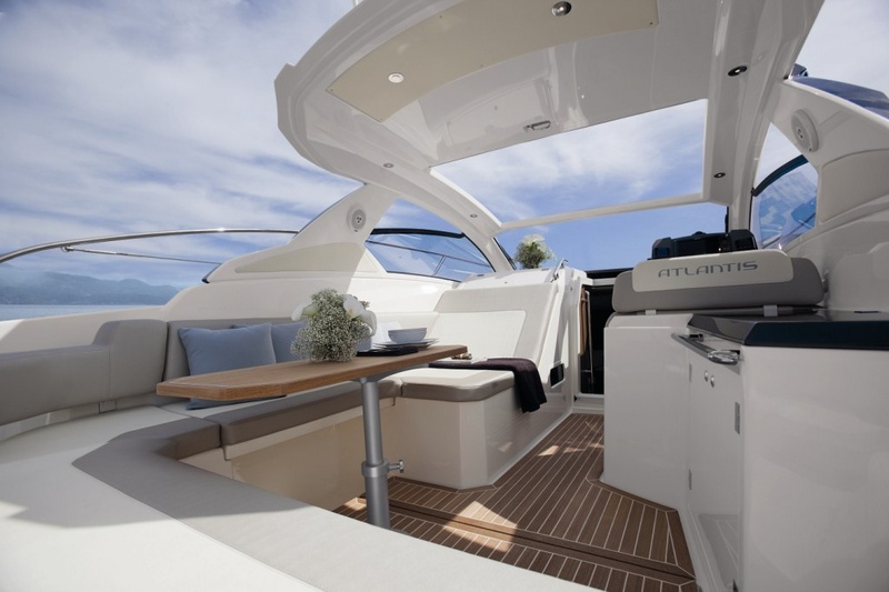 Tapa dura 34 Atlantis: un gran abierto y un crucero confortable, sorpresas para los volúmenes exteriores e interiores con un plan de piso abierto que deja mucho espacio para el confort diario y una cabina separada de privacidad en la noche. Brillo máximo, máxima habitabilidad, comodidad extrema, llevando la dotación, la conquista de la Atlántida por estilo y por su extraordinario comportamiento dinámico. |