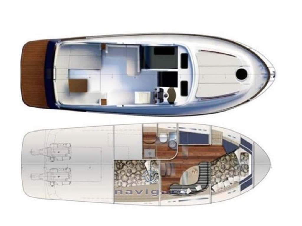 Notas internas1 Doppia in piano, 1 Cucina, 1 Toilette doccia no bidet, 1 Matrimoniale a V di prua, 1 Dinette Trasformabile