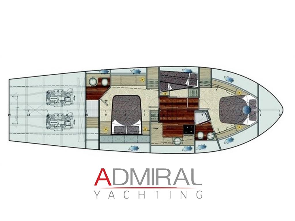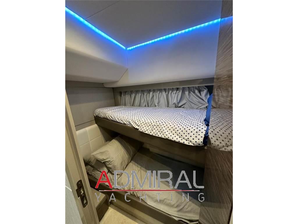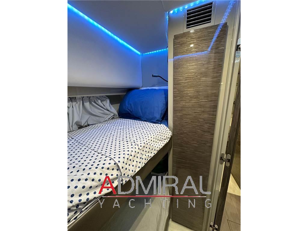 Notas de armamentoAllarme motore, Allarme sentina, Ancora, Autoclave, Batterie, Camminamenti laterali in teak, Caricabatterie, Colorazione speciale (SCAFO BLU), Doccia esterna (PRUA E POPPA), Elica di prua - bow thruster, Faro orientabile, Flap elettrici, Hard top, Impianto antincendio, Luci di cortesia, Passerella (OPACMARE IDRAULICA A SCOMPARSA ), Piattaforma, Pompa di sentina automatica, Pompa di sentina elettrica, Pompa di sentina manuale, Porta ingresso, Pozzetto Teak, Presa 220V banchina, Presa acqua banchina, Salpa Ancore Elettrico, Scaletta da bagno (OPACMARE IDRAULICA A SCOMPARSA), Selle per Tender, Tavolo pozzetto, Tientibene con cancelletti, Tromba, Winch tonneggio di poppa, Altoparlanti, Aria condizionata (TROPICALE), Boiler, Clima reversibile, Congelatore, Cucina, Cuscineria completa, Cuscineria di poppa, Cuscineria di prua, Cuscineria fly, Cuscineria Pozzetto, Digitale Terrestre, Forno, Frigorifero interno, Impianto acque nere, Impianto TV, Inverter, Microonde, Piastra elettrica (INDUZIONE), Prese interne 12v, Prese interne 220v, Radio AM/FM, Riscaldamento, Serbatoio Acque Nere, Stereo, Telecamera (SALA MACCHINE E POPPA), Tendalino (PER COPERTURA INVERNALE), TV, WC marino elettrico