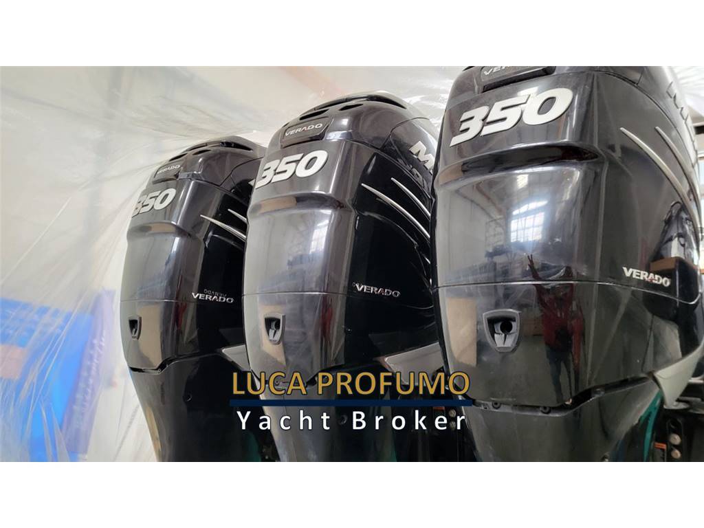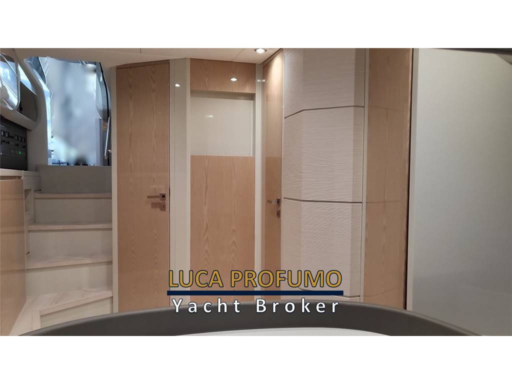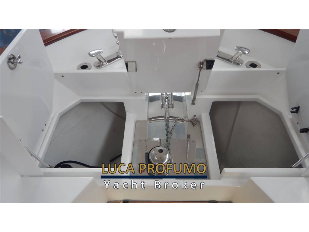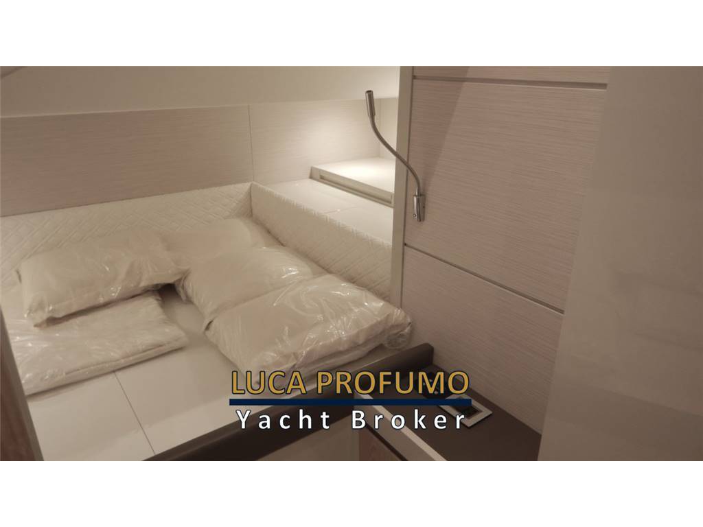 Notas internasCabina ospiti poppa con letto matrimoniale, comodino, armadio e 2 luci di lettura, 1 per lato Cassaforte armadio di prua Letto matrimoniale a prua con armadio e 2luci di lettura, olblò Bagno con Mobile, oblò, bisazza sopra lavabo, Accessori bagno; Specchio ; WC elettrico, Doccia separata con parete a bisazza bianca, sedile in teak e tettuccio in vetro RIVESTIMENTI E LEGNI Mobili laccati in legno, Finitura Interna in rovere verniciato lucido 100 gloss e laccato color grigio 100 gloss, finitura interna toilette in laccato grigio 100 gloss. Pavimento interno in rovere sabbiato. Pareti Louvre cod. 29202, rivestimento testaletto cabina ospiti e pareti murata dx e sx cabina prua Italvipla Caraibi 3001 rombi Notas de la instrumentaciónN°2 Schermi ploltter Garmin da 16?Ecoscandaglio Garmin Radar Garmin Autopilota Garmin Vhf Garmin Joystick Mercury Interfaccia per: comando verricello, luci, motori, nautical network Correttore assetto Hunphree con illuminazione Contametri catena ancora Notas de armamentoESTERNI CONFIGURAZIONEScafo di colere blu, pozzetto in teak e passavanti in teak, capo di banda in Mogano verniciato, porte laterali destra e sinistra, hard top in vtr e vetro con tendalino pozzetto con avvolgitore Sureshade INDEMAR, n.2 verricelli per tonneggio a poppa, 2 bitte a scomparsa , luci di cortesia sul ponte, 6 luci subacquee. Area prendisole di poppa versione doppio prendisole CARAIBI 3003 LISCIO E ROMBI Area prendisole di prua CARAIBI 3003 LICIO E ROMBI Sofà prua estrema CARAIBI LISCIO E ROBI gavonati Area poppa divani a L contrapposti CARAIBI LISCIO E ROMBI Tavoli manuali a 2 stadi modificabili in prendisole Mobile cucina con coperchio e piano top in VTR, Frigo 85lt, Piano di cottura con N.2 fuochi a Induzione e lavello con gruppo acqua C/F, Grill, Cassetti completi di bicchieri, posate e piatti per 6 persone. Postazione guida 3 poltrone Besenzoni, Vano di dx frigo a cassetti, Vano di sx microonde e comparto stivaggio Trasformer ISOLATORE GALVANICO Sistema Antincendio n°2 Frigoriferi a cassetto sotto sedile guida lato dx VITRIFRIGO Microonde sotto sedile guida lato sx 6 Luci sommerse ( 2 sotto le code, 2 per latomurata) Generatore 9 kw Batteria supplementare e staccabatterie Aria Condizionata 24.000BTU inclusi 2 telecomandi 1 coppia di casse all’interno 1 coppia di casse a prua 2 coppie di casse nel pozzetto SET DI COPERTURE Copertura Plancia di guida Copertura Sedili guida Copertura piano cucina Copertura tavoli pozzetto Coperture prendisole Prua e Poppa Copertura divanetto di prua Copertura sedute di poppa |