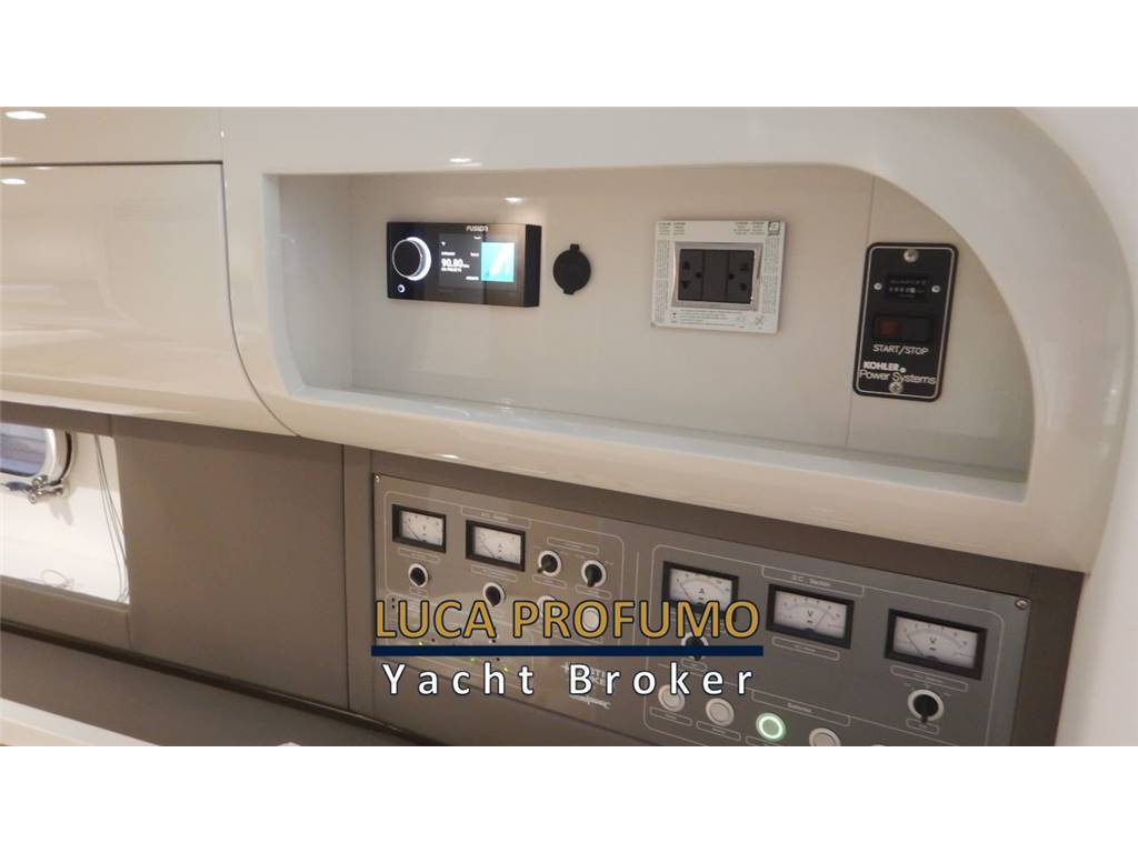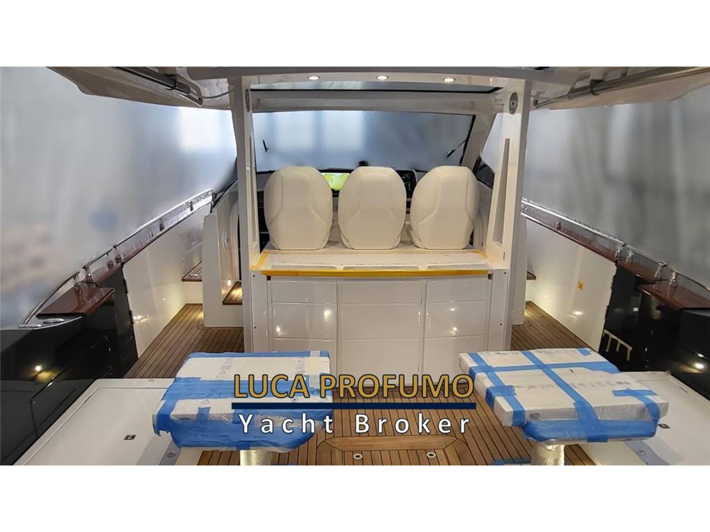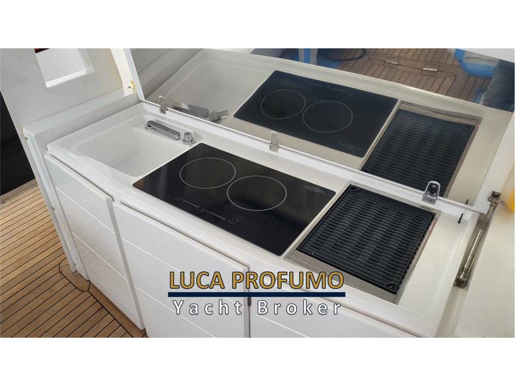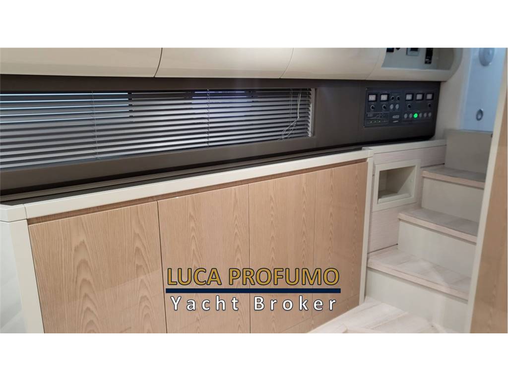 Notas internasCabina ospiti poppa con letto matrimoniale, comodino, armadio e 2 luci di lettura, 1 per lato Cassaforte armadio di prua Letto matrimoniale a prua con armadio e 2luci di lettura, olblò Bagno con Mobile, oblò, bisazza sopra lavabo, Accessori bagno; Specchio ; WC elettrico, Doccia separata con parete a bisazza bianca, sedile in teak e tettuccio in vetro RIVESTIMENTI E LEGNI Mobili laccati in legno, Finitura Interna in rovere verniciato lucido 100 gloss e laccato color grigio 100 gloss, finitura interna toilette in laccato grigio 100 gloss. Pavimento interno in rovere sabbiato. Pareti Louvre cod. 29202, rivestimento testaletto cabina ospiti e pareti murata dx e sx cabina prua Italvipla Caraibi 3001 rombi Notas de la instrumentaciónN°2 Schermi ploltter Garmin da 16?Ecoscandaglio Garmin Radar Garmin Autopilota Garmin Vhf Garmin Joystick Mercury Interfaccia per: comando verricello, luci, motori, nautical network Correttore assetto Hunphree con illuminazione Contametri catena ancora Notas de armamentoESTERNI CONFIGURAZIONEScafo di colere blu, pozzetto in teak e passavanti in teak, capo di banda in Mogano verniciato, porte laterali destra e sinistra, hard top in vtr e vetro con tendalino pozzetto con avvolgitore Sureshade INDEMAR, n.2 verricelli per tonneggio a poppa, 2 bitte a scomparsa , luci di cortesia sul ponte, 6 luci subacquee. Area prendisole di poppa versione doppio prendisole CARAIBI 3003 LISCIO E ROMBI Area prendisole di prua CARAIBI 3003 LICIO E ROMBI Sofà prua estrema CARAIBI LISCIO E ROBI gavonati Area poppa divani a L contrapposti CARAIBI LISCIO E ROMBI Tavoli manuali a 2 stadi modificabili in prendisole Mobile cucina con coperchio e piano top in VTR, Frigo 85lt, Piano di cottura con N.2 fuochi a Induzione e lavello con gruppo acqua C/F, Grill, Cassetti completi di bicchieri, posate e piatti per 6 persone. Postazione guida 3 poltrone Besenzoni, Vano di dx frigo a cassetti, Vano di sx microonde e comparto stivaggio Trasformer ISOLATORE GALVANICO Sistema Antincendio n°2 Frigoriferi a cassetto sotto sedile guida lato dx VITRIFRIGO Microonde sotto sedile guida lato sx 6 Luci sommerse ( 2 sotto le code, 2 per latomurata) Generatore 9 kw Batteria supplementare e staccabatterie Aria Condizionata 24.000BTU inclusi 2 telecomandi 1 coppia di casse all’interno 1 coppia di casse a prua 2 coppie di casse nel pozzetto SET DI COPERTURE Copertura Plancia di guida Copertura Sedili guida Copertura piano cucina Copertura tavoli pozzetto Coperture prendisole Prua e Poppa Copertura divanetto di prua Copertura sedute di poppa |