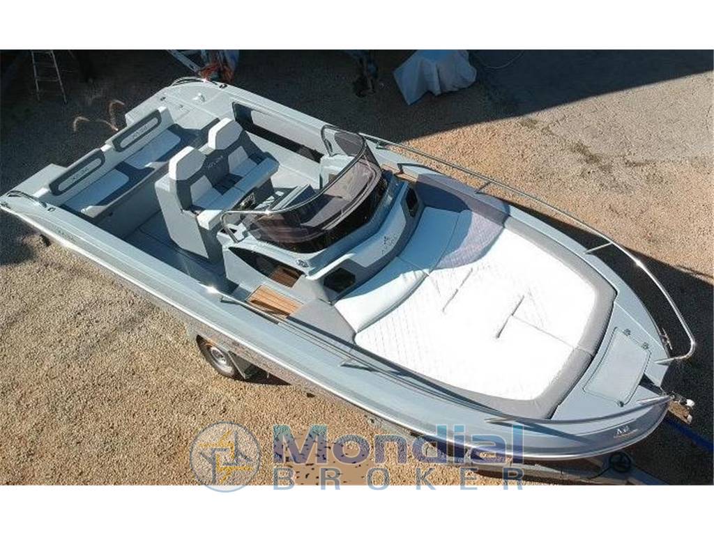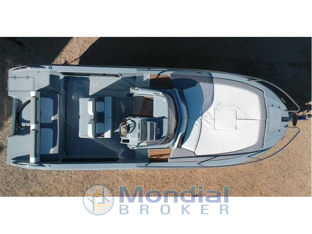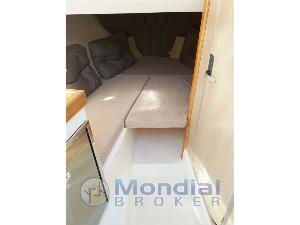 Notas internasLa cabina è capiente e ben illuminata con divanetti trasformabili in letto doppio. Il vano bagno separato garantisce ogni comfort. cabina con letto matrimoniale e vano bagno separato con wc elettrico e oblò, luci LED in cabina Notas de la instrumentaciónBarca full optional: Cabina con letto matrimoniale e vano bagno separato con wc elettrico e oblò, luci LED in cabina, cuscineria completa extra luxury, seduta guida flip-up e doccia di poppa. Impianto idrico, impianto acque nere, impianto carburante, teak su gradini, verricello elettrico e tendalino sole aluminium lux/acciaio.Notas de armamento |