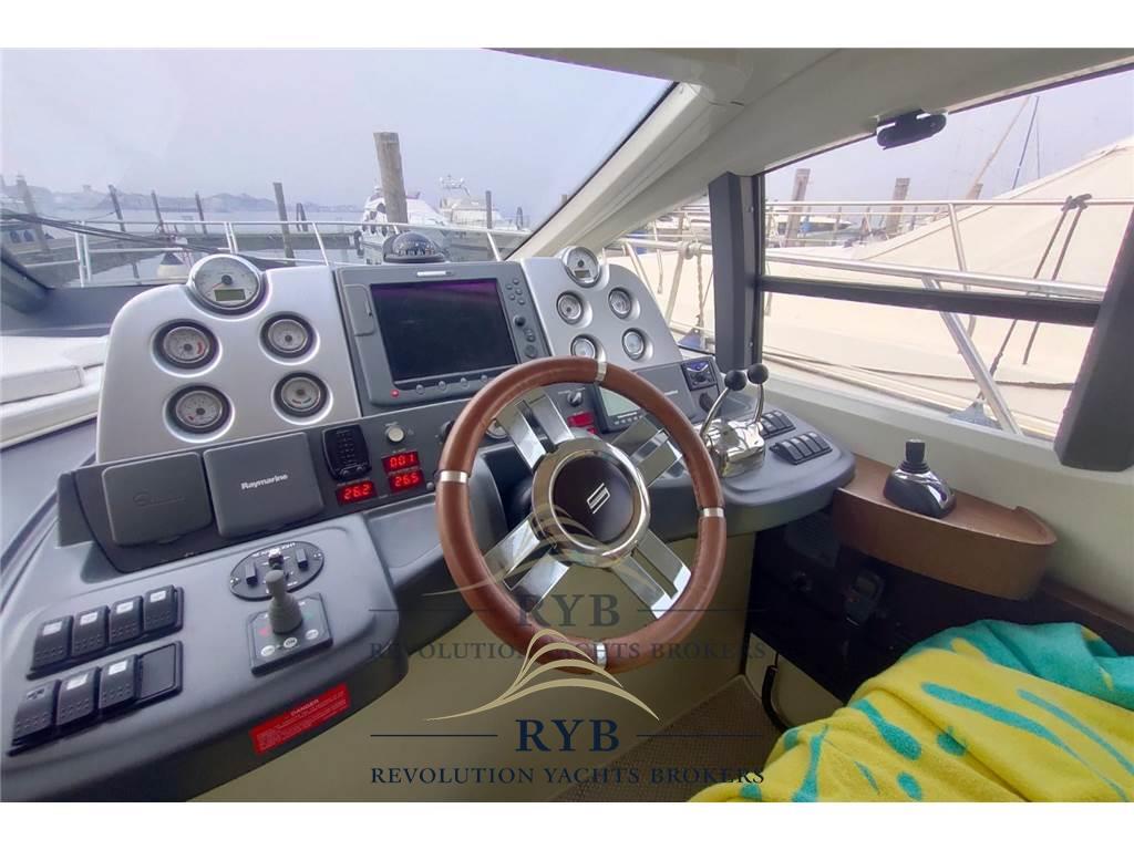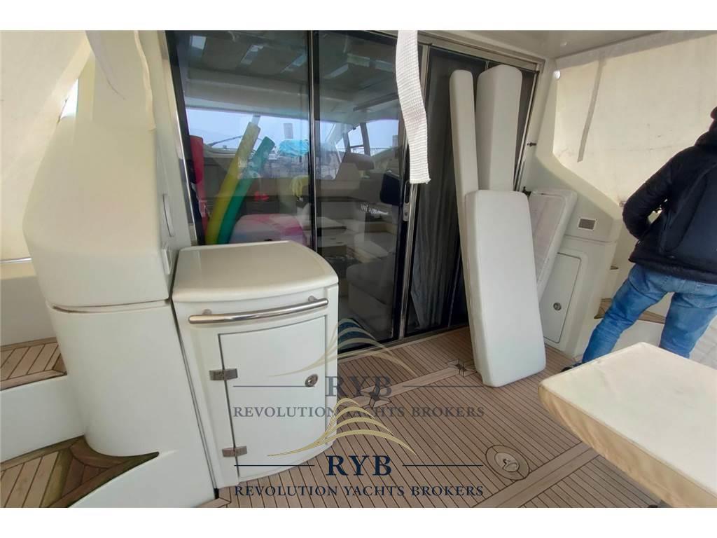 Notas internasNotas de la instrumentaciónAngolo barra, Bussola, Comando motori elettronico, Contamiglia, Ecoscandaglio, GPS, Joystick, Pilota automatico, Plotter, Radar, Radio VHF.Notas de armamentoAllestimento tecnico e di coperta:Allarme motore, Ancora, Autogonfiabile, Doccia esterna, Elica di prua - bow thruster, Faro orientabile, Flap idraulici, Passerella (IDRAULICA), Piattaforma (TENDERLIFT), Pompa di sentina automatica, Pompa di sentina manuale, Pozzetto Teak, Presa 220V banchina, Raddrizzatore, Salpa Ancore Elettrico, Scaletta da bagno. Dotazioni domestiche di bordo: Aria condizionata, Clima reversibile, Prese interne 12v, Prese interne 220v. Intrattenimento: Antenna Satellitare TV, Impianto TV, Radio AM/FM, Stereo, 2 TV. Cucina ed elettrodomestici: Cucina, Fornello, Forno, Frigorifero esterno, Frigorifero interno, Microonde. Tappezzerie: Cappottina, Cuscineria completa, Cuscineria di poppa, Cuscineria di prua, Cuscineria fly, Cuscineria Pozzetto, Oscuranti, Teli copri finestra, Tendalino. |