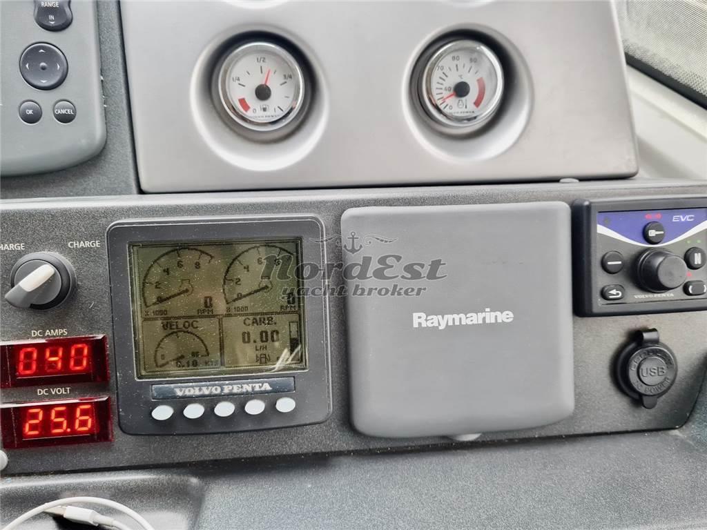 Notas internasAria condizionata: Presente Mobile bar Impianto stereo Impianto TV Tv Bagni: 2 Cabine: 2 Posti letto: 4 Cucina Forno: Presente Frigorifero Notas de la instrumentaciónPilota automatico: Presente Ecoscandaglio: Presente GPS: Presente Plancetta: abbattibile Radar: Presente Vhf: Presente Notas de armamentoImpianto antincendio Contacatena Cuscineria prendisole Doccia esterna Elica di manovra a prua: Presente Flaps Frigorifero esterno Luci di cortesia |
