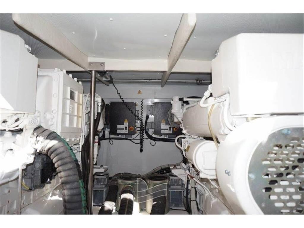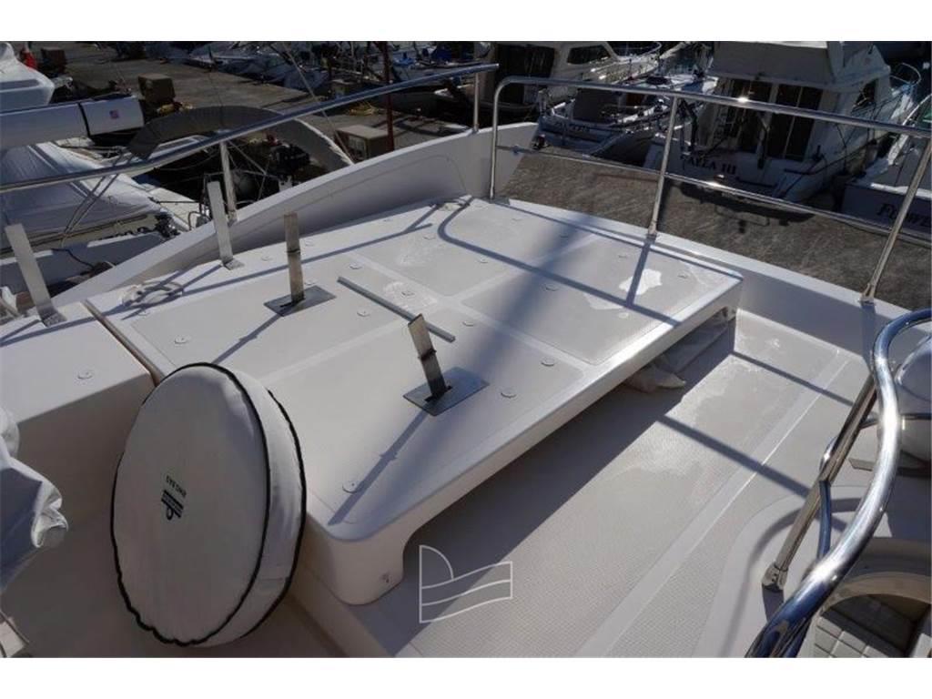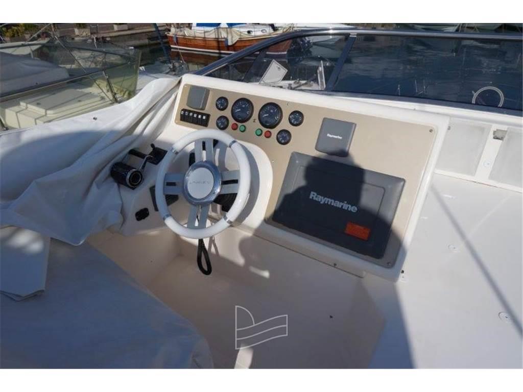 Notas internasNotas de la instrumentaciónAngolo barra, Antenna radar, Bussola, Contamiglia, Ecoscandaglio, Luci di navigazione, Pilota automatico, Plotter con antenna GPS, Radar, Radio VHF.Notas de armamentoAllestimento tecnico e di coperta:Camminamenti laterali in teak, Doccia esterna, Doppia timoneria, Elica di poppa - stern thruster, Elica di prua - bow thruster, 2 Flap idraulici, Impianto antincendio, 2 Indicatori Flaps, Passerella, Piattaforma (tenderlift), Pompa di sentina automatica, Porta ingresso, 2 Porta laterale, Pozzetto Teak, Presa 220V banchina, Salpa Ancore Elettrico, Scaletta da bagno, Tavolo pozzetto, Tromba. Dotazioni domestiche di bordo: Aria condizionata, Impianto acque nere, Pavimento interno in legno, Prese interne 12v, Prese interne 220v, 2 WC marino elettrico. Intrattenimento: 2 Altoparlanti, Antenna Satellitare TV, Impianto TV, Meccanismo saliscendi per TV, Radio AM/FM, Stereo, 3 TV. Cucina ed elettrodomestici: Cucina, Fornello, Frigorifero esterno, Frigorifero interno. Tappezzerie: Bimini, Copripozzetto, Teli copri finestra, Telo copriconsolle, Telo coprisedile. |