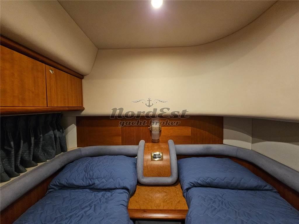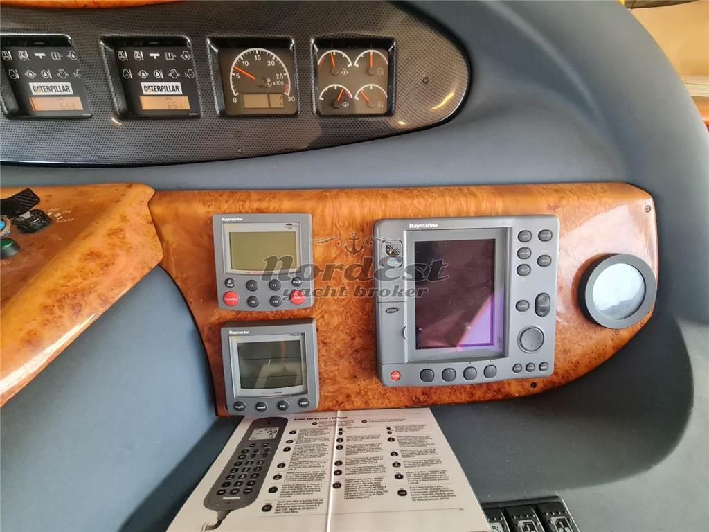 Notas internasAria condizionata: Presente Interni: DESCRIZIONE INTERNI - n. 3 cabine doppie - n. 2 servizi con box doccia - n. 1 cabina marinaio allestina con servizio e aria condizionata teak in dinette e zona notte con moquette ----- Mobile bar Antenna TV satellitare Impianto stereo Impianto TV Tv Bagno equipaggio Bagni: 3 Cabina equipaggio Cabine: 3 Posti letto: 6+1 Cucina Forno: Presente Frigorifero Piano Cottura: 1 Notas de la instrumentacióninverter 2kw,Pilota automatico: Raymarine Ecoscandaglio: Raymarine GPS: Raymarine Plancetta: in teak Radar: Raymarine Strumenti meteo Strumenti vento Vhf: Shipmate Notas de armamentoDESCRIZIONE IMPIANTISTICA Mobile fly con frigo e lavello, batterie servizi 2023, batterie motori 2022 ----- Impianto antincendio Bimini top: si in acciaio Copertura pozzetto Cuscineria prendisole Doccia esterna Elica di manovra a poppa: Presente Elica di manovra a prua: Presente Faro orientabile Flaps Frigorifero esterno Frigorifero sul flybridge Gru: Opacmare Luci di cortesia Zattera di salvatagio |