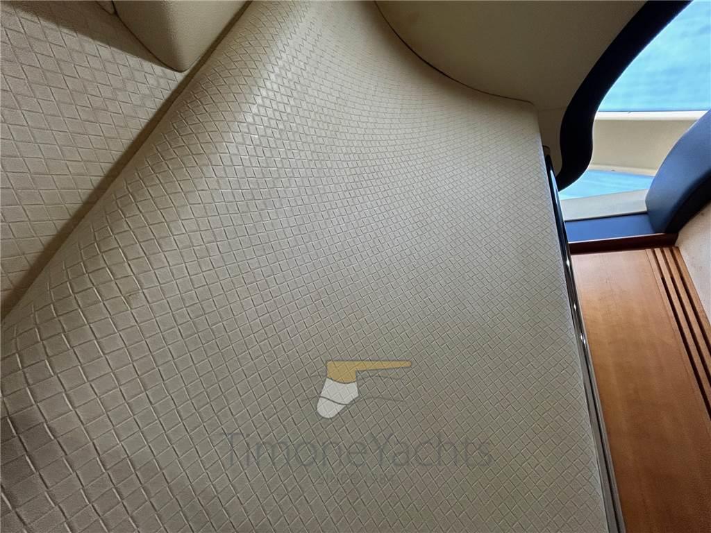 Notas internas3 bagni + cabina crew a poppa Notas de la instrumentaciónAIS, Comando motori elettronico, Contametri catena, GPS, Pilota automatico, Plotter, Radar, Radio VHF.Notas de armamentoElectronic na vig a tion equipment Steering a ngle indic a tor, R a d ar a ntenn a , Electric control, Fixed onb o ard computer (R a ym arine trid a t a ), Ch ain counter, Monitor (R a ym arine), Autopilot (R a ym arine), GPS plotter (R a ym arine Axion hy b rid Touch), R a d ar (R a ym arine), VHF ra dio (R a ym arine), Y a cht controller. Technic al a nd upper deck equipment Hydra ulic fl a ps, Fla p indic a tors, Courtesy lighting, Shore power connection, Pressurized w a ter connection at the dock, 2 Electric re ar winches. Onb o ard domestic equipment BBQ/Grill, Bla ck w a ter t a nk, Video c a mera (FLIR THERMAL CAMERA in the engine room) . S a fety equipment S a fety equipment up to 50 miles. Entert ainment 4 TVs (salon a nd c a b ins) . Kitchen a nd household a pplia nces Cooler, Ice m a ker, W asher a nd dryer, Cera mic glass cooktop. Upholstery Bimini, Complete upholstery, Fly b ridge upholstery, Windshield covers, Console cover, Se a t cover. |