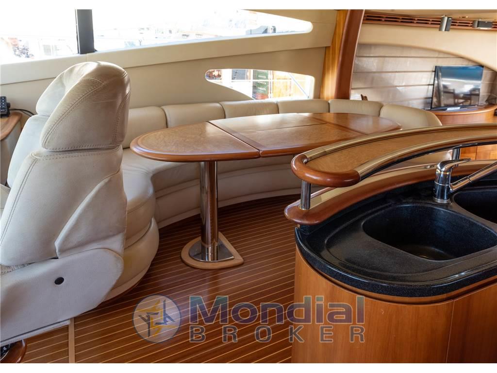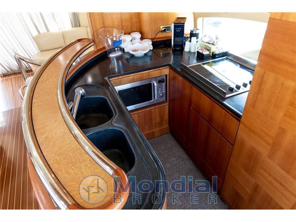 Notas de armamentoAltoparlanti, Aria condizionata, Bimini, Boiler (bivalente), Clima reversibile, Congelatore, Cucina, Cuscineria di prua, Cuscineria fly, Digitale Terrestre, Fornello, Frigorifero esterno, Frigorifero interno, Home Theater, Impianto acque nere, Impianto TV, Lavastoviglie, Microonde, Piastra in vetroceramica, Prese interne 12v, Prese interne 220v, Radio AM/FM, Stereo, 3 TV, 4 WC marino elettrico