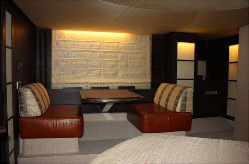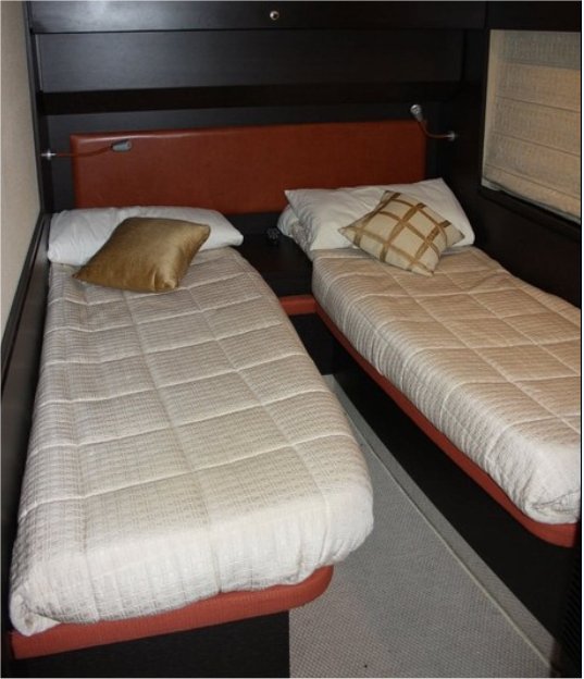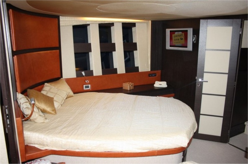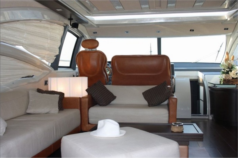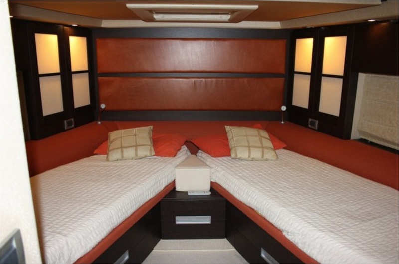 Notas internasPuente de cubierta:-se unió amplia cabina equipada con hamacas y sofás-gateway de acero y cristal Lounge-salón con sofá, mesa y sillas, contenedor móvil contraposto-caseta con sillón eléctrico y sofá. PISO inferior:-Centro de barco de cabina, con camas dobles, comedor, baño con ducha-vip cabina en proa con cama (convertible en dos camas), baño con ducha-A invitado cabina con camas planas, baño con ducha todo y confortable equipado cocina-marinero cabina popa con baño. -Interior Sharme de decoración, muebles de piso Wenge, sofás de cuero.
