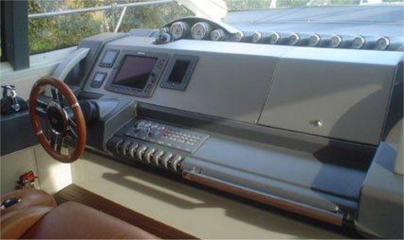 Notas de armamento-Aire acondicionado generador Kohler-tropical (66.000 BTU)-maniobra de hélice a hélice de proa popa maniobras satélite TV antena-Trac visión M5-Hard superior eléctricos hidráulicos abatibles pasillo-tornos, molinetes popa electrónicos controles-popa Garage-parrilla, nevera y fregadero pozzetto Dimmer para luces y Salon pozzetto directa agua desde el muelle-LCD TV y DVD en cabañas y Salon-estéreo Dolby Surround completa seguridad equipos.