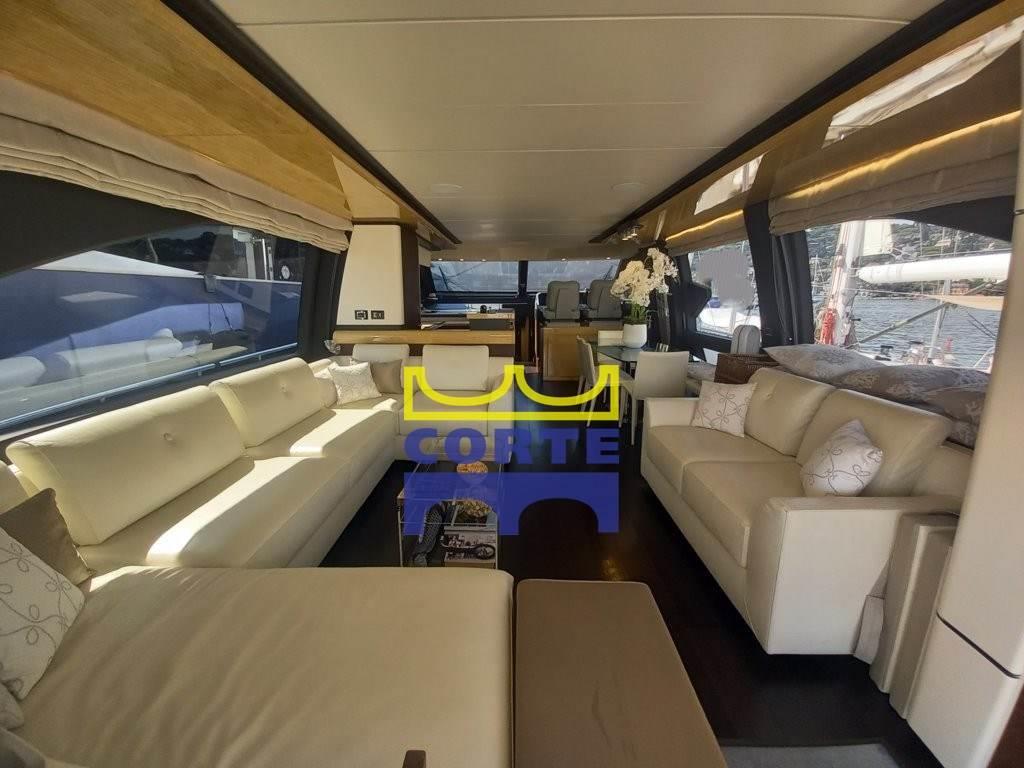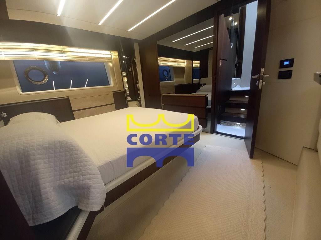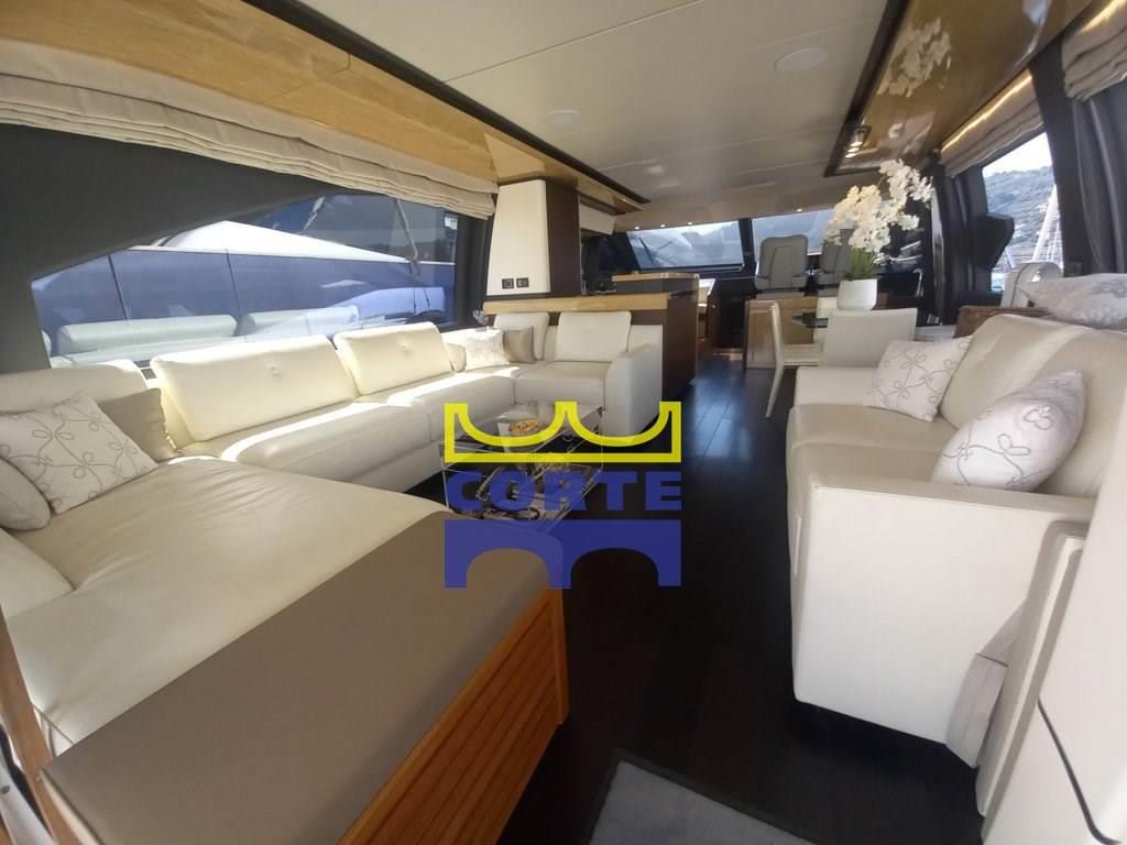 Notas internasNotas de la instrumentaciónAntenna radar, Bussola, Comando motori elettronico, Computer di bordo, Contametri catena, Contamiglia, Display, Ecoscandaglio, Interfaccia, Joystick, Log, Luci di navigazione, Pilota automatico, Plotter con antenna GPS (Raymarine), Radar, Radio VHF (Raymarine), Sedile Copilota.Notas de armamentoAllestimento tecnico e di coperta:Allarme fumo/gas, Allarme motore, Allarme sentina, Ancora, 2 Auto Dynamic Trim Interceptor (Humphree), Camminamenti laterali in teak, Doccia esterna, Doppia timoneria, Elica di poppa - stern thruster, Elica di prua - bow thruster, Faro orientabile, Hard top, Impianto antincendio, Luci di cortesia, Passerella (elettroidraulica a scomparsa), Piattaforma (di poppa tender lift), Pompa di sentina automatica, Pompa di sentina elettrica, Ponte in teak, Porta ingresso, Porta laterale, Pozzetto Teak, Presa 220V banchina, Presa acqua banchina, Salpa Ancore Elettrico, Scaletta da bagno, Stabilizzatori (Seakeeper), Tavolo pozzetto, Tender, Tromba, T-Top, 2 Winch tonneggio di poppa, Winch tonneggio di prua. Dotazioni domestiche di bordo: BBQ/ Grill (fly), Cassaforte, Clima reversibile, Controllo Domotica, Dissalatore (Schenker), Impianto acque nere, Pavimento interno in legno, Prese interne 12v, Prese interne 220v, Serbatoio Acque Nere, 2 Telecamera (vano motore e poppa), WC marino elettrico. Dotazioni di sicurezza: E.P.I.R.B.. Intrattenimento: Altoparlanti, Antenna Satellitare TV, Impianto TV, Meccanismo saliscendi per TV (salone), Stereo (Fusion), 3 TV (salone, cabina armatoriale, cabina vip). Cucina ed elettrodomestici: Asciugatrice (Miele), Congelatore, Cucina, Forno, Frigorifero esterno (fly), Frigorifero interno, ICE Maker (fly), Lavastoviglie, Lavatrice (Miele), Microonde, Piastra in vetroceramica (induzione), Winecooler. Tappezzerie: Cuscineria completa, Teli copri finestra, Tenda Elettrica (fly), Tendalino (zona prua). |
