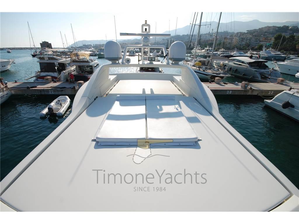 Notas internasNotas de la instrumentaciónAngolo barra, Bussola, Comando motori elettronico, Contametri catena, Contamiglia, DSC vhf, Ecoscandaglio, GPS, Interfaccia, MeteoFax, Pilota automatico, Plotter, Radar, Radio VHF.Notas de armamentoAllestimento tecnico e di coperta:Allarme fumo/gas, Allarme motore, Autogonfiabile, Camminamenti laterali in teak, Doccia esterna, Elica di prua - bow thruster, Faro orientabile, Flap idraulici, Garage per tender, Hard top, Indicatori Flaps, Lavaggio catena, Passerella, Porta laterale, Pozzetto Teak, Presa 220V banchina, Presa acqua banchina, Salpa Ancore Elettrico, Tavolo pozzetto, Tromba, Winch tonneggio di poppa, Winch tonneggio di prua. Dotazioni domestiche di bordo: Aria condizionata, BBQ/ Grill, Cassaforte, Clima reversibile, Impianto acque nere, Prese interne 12v, Prese interne 220v, Riscaldamento, 4 WC marino elettrico. Dotazioni di sicurezza: Giubbetti di salvataggio. Intrattenimento: Altoparlanti, Antenna Satellitare TV, DVD, Home Theater, Impianto TV, Radio AM/FM, Stereo, 5 TV. Cucina ed elettrodomestici: Congelatore, Forno, Frigorifero esterno, Frigorifero interno, ICE Maker, Lavastoviglie, Lavatrice, Macchina caffè, Microonde, Piastra elettrica. Tappezzerie: Cuscineria di poppa, Cuscineria di prua, Cuscineria Pozzetto. |