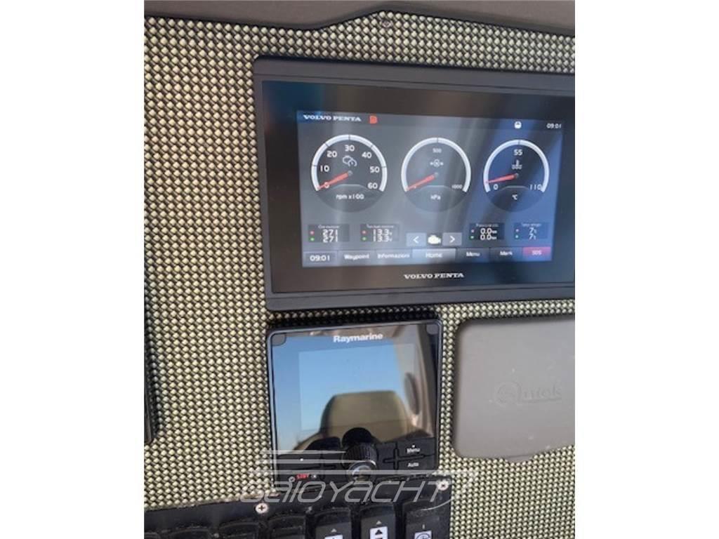 Notas internasNotas de la instrumentaciónAncora, Angolo barra, Contametri catena, Display (Raymaine Axiom Pro 12), Elica di prua - bow thruster, Faro orientabile (elettrico), Flap idraulici, Joystick (Volvo Aquamatic), Passerella (Opacmare telescopica mt. 2,54), Pilota automatico (Raymarine P70RS), Pozzetto Teak (+ plancetta), Presa 220V banchina, Presa acqua banchina, Radio VHF (Ray 90), Tavolo pozzettoNotas de armamentoAria condizionata, BBQ/ Grill (in pozzetto), Cuscineria di prua (con copertura), Cuscineria Pozzetto, Impianto TV (in armatore e dinette), Lavastoviglie, Radio AM/FM (in armatore e dinette), Sedile co-pilota; Plancetta up&down. |