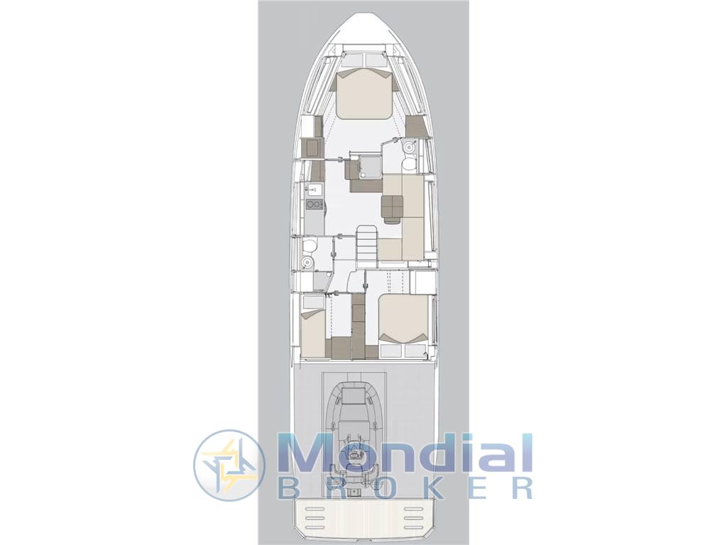 Notas internas1 Matrimoniale italiana, 1 Doppia in piano, 1 Doppia letti a castello, 2 Toilette con doccia, 1 Dinette, 1 Cucina Gli interni del Bavaria 420 Virtess Coupé sono progettati per offrire spazio, funzionalità e comfort in stile contemporaneo. La zona notte comprende una luminosa cabina matrimoniale a prua, una cabina doppia con letti in piano e una terza cabina con letti a castello, perfetta per bambini o ospiti. Due toilette con doccia separate garantiscono praticità e privacy a bordo. La cucina, completamente attrezzata, si integra perfettamente con la dinette conviviale e il salone elegante, creando un ambiente accogliente e ideale per la vita in mare. Ogni ambiente è rifinito con materiali di qualità e grande attenzione al dettaglio.