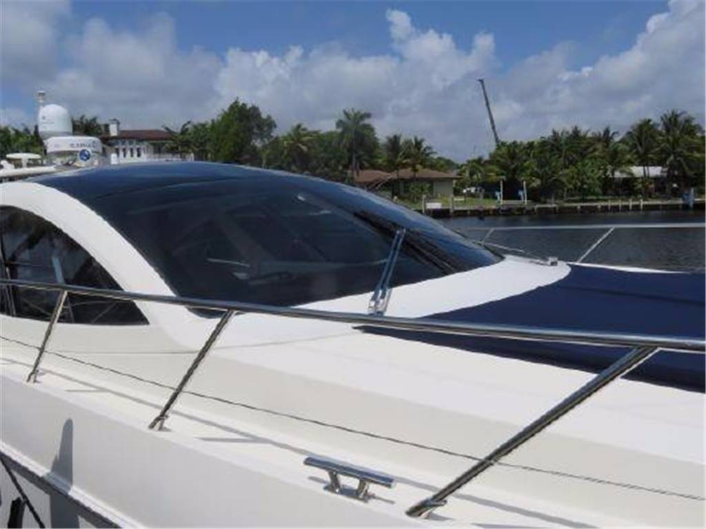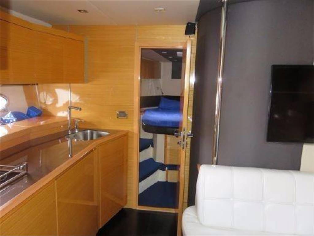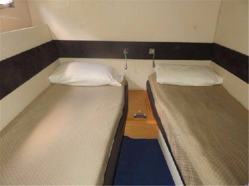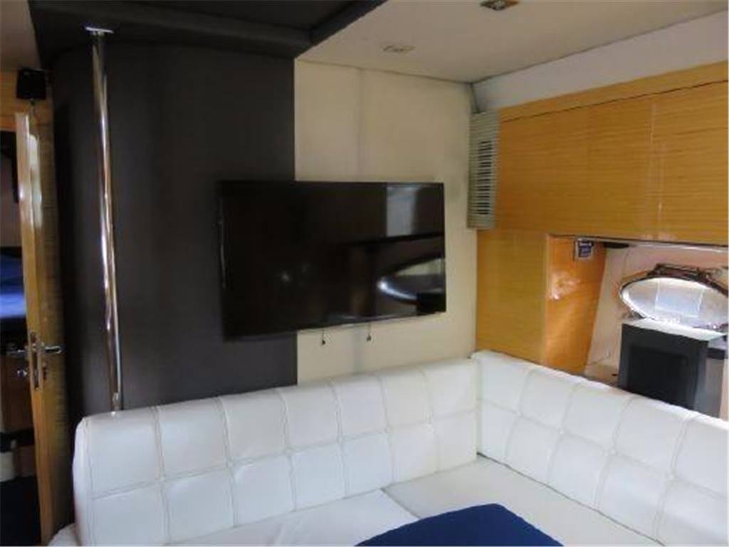 Notas internasNumber of cabins: 3 Number of heads: 2 Salon: ? Wenge wood sole ? LCD SAT TV, DVD/CD/Stereo ? L-Settee w/Table Galley: ? SS sink ? Cooktop ? Microwave ? Refrigerator ? Freezer Master-Forward: ? Queen berth w/storage below ? Hanging lockers, wall cabinets and drawer storage ? En Suite head w/shower VIP-Amidship: ? Double berth w/storage below ? SAT TV ? Hanging locker ? Night stand ? Head & shower shared w/guest cabin Guest Cabin: ? Twin berths w/storage below ? SAT TV ? Hanging locker ? Night stand ? Head & shower shared w/VIP Notas de la instrumentaciónCockpit & Deck Equipment? Hard top w/tempered crystal glass Sun roof-opens electrically ? Hydraulic swim platform w/tender recovery ? Teak deck-cockpit & swim platform ? Engine room hatch ? Cockpit hot & cold water wet bar w/refrigerator, icemaker electric grill & Sat TV ? Canvas and Isinglass cockpit enclosure ? 3 x Sunpads: Fore deck, aft deck & opposite helm station ? Helm station w/Autopilot, GPS/Chartplotter, VHS, DSC radio/telephone with loudhailer ? Settee w/table Mechanical ? Twin Volvo Penta @800 hp each ? 9kW Generator ? Bow & Stern thrusters ? Hydraulic swim platform ? Engine room heat & sound insulation ? Automatic/manual fire fighting system ? 24v Engine start-up batteries ? 24v & 12v House batteries ? 12v Generator start-up battery ? 60 Amp automatic battery charger ? 12 Amp battery charger ? 60 ltr water heater ? 3 x Electric bilge pumps ? 2 x Manual bilge pumps ? Bilge alarm system w/visual & sound indicator at helm Notas de armamentoFeatures? Bow & Stern Thruster ? Custom Upholstery & Headliner ? Fusion Sound System ? SAT TV-Cockpit, Salon and all staterooms ? Volvo Penta diesel engines @800 hp ? Bimini Top ? Hydraulic swim platform ? Glass Sun Roof ? 3 x Sun Pads ? Underwater lights ? Upgraded Battery Chargers |