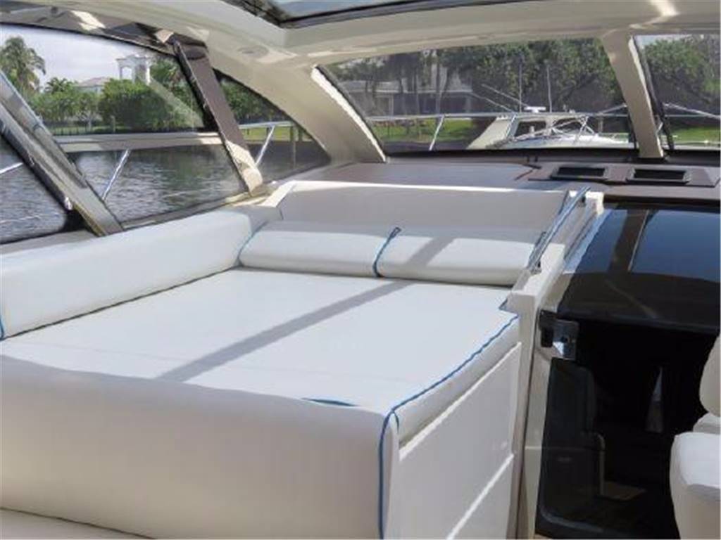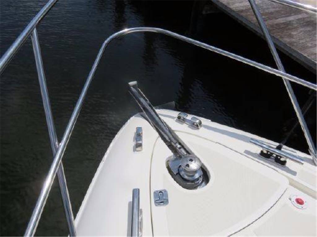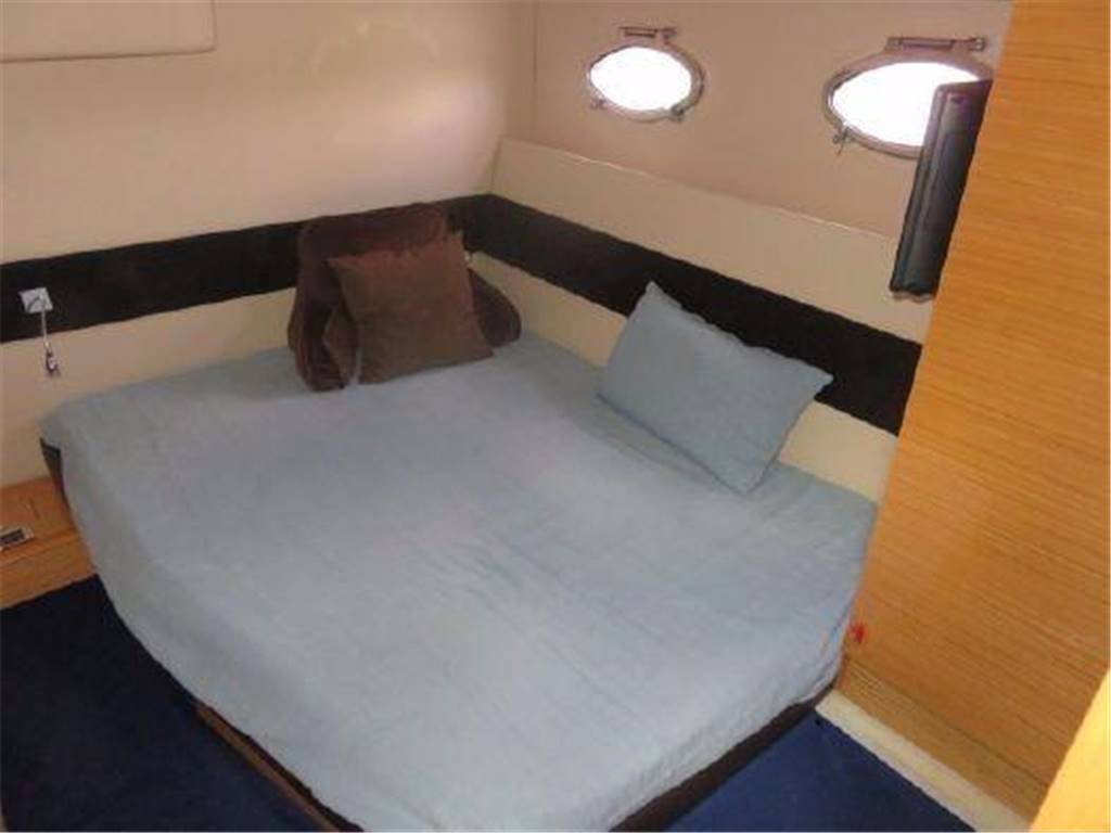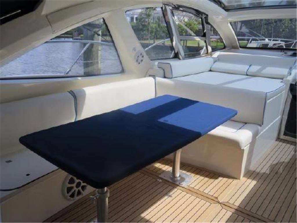 Notas internasNumber of cabins: 3 Number of heads: 2 Salon: ? Wenge wood sole ? LCD SAT TV, DVD/CD/Stereo ? L-Settee w/Table Galley: ? SS sink ? Cooktop ? Microwave ? Refrigerator ? Freezer Master-Forward: ? Queen berth w/storage below ? Hanging lockers, wall cabinets and drawer storage ? En Suite head w/shower VIP-Amidship: ? Double berth w/storage below ? SAT TV ? Hanging locker ? Night stand ? Head & shower shared w/guest cabin Guest Cabin: ? Twin berths w/storage below ? SAT TV ? Hanging locker ? Night stand ? Head & shower shared w/VIP Notas de la instrumentaciónCockpit & Deck Equipment? Hard top w/tempered crystal glass Sun roof-opens electrically ? Hydraulic swim platform w/tender recovery ? Teak deck-cockpit & swim platform ? Engine room hatch ? Cockpit hot & cold water wet bar w/refrigerator, icemaker electric grill & Sat TV ? Canvas and Isinglass cockpit enclosure ? 3 x Sunpads: Fore deck, aft deck & opposite helm station ? Helm station w/Autopilot, GPS/Chartplotter, VHS, DSC radio/telephone with loudhailer ? Settee w/table Mechanical ? Twin Volvo Penta @800 hp each ? 9kW Generator ? Bow & Stern thrusters ? Hydraulic swim platform ? Engine room heat & sound insulation ? Automatic/manual fire fighting system ? 24v Engine start-up batteries ? 24v & 12v House batteries ? 12v Generator start-up battery ? 60 Amp automatic battery charger ? 12 Amp battery charger ? 60 ltr water heater ? 3 x Electric bilge pumps ? 2 x Manual bilge pumps ? Bilge alarm system w/visual & sound indicator at helm Notas de armamentoFeatures? Bow & Stern Thruster ? Custom Upholstery & Headliner ? Fusion Sound System ? SAT TV-Cockpit, Salon and all staterooms ? Volvo Penta diesel engines @800 hp ? Bimini Top ? Hydraulic swim platform ? Glass Sun Roof ? 3 x Sun Pads ? Underwater lights ? Upgraded Battery Chargers |
