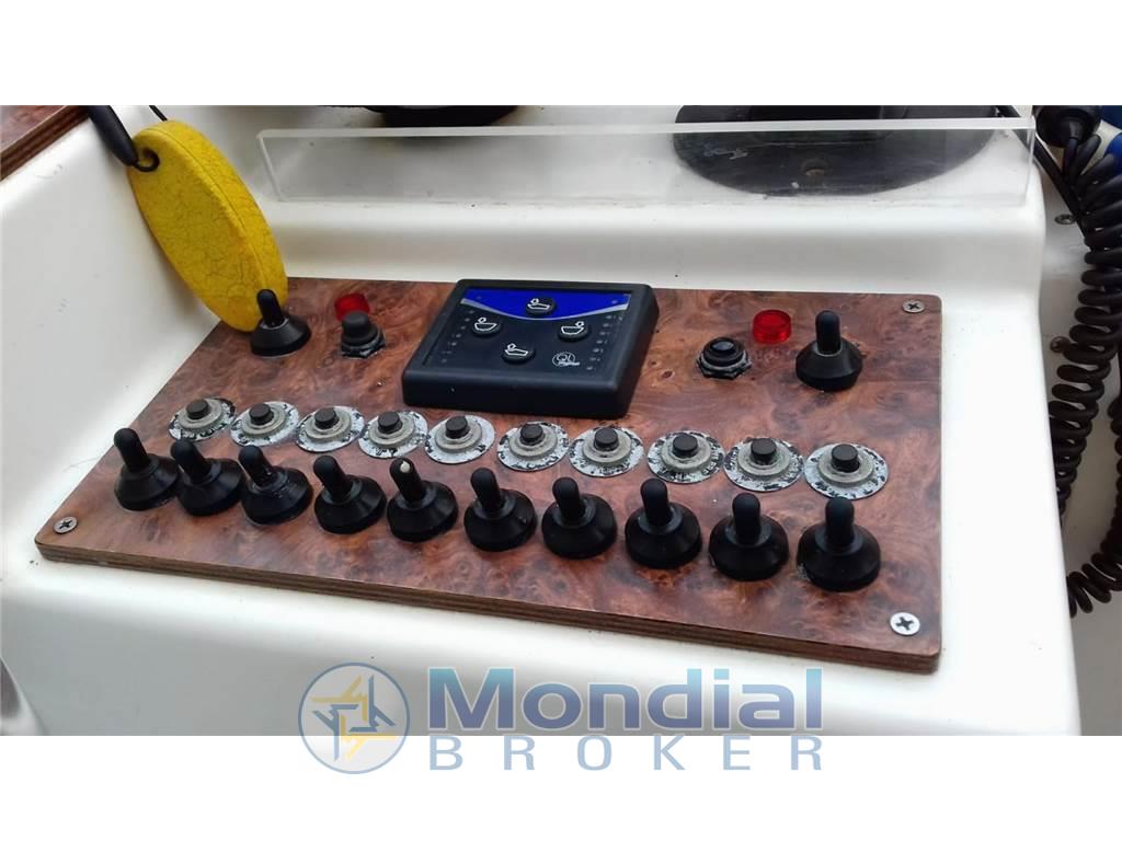 Notas internasNotas de la instrumentaciónBussola, Contamiglia, Ecoscandaglio, GPS, Plotter, Radio VHF.Notas de armamentoAllestimento tecnico e di coperta:Allarme motore, Doccia esterna, Flap idraulici, Gruette, Indicatori Flaps, Passerella, Piattaforma (teak), Pompa di sentina automatica, Pompa di sentina manuale, Rollbar, Salpa Ancore Elettrico, Scaletta da bagno, Tavolo pozzetto. Dotazioni domestiche di bordo: WC marino elettrico. Dotazioni di sicurezza: Dotazioni di sicurezza entro 6 miglia. Intrattenimento: Impianto TV, Stereo. Cucina ed elettrodomestici: Fornello, Frigorifero interno. Tappezzerie: Cappottina, Tendalino. |