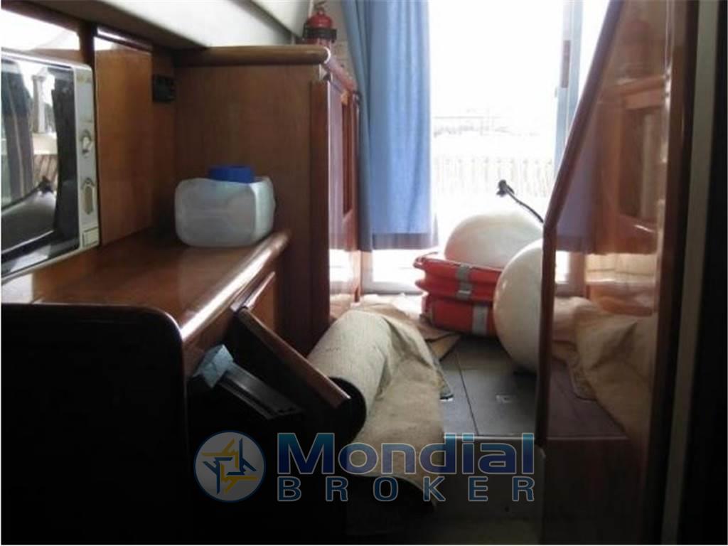 Notas internasNotas de la instrumentaciónBussola, Contamiglia, Ecoscandaglio, GPS, Pilota automatico, Radio VHF.Notas de armamentoAllestimento tecnico e di coperta:Allarme motore, Autogonfiabile, Doccia esterna, Doppia timoneria, Gruette, Passerella, Piattaforma, Pompa di sentina automatica, Pompa di sentina manuale, Raddrizzatore, Salpa Ancore Elettrico, Scaletta da bagno. Intrattenimento: Stereo. Cucina ed elettrodomestici: Frigorifero interno, Microonde. |