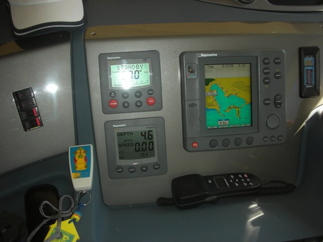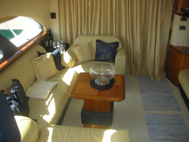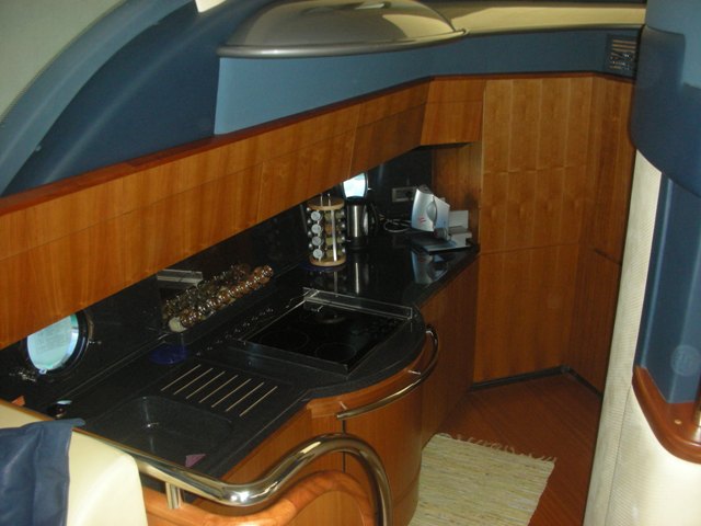 Notas internasEl sofá de la zona de asientos, cubierto de cuero Marfil es convertible en cama. La cocina está completa con todos los dispositivos. Aire acondicionado de verano/invierno es total, cada uno tiene un entorno de temperatura controlada independientemente. Cabina: diseñado con especial atención a la ergonomÃa de cada detalle; el tablero de mandos ve vagamente automotrices anfitriones la brújula y otros instrumentos de navegación(GPS chartplotter, Tridata), herramientas de control del motor(manómetro, termómetro, tacómetro) el panel eléctrico, los controles electrónicos de motor; el timón, cereza y acero ajustable inoxidable y sillón de cuero; el plano frontal está pintado en la correspondencia de área antibrillo Vesmaflex: plataforma junto a la caseta con el espacio subyacente que acoge el área de la cocina de gabinete: hermosa y funcional en un plano de la placa de cerámica negra de Granulon tiene tres fuegos con Potholder, doble lavabo y un plan de trabajo notable. Autofiltrante hood, nevera de más de 190 litros congelador, microondas, pared, tres gabinetes, gabinetes más tres pisos de caoba doussiè Notas de la instrumentaciónRaymarine ChartPlotter RC 530 Plus ChartPlotter interna, Raymarine dirección 530 en Flybridge. 24 nm Radar. Piloto automático, propulsor de proa, hélice de popa. Sistema controlador de yate.Verano/invierno acondicionado en todas las habitaciones, antena satelital con decodificador de Sky TV en el salón, la Sala Vip de propietario de DVD en la cabina de propietario y Vip de cabina, propulsor de proa y popa, Stern Winch, Bimini Top, pleno invierno cubierta, mosquiteros en todos los ojos de buey, cadena todavÃa 75 mt, teca en el revestimiento de la cabina y eléctrica grill en la playa, volar, Notas de armamentoIMPRESIONES: Viento condiciones 8 nudos de suroeste: sólo agitado mar.Planeo rendimiento detectados en tiempo de parado: 9,6 segundos a 1.800 RPM (a considerar el retraso del motor controles electrónicos) planeo velocidad mÃnima: 15 nudos de velocidad máxima de 1.500 rpm: 31.7 nudos a velocidad de crucero de 2.300 RPM: 25 nudos a 1.900 RPM. EVALUACIÓN de tendencias de rendimiento: pasar sobre nuestras olas y los de la otra lancha es bastante suave y buena estabilidad lateral: respuesta de la dirección a virar el barco ligeramente inclinando, haciendo el turno dulce pero amplia sede: cómodo y con buena vista del puerto: buena maniobrabilidad. |