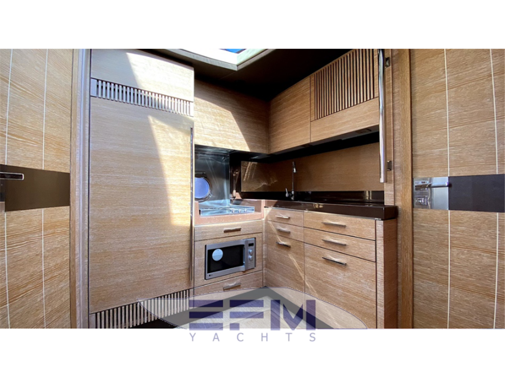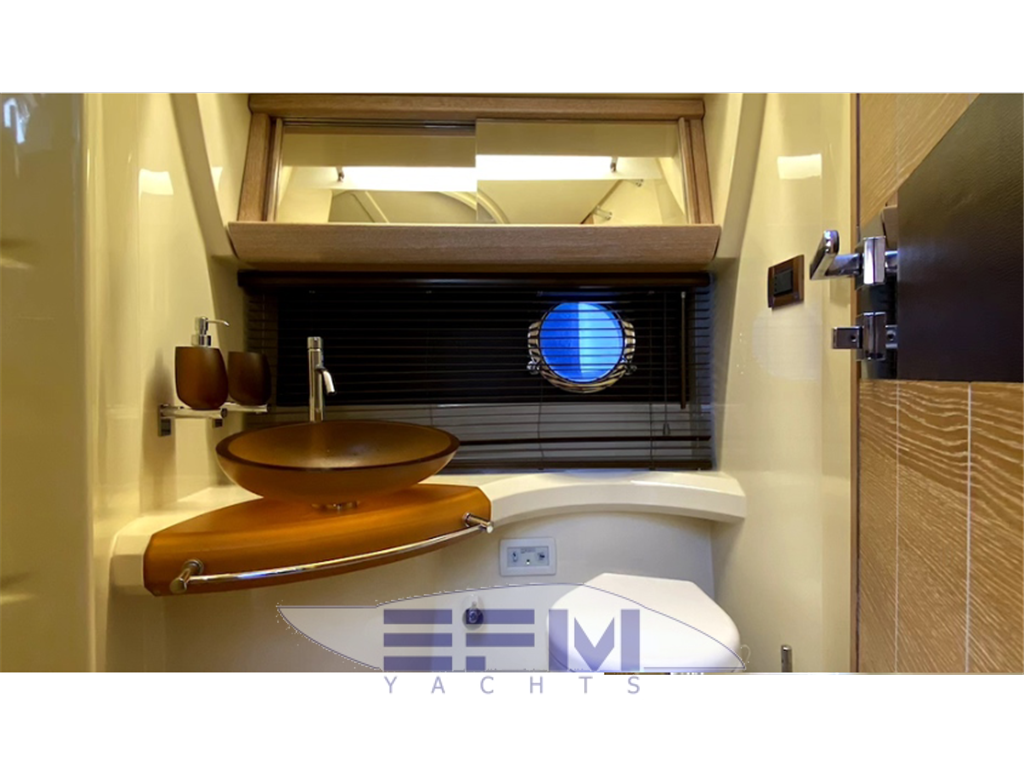 Notas internas• Disegno interni: Carlo Gelazzi • Capacità (PAX): 6 • 3 Cabine ospiti (1 matrimoniale ensuite, 2 cabine gemelle con letti in piano, l bagno esterno • 1 Cabina marinaio con bagno a poppa con entrata dal pozzetto • Cuccette: 6 + 1 • Bagni: 2 + 1 MASTER CABIN Master stateroom is located on the bow with wide port lights windows Queen island berth with storage Washed oak/stainless steel headboard Large washed oak lighted hanging lockers Large washed oak overhead cabinets Large washed oak drawer Washed oak night stands Washed oak shelves Bose system inside hanging locker Bose overhead stereo speakers Stainless steel overhead lights, recessed Stainless steel directional lights Indirect lighting behind master bed frame Air conditioning control panel Cream nylon headliner and bulkheads Round tinted overhead escape hatch with shade Brown louvered blinds Washed oak door with stainless steel handle and threshold Cream low-shag carpeting MASTER HEAD Fiberglass shower enclosure Curved lucite/stainless steel shower doors Stainless steel sliding shower head Tecma cream ceramic toilet Round brown frosted glass sink bowl Stainless steel faucet Cream fiberglass counter top Washed oak mirrored medicine cabinet Stainless steel towel bar and accessories Stainless steel framed tinted port hole Brown louvered blind Wash oak door with stainless steel handle and threshold Washed oak sole PORT GUEST CABIN Fiberglass shower enclosure Curved lucite/stainless steel shower doors Stainless steel sliding shower head Tecma cream ceramic toilet Round brown frosted glass sink bowl Stainless steel faucet Cream fiberglass counter top Washed oak mirrored medicine cabinet Stainless steel towel bar and accessories Stainless steel framed tinted port hole Brown louvered blind Wash oak door with stainless steel handle and threshold Washed oak sole STARBOARD GUEST CABIN Wide windows , beautiful ocean view Twin side-by-side berths with storage Brown bedspreads Washed oak headboard and sideboards Large washed oak lighted hanging locker Washed oak overhead cabinet Washed oak night stand Washed oak drawers Samsung 22" flat-screen color TV Stainless steel overhead lights, recessed Stainless steel directional lights Cream nylon headliner and bulkheads Stainless steel framed tinted port hole Large brown framed rectangular tinted windows Brown louvered blind Washed oak door with stainless steel handle and threshold Cream low-shag carpeting STB HEAD Circular cream fiberglass shower enclosure Curved lucite/stainless steel shower doors Stainless steel sliding shower head Tecma cream ceramic toilet Round brown frosted glass sink bowl Stainless steel faucet Cream fiberglass counter top Washed oak mirrored medicine cabinet Stainless steel towel bar and accessories Stainless steel framed tinted port hole Brown louvered blind Washed oak doors with stainless steel handle and thresholds Washed oak sole CREW CABIN Single berth with storage Triangular cream fiberglass sink with pull-out faucet Bi-fold vanity mirror Tecnema cream ceramic toilet Small cream locker Splendide silver washer/dryer combo Stainless steel directional light Air conditioning control panel Sea-Fire carbon monoxide alarm Electrical panel Stainless steel framed tinted port holes Cream vinyl headliner and bulkheads White stainless steel ladder, starboard Fiberglass access hatches Water maker control Notas de la instrumentaciónMAIN HELM STATIONBennett trim tab controls VDO gauges Cummins Joystick Raymarine P70 auto pilot Raymarine digital depth finder Raymarine E 90 Series twin 9" hybrid touch chart/fish finder/radar/data Raymarine Ray 240 VHF Remote VHF speaker Quick anchor windlass control Quick anchor chain counter AM/FM entertainment system AC/DC Electrical panels Sea-Fire automatic fire extinguishing system Brown leather/stainless steel wheel Helm bench with cream cloth cushion Flares kit FLYBRIDGE ELECTRONICS : Raymarine E-140 Series 15" hybrid touch chart/fish finder/radar/data Raymarine digital depth finder Raymarine P70 auto pilot Raymarine Ray 240 VHF VHF remote speaker Cummins joystick control VDO gauges Bennett trim tab controls Quick anchor windlass control display Quick anchor chain counter SONY AM/FM entertainment system Sea-Fire automatic fire extinguishing system ENGIN ROOM Kohler 13 kW generator with low hours Generator sound shield Stainless steel sea strainers 230V shore power cord Sigmar Marine stainless steel boiler Side-Power bow thruster panel and safety breaker Side-Power stern thruster panel and safety breaker Fresh water pump Airconditioning units Cummins QSC8.3 600 hp diesel engines ZF transmissions Sight-glass fuel gauge Dual Racor fuel filters Stainless steel sea strainers Dripless shaft seals Sea-Fire automatic fire extinguishing system last service March 2016 valid until next inspection March 2017 Automatic exhaust fans 12V plug Fluorescent lights Notas de armamentoFLYBRIDGE LAYOUTU-shaped seating with tan/white cushions Sun pad (2) Storage Storage drawer, fiberglass Cabinet with table top, fiberglass Kenyon grill with wood fold-out teak leaf Fire extinguisher Waeco refrigerator JL Audio stereo Smoked lucite safety hatch Diamond non-skid deck Sat Tv antenna Vhf antennas Spreader lights facing cockpit area Raymarine Radar Antenna DECK White folding bimini top Fiberglass radar arch Quick anchor windlass with foot pedals Anchor chain rode, 250' Anchor chain locker Stainless steel bow rail Stainless steel hand rails Stainless steel cleats Stainless steel framed tinted wrap-around windshield Jabsco spot light Sun pad cushion with cover Console cover Hot/cold transom shower Integrated fiberglass/teak swim platform Swim platform hydraulic lift Stainless steel swim ladder Diamond non-skid deck SALOON Entering into main salon by tinted glass / 316 stainless steel frame sliding doors Airconditioning control panel 220 volts outlets Leather U-shaped seating Leather soft with storage drawer Leather decorative pillows Washed oak/brown le