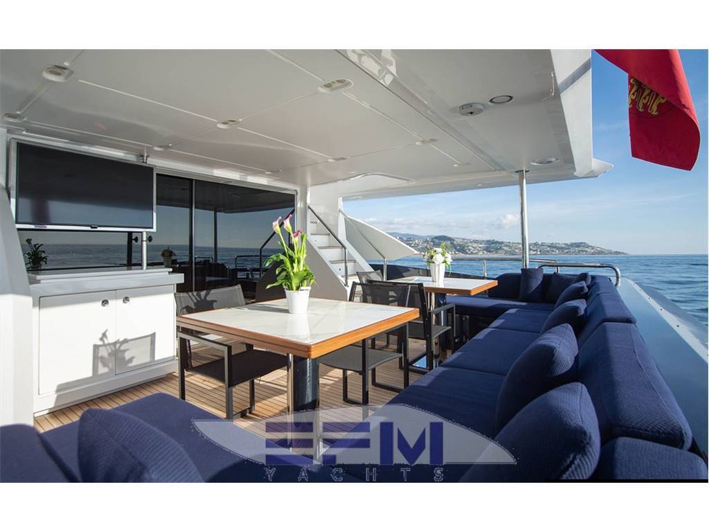 Amazing "AS NEW" 29 mt. flybridge in truly Top condition. 5 cabins ensuite (Master on main deck) + 4 crew. Twin MTU M96 2400hp (650h) Stabilizers fins |