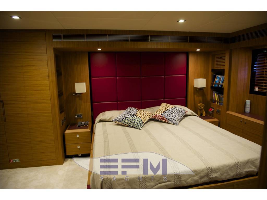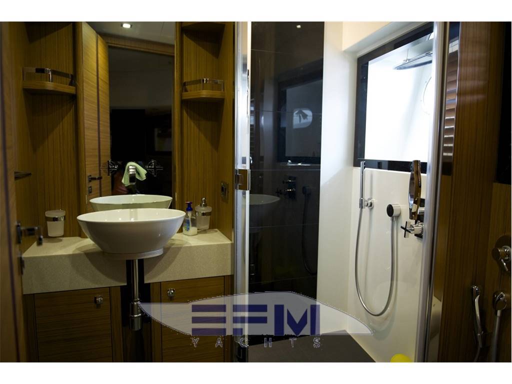 Notas internasCabins 3 + 1 crew Berths 6 + 2 crew Head compartments 3+1 1 AFT FULL BEAN MASTER CABIN ENSUITE 1 BOW VIP CABIN ENSUITE 1 DOUBLE BEDS GUEST CABIN ENSUITE 1 CREW CABIN 2 BEDS + 1 HEAD Notas de la instrumentación• Raymarine Gold navigation package• 2 Raymarine Series screens at both helms • Raymarine GPS • Raymarine autopilot at both helms • Raymarine 48 nm HD radar antenna • Seatel Satellite TV antenna • PB200 weather station • Lcd TVs in salon and cabins • Main generator Kohler 25kW (47 hours) • Additional generator Kohler 20kW (10 hours) • Seakeeper M 21.000 stabiliser Notas de armamento• Three cabin version• A/C system 153.000 BTU with 4 compressors • AIS • Bow and stern thrusters with joystick control • Hard Top on fly • Black net windows covers • 2 underwater lights under swimming platform • Electro hydraulic gangway • Bimini on cockpit • Garage with dinghy launching system • Teak table on flybrdige • Teak laid on bathing platform, cockpit, side decks • Flybridge furniture with BBQ • Additional refrigerator with freezer in pantry area • MIELE wine cooler in salon • Icemaker • Azimut Yachts Exclusive interior fabrics decor |