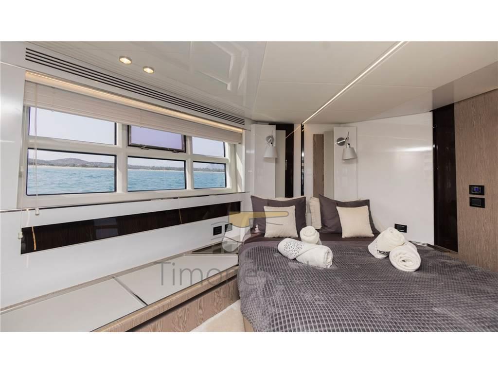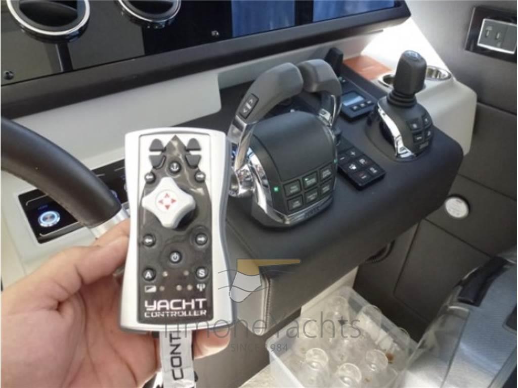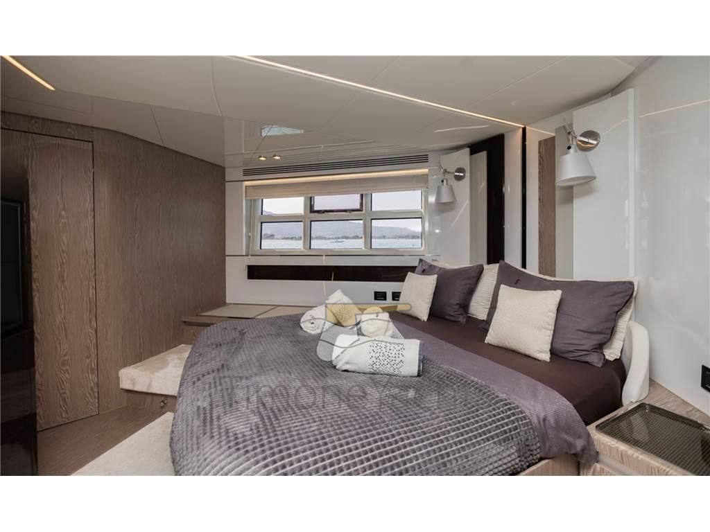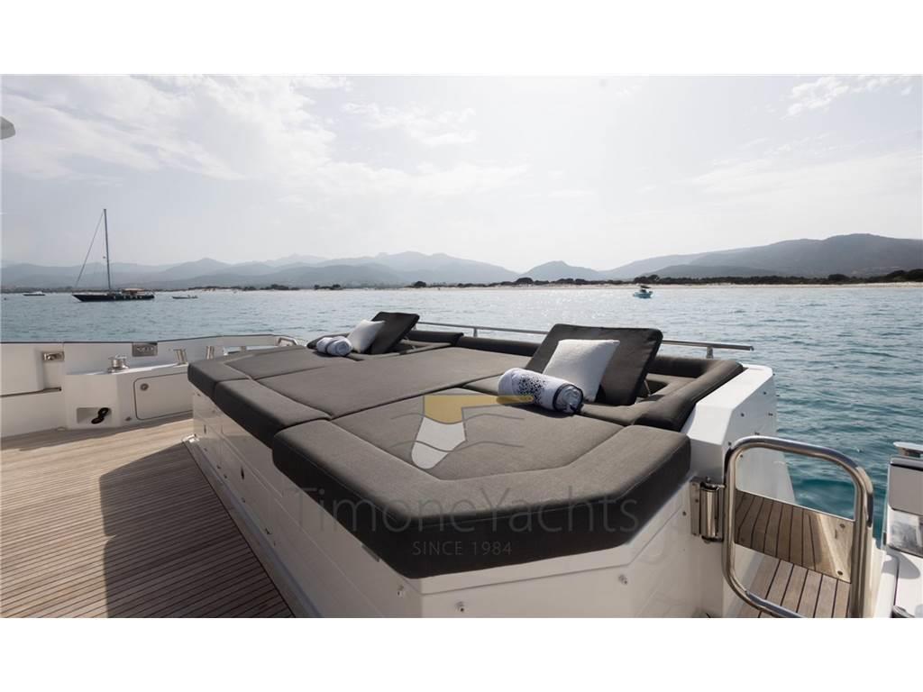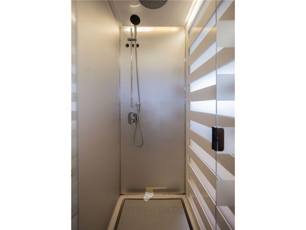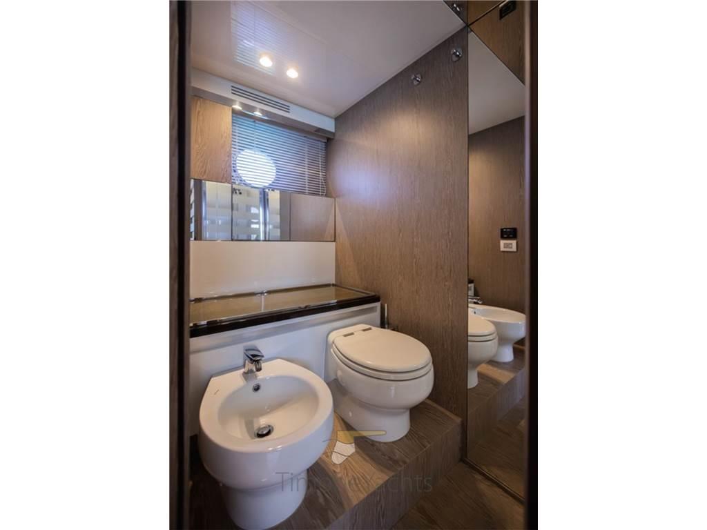 Notas internasScendendo abbiamo armatoriale a centro nave con bagno e bidet. Vip a prua con bagni. Al ccentro doppia letti in piano e doppia letti incrociati che dividono il terzo bagno Ospiti. Cabina equipaggio con bagno con discesa dal camminamento laterale lato dritto. Notas de la instrumentaciónAIS, 2 Comando motori elettronico, Contametri catena, DSC vhf, Ecoscandaglio, GPS, Joystick, Pilota automatico, Plotter, Sedile Copilota.Notas de armamentoAllestimento tecnico e di coperta:Camminamenti laterali in teak, Elica di prua - bow thruster, Faro orientabile, Flap elettrici, Garage per tender, Hard top, Impianto antincendio, Indicatori Flaps, Lavaggio catena, Lavandino nel Pozzetto, Luci di cortesia, Luci subacquee, Passerella, Pozzetto Teak, Presa 220V banchina, Presa acqua banchina, Tavolo pozzetto, Tender, Tromba, 2 Winch tonneggio di poppa, Winch tonneggio di prua. Dotazioni domestiche di bordo: Aria condizionata, BBQ/ Grill, Clima reversibile, Dimmer per Luci, Impianto acque nere, Pavimento interno in legno, Prese interne 12v, Prese interne 220v, Riscaldamento, Serbatoio Acque Nere, 3 WC marino elettrico (+ crew). Intrattenimento: Altoparlanti, Antenna Satellitare TV, Decoder satellite, Home Theater, Impianto TV, Meccanismo saliscendi per TV, Radio AM/FM, Stereo, 3 TV. Cucina ed elettrodomestici: Congelatore, Forno, Frigorifero esterno, Frigorifero interno, Lavastoviglie, Macchina caffè, Piastra elettrica, Piastra in vetroceramica. Tappezzerie: Bimini, Cuscineria completa, Cuscineria di poppa, Cuscineria di prua, Cuscineria fly, Cuscineria Pozzetto, Tenda Elettrica, Tendalino, Zanzariere. |