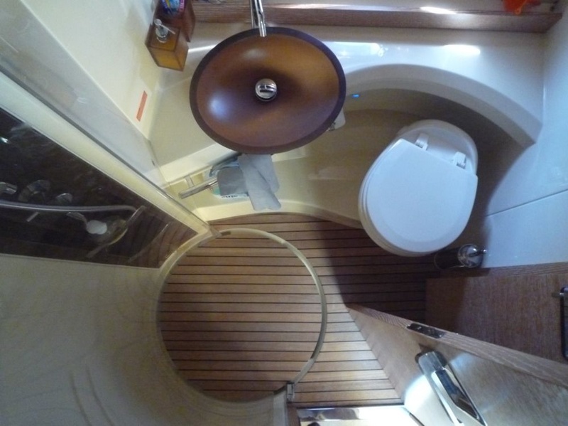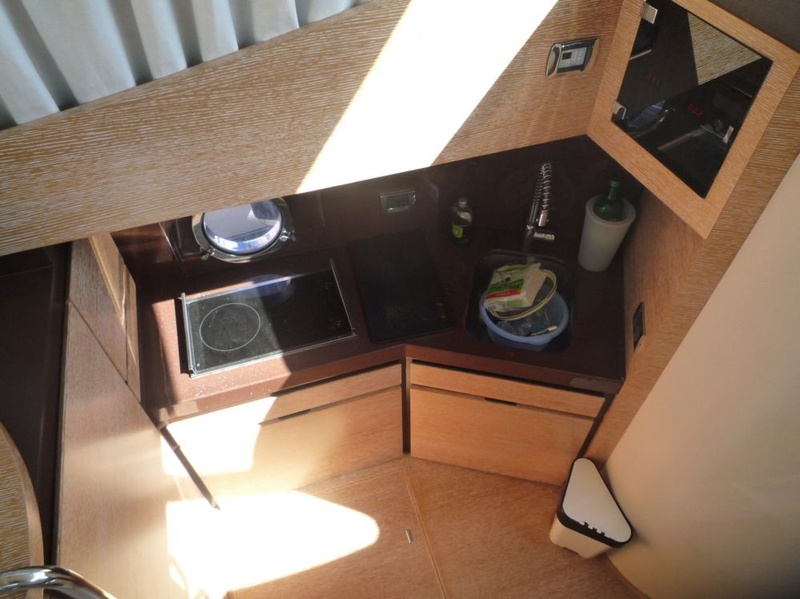 Notas internasAzimut 38 Fly Sono particolarmente interessanti la visita e il test di questo piccolo fly in quanto è un progetto "figlio della crisi" e si può valutare quanto incidano l'esperienza costruttiva e commerciale di un cantiere come Azimut per riuscire a mantenere un rapporto ottimale tra prezzo e qualità con buona attenzione ai consumi. Intanto qui sullo stampo di base si riescono a costruire due differenti tipologie di scafi senza modifiche strutturali sostanziali, condividendo elementi comuni (piattaforme di cabine, cucina, salone, plancia) oltre alla sala motori dove gli stessi propulsori possono essere settati per le differenti esigenze: più vivaci per l'open sportivo 40 S, più tranquille per il 38 Fly, oggetto della prova. Azimut 38 Fly La laminazione, realizzata tradizionalmente, è eseguita dal partner turco di Azimut seguendo ovviamente le specifiche italiane e con l'uso dei materiali che permettono i consueti 5 anni di garanzia antiosmosi; anche la trasmissione scelta, classica e collaudata, permette economia di costi e sicurezza di prestazioni. Interessante è anche l'adozione di un sistema di gestione in digital switching delle utenze tramite AMX Proteo, che consente un'oculato programma di risparmio energetico: ad esempio, la funzione soft start oppure interlock start, che evita l'avvio simultaneo e in regime massimo dei vari motori, impedendo picchi di assorbimento. CARATTERISTICHE COSTRUTTIVE Azimut 38 Fly Carena: progetto di M.Peters planante ad angolo variabile, con tunnel deadrise di 17,9° Costruzione e strutture: laminazione tradizionale e monolitica per l'opera viva, sandwich per fiancate e sovrastrutture. Utilizzo di resine vinilestere in esterno e ortoftaliche-isoftaliche per le strutture Coperta: in sandwich di VTR e resina poliestere Zona di prua: musone ancora con verricello in coperta, gavone catena con lavaggio, pulpito inox, passauomo da cabina di prua, prendisole con cuscineria e piccolo tientibene Azimut 38 Fly Flying bridge: seduta anteriore, postazione guida con sedile ribaltabile per la guida in piedi e ripetitori per elettronica di navigazione e strumenti motore in console, comandi motore e joystick di manovra, divano posteriore con settore centrale mobile per differenti assetti prendisole, gavoni, frigo, tavolino a ribalta sotto il mancorrente di discesa, spazio per la zattera Pozzetto: divanetto di poppa gavonato con apertura centrale di accesso alla passerella, quattro gavoni a parete, scala fly in teak e inox con pedata sagomata, due scalini di accesso al passavanti, teak Plancetta poppiera: vi si accede dal cancelletto sulla dritta, con scala bagno a scomparsa e passerella/gruetta per varo tender; doccia calda/fredda a lato scala di accesso Posto di pilotaggio: in postazione rialzata sulla dritta del salone, con finestratura apribile lateralmente e piccolo boccaporto verso il fly, poltrona due posti, ripostiglio, display Vessel View per il controllo dei motori Cummins (giri, pressioni, tensioni, consumi ecc.) e dei vari parametri di bordo, tridata, Raymarine C140, comandi e indicatori flap. INTERIOR STYLING AND CONCEPT Ampi cristalli si aprono sia sul ponte principale che sottocoperta dove la cabina armatoriale è servita da finestrature laterali in aggiunta al passauomo, mentre la cabina VIP, a centro barca, si affaccia sul mare attraverso due scenic windows. Il decor offre una sensazione di freschezza, privilegiando tinte chiare e tessuti naturali. Rovere decapé, pelle ed acciai caratterizzano ogni ambiente. Lavabi in Vetrofreddo e pavimenti in teak per i due bagni. Suddivisione e caratteristiche I mobili sono realizzati in compensato impiallacciato rovere decapé, i tessuti naturali e sintetici. Le superfici delle porte, molto lineari, sono valorizzate da maniglie di nuovo design; divano, seduta guida, giro letto e dettagli in pelle Cabina armatore a prua, con letto matrimoniale, testa letto in tessuto, giro letto in pelle, luci lettura Led, oblò apribili, armadio appendiabiti, gavone sotto letto con doppio accesso. Il bagno ha pavimento in teak, lavabo in "vetro freddo" (resina trasparente), vano con specchiera scorrevole, box doccia separato tondo con faro integrato e lucernario verso il main deck, wc marino elettrico con maceratore. Azimut 38 Fly La cabina ospiti di dritta con letti gemelli ha una open view bipartita con cristallo composito da 14 mm e un oblò apribile, armadio appendiabiti con interno in cedro, comodino con ripostiglio, cassetto e gavone di stivaggio a pavimento, Il bagno, simile a quello armatoriale come dotazione, ha un calpestio più ampio e manca il lucernario; è comunque presente un oblò apribile. Un portello a pagliolo nel disimpegno permette una facile ispezione o sostituzione della vasca acque grigie dove, per gravità , vengono convogliate le acque di risulta. Azimut 38 Fly La cucina, in fondo alla scala di accesso al sottocoperta, è dotata di pavimento in rovere, piano in resina (derivato dai modelli maggiori), lavello inox con mixer e acqua pre-termostatata, microonde, frigo/freezer da 130 litri, armadietti, cassetti a chiusura frazionata dedicati a posate ecc., oblò apribile. Nel salone, sulla dritta, un divano a L è opzionalmente trasformabile in letto e con il tavolo apribile in legno/cristallo, trasportabile all'esterno quando necessita, rappresenta la dinette/living; contrapposto troviamo un mobile con vani dedicati per il vasellame e altro, l'uscita dell'aria condizionata e lo spazio per il TV esterno. Azimut 38 Fly Qual è un vantaggio immediato? Che è sufficiente un gruppo da 7 kW invece che da 9 kW, con relativo risparmio di quintali di peso, combustibile e così via. Anche il rapporto di interconnessione tra Vessel View, generatore e GPS chartplotter, ottimizza ogni consumo sulla base delle esigenze contingenti. Insomma, "entry level" sì, ma assolutamente non sprovveduti, i due "piccoli" di Azimut. La prova del 38 Fly ha evidenziato un comportamento marino e disinvolto a cui probab