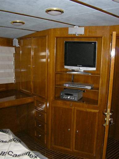 Notas de armamentoAire acondicionado, secadora, calentador de agua, congelador, cocina (cocina independiente), soláriums, satélite de cojines, cojines, travesaño decodificador, DVD, desalinización, Kitchener (placa eléctrica), nevera (2 + nevera en salón y en la torre de orientación), chaquetas, ICE Maker (y superior), planta de agua negra, planta TV, inversor, lavavajillas, lavadora, microondas, interna 12v, 220v interna Sockets, satélite receptor, estéreo, TV (con ascensor)WC marino eléctrico