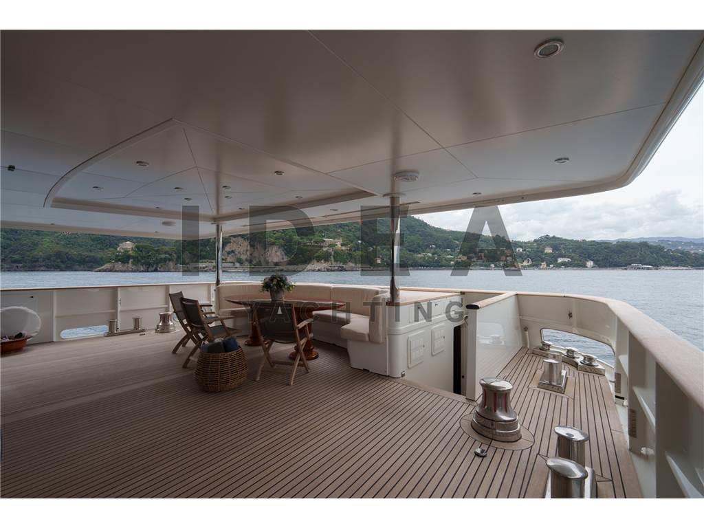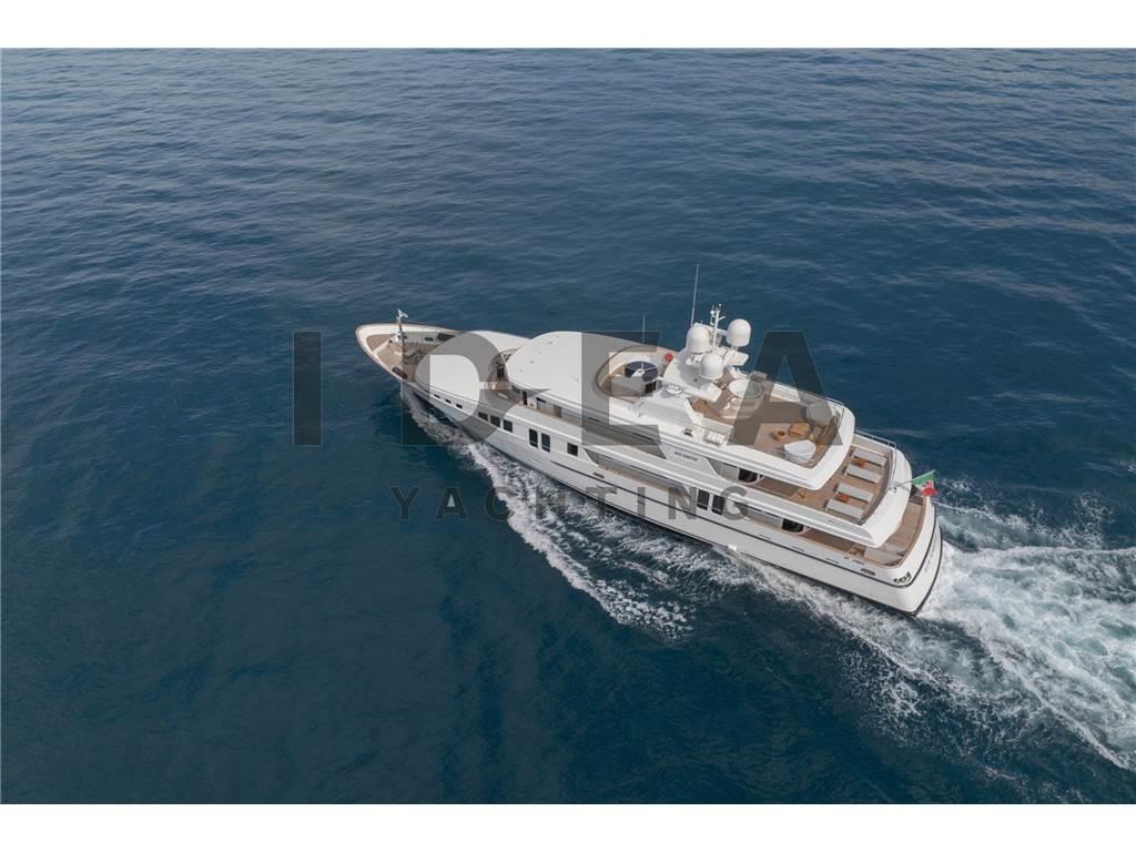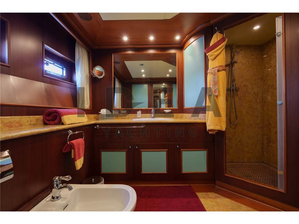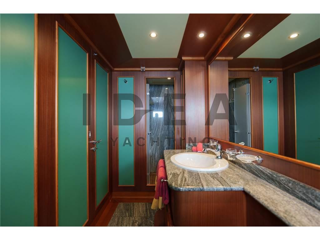 Notas internasPonte Principale: Cabina armatoriale a prua del ponte principale con studio, cabina armadio e bagni separati per lui e per lei Ponte Inferiore: Cabina VIP matrimoniale a centro barca lato dritta ensuite con vasca da bagno Cabina VIP matrimoniale a centro barca lato sinistro ensuite Cabina Ospiti matrimoniale a prua lato dritta ensuite Cabina Ospiti doppia a prua lato sinistra ensuite Ponte Superiore Cabina Ospiti doppia lato dritta ensuite Dipone poi nel ponte inferiore di 4 cabine per l'equipaggio per 6 membri, e di una cabina per il capitano ensuite sul ponte superiore. Notas de la instrumentaciónAngolo barra (VDO), Bussola (Plath magnetic), Display (2 Sailor 6004, 1 Cobham Sailor 6301, 1 Sailor 6006 Message Terminal, 1 Alphaline Multifunction, 1 NCR-333 NAVTEX Receiver), DSC vhf, Ecoscandaglio (Furuno FCV 600L), 2 GPS (2 Sailor 6004), Interfono (Raytheon 430), Log (Litton Marine C.Plath EM 200 Speed Log), MeteoFax, Pilota automatico (Sperry Marine C.Plath Navipilot V HSC 0735-04), Plotter (Vision Master 2020), 2 Radar (1 Decca Band S, 1 Decca Band X), 3 Radio VHF (1 Sailor 6222, 1 Sailor 4900, 1 Sailor 6301), SSB, Stazione vento (Sperry Marine), Telefono satellitare (FBB 150 Fleet Sailor).Notas de armamentoPROPULSIONETrasmissione: 2 x ZF BU754 G (rapporto 3,429:1) montate su elica a 4 pale a passo variabile Kamewa APPARECCHIATURE AUSILIARIE Elica di prua: Schottel STT 060 LK 125 Kw Dissalatore: 2x Idromar Professional IDM7 (300 l/h ciascuno) Stabilizzatori: Pinne stabilizzatrici Zero Speed Naiad Separatore di gasolio: Alfa-Laval MAB 103 B24 Aria condizionata: Frigit Boiler: 5x da 100 l ciascuna CAPACITÀ (APPROSSIMATIVA) Carburante: 96.000 l Olio lubrificante: 400 l Olio lubrificante sporco: 1660 l Acqua dolce: 25.000 l Acque grigia: 3.030 l Acque nera: 3.030 l IMPIANTO ELETTRICO Tensione: 380V trifase Frequenza: 50 Hz AC, 24V DC Batterie: sistema da 24 V DC 6 batterie a gel motore 6 batterie a gel servizi 4 batterie a gel radio ELETTRONICA PER LA NAVIGAZIONE Bussola magnetica: C-Plath Bussola giroscopica: Sperry Marine Navigat X MK1 Gyro digitale Gyro C-Plath: RS-422 Ripetitore bussola console Sperry Marine: 360°/10° GPS: 2 display multifunzione Sailor 6004, display Alphaline AIS LOG: Litton Marine C.Plath EM 200 Speed Log Autopilota: Sperry Marine Navipilot V-HSC 0735-04 Radar: - Radar DECCA S-Band - Radar DECCA X-Band Ecoscandaglio: Furuno FCV 600L SISTEMA CARTOGRAFICO ELETTRONICO: 2 x chartplotter Hatteland JH 19T14 MMD STRUMENTAZIONE DI COMUNICAZIONE E TELECOMUNICAZIONI INMARSAT: - 2x SeaTel V-SAT e 1x SAT-TV - Sailor 6006 Inmarsat C / 6110 GMDSS - Sailor 6301 MF/HF SSB - Sailor 6103 Centralina di allarme NAVTEX: JRC NCR-333 Fleet Broadband: Sailor 150 COBHAM 2 computer Samsung INTERNET AD ALTA VELOCITÀ: Unità Wi-Fi sistema 5G ATTREZZATURA PER L’INTRATTENIMENTO Upperdeck: - TV a soffitto a scomparsa - Crestron MC2E Media Controller - Server Kaleidescape Premiere-line 1U - Lettore Kaleidescape Premiere-line M500 - Amplificatore Denon - Ricevitore Sky HD TV - Altoparlanti marini JL Audio - Decoder SAT Humax Combo 9000 Salone principale: - TV a soffitto a scomparsa Sony - Server Kaleidescape Premiere-line 1U - Lettore Kaleidescape Premiere-line M500 - Amplificatore Denon AVR-2808 - Ricevitore Humax Combo 9000 - Ricevitore SKY Digital ELETTRODOMESTICI, ATTREZZATURE E LAVANDERIA Frigorifero: Frigit - 4 frigoriferi in cucina, 2 frigoriferi nell’area equipaggio Congelatore: Frigit - 2 freezer in cucina, 4 freezer nell’area equipaggio Forno: - Miele H-5981 Panoramic - Miele Inox DGC 7450 Piano cottura: - 2 Miele a induzione a 4 zone Microonde: Miele M638 EC Icemaker: Miele G-8051 Lavastoviglie: Hoonved CE60 Lavatrice: 2x Miele Professional PW 6065 VARIO Asciugatrice: Miele PT 7135 C VARIO - Miele PT 7135 C Plus Abbattitore: Sirman Blast Chiller Grill Miele Friggitrice profonda Estrattore industriale Montavivande Area equipaggio: - 1 piano cottura Miele - 1 microonde Miele - 1 lavastoviglie Miele ALLESTIMENTO Cabine: 12 ospiti in 6 cabine e 7 membri dell’equipaggio in 5 cabine ATTREZZATURA DI COPERTA Ancoraggio e catena: 2 x Danforth da 440 kg con catena da 22mm lunga 150 metri ciascuno Winch: 2 x Sanguineti Chiavari con motori da 9,6 kW Passerella: Motomar da 150 kg di carico Gruetta: Motomar da 1200 kg TENDER E TOYS Tender: - Scanner 420 RIB con Mercury 40 Hp a 4 tempi - Scanner 460 RIB con Mercury 40 Hp a 4 tempi Toys: - Seadoo 300 DOTAZIONI DI SICUREZZA - EPIRB (radio di emergenza) - Allarme antincendio e di sentina - Fari di ricerca: ACR - 3 telecamere di sicurezza Key Features: - Unico proprietario e usata sempre privatamente sin dalla nuova - Volume interno eccezionale - Layout di 6 cabine - Ponte di comando di livello commerciale con attrezzature di navigazione all’avanguardia - Stabilizzatori Zero Speed - Jacuzzi sul sundeck - IVA pagata Lavori di Refit (2019-2025) Lavori 2019 Manutenzione completa dell’impianto idraulico del garage di poppa con nuovo sistema di apertura e controllo elettronico correlato Aggiornamento del sistema di intrattenimento e domotica, inclusa la sostituzione di TV e radio in tutte le cabine Installazione di nuova antenna Fleet Sostituzione sistema radio SSB Nuovo sistema Wi-Fi Installazione di nuovo PC dedicato alle previsioni meteo Installazione di un nuovo PC dedicato all’intrattenimento e al controllo domotico Sostituzione delle schede di controllo elettronico Rolls Royce per eliche a passo variabile Lavori 2020 Verniciatura totale dello scafo e sovrastruttura (Awlgrip HDT OffWhite e Awlgrip Topcoat Off White) con finitura CeraShield Ceramic Coatings Ricostruzione totale del sundeck (trattamento primer e nuovo ponte in teak) Revisione completa della gru del garage Lavori 2021-2022 Rimozione di alberi, eliche VPP e timoni: verifica e sostituzione secondo programma per 20 anni Verifica obbligatoria delle strutture e controllo dello spessore dello scafo Nuovo sistema di scarico dei motori principali (scarico sott’acqua)