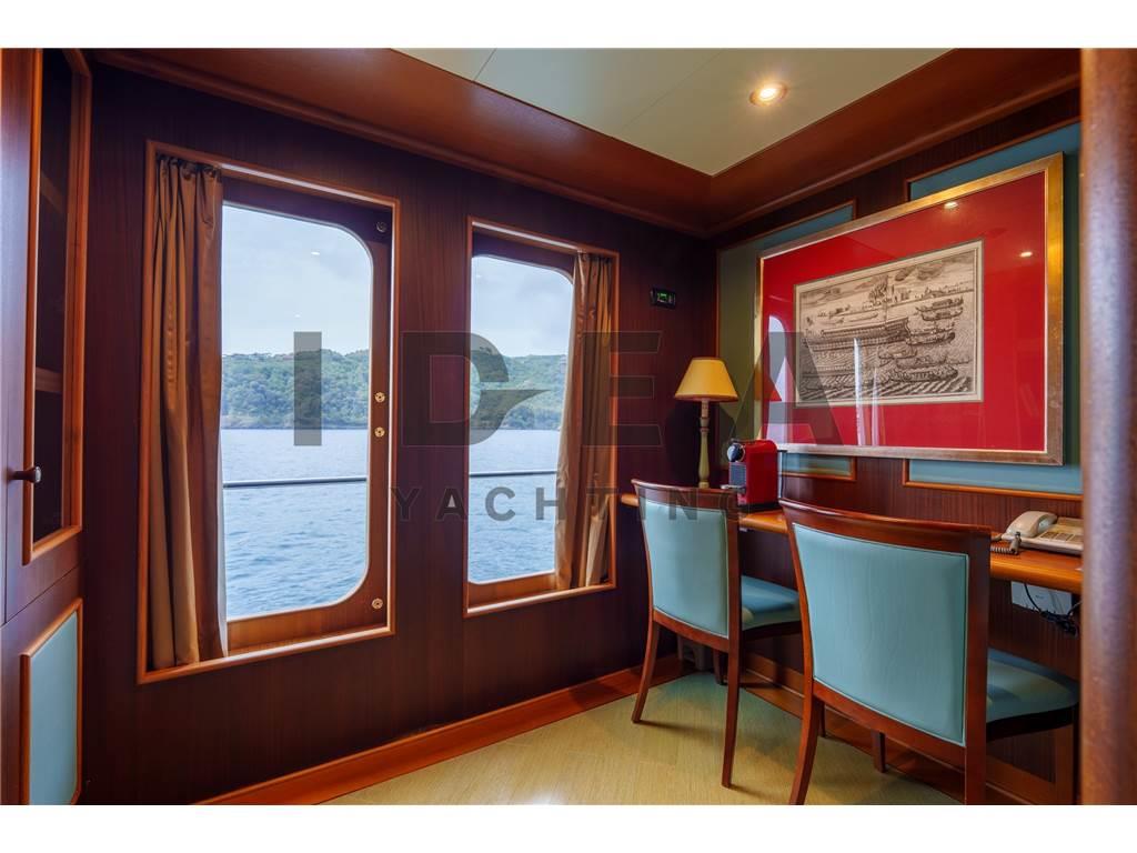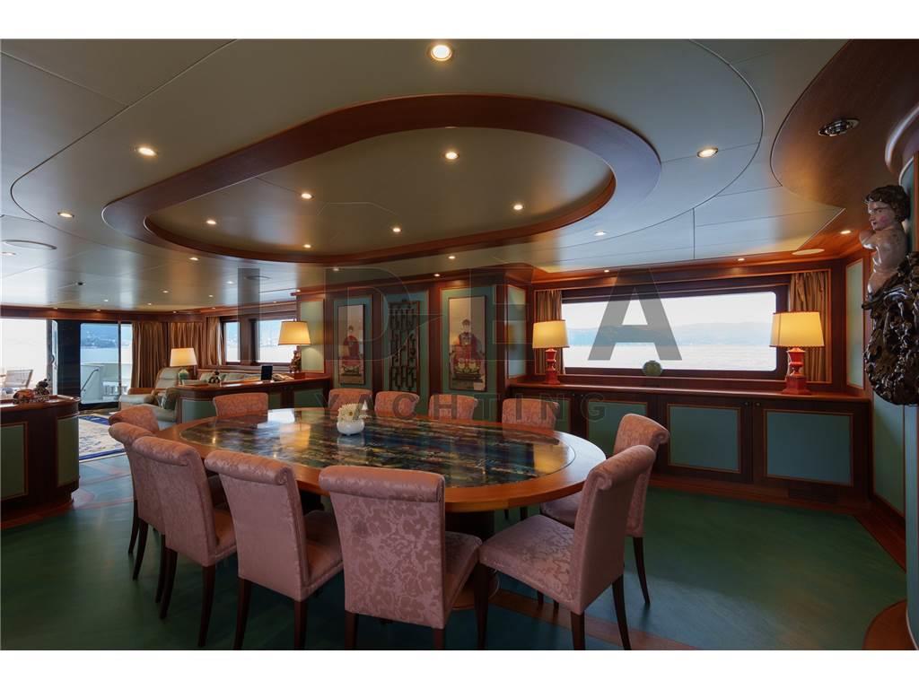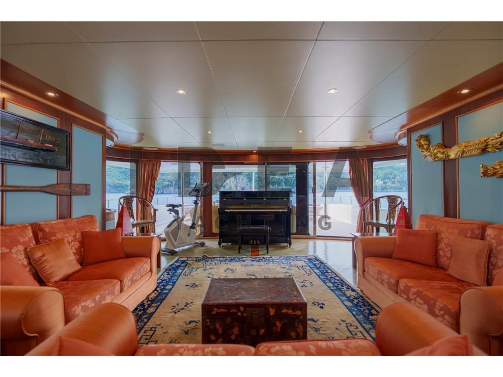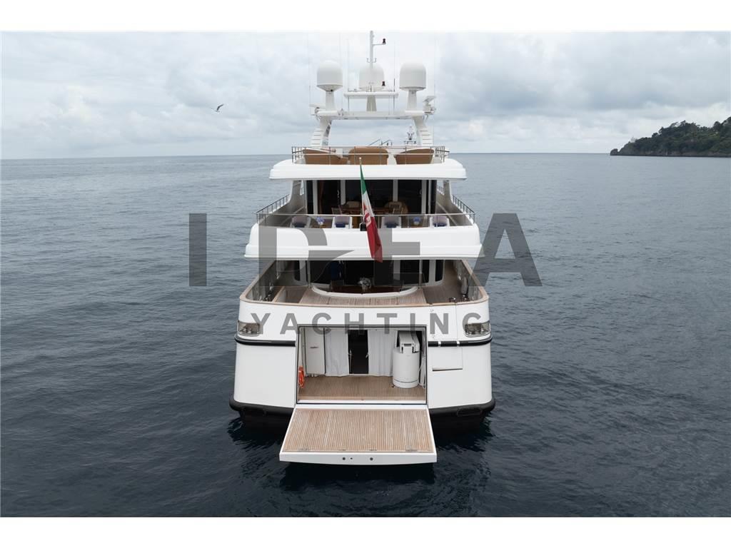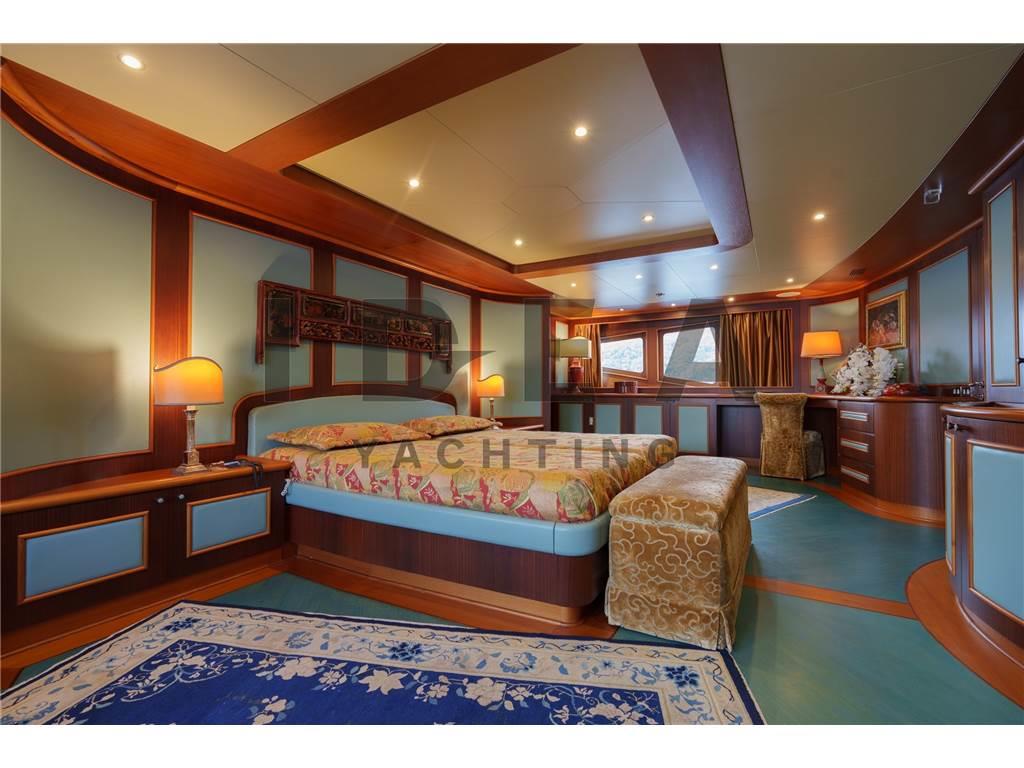 Notas internasPonte Principale: Cabina armatoriale a prua del ponte principale con studio, cabina armadio e bagni separati per lui e per lei Ponte Inferiore: Cabina VIP matrimoniale a centro barca lato dritta ensuite con vasca da bagno Cabina VIP matrimoniale a centro barca lato sinistro ensuite Cabina Ospiti matrimoniale a prua lato dritta ensuite Cabina Ospiti doppia a prua lato sinistra ensuite Ponte Superiore Cabina Ospiti doppia lato dritta ensuite Dipone poi nel ponte inferiore di 4 cabine per l'equipaggio per 6 membri, e di una cabina per il capitano ensuite sul ponte superiore. Notas de la instrumentaciónAngolo barra (VDO), Bussola (Plath magnetic), Display (2 Sailor 6004, 1 Cobham Sailor 6301, 1 Sailor 6006 Message Terminal, 1 Alphaline Multifunction, 1 NCR-333 NAVTEX Receiver), DSC vhf, Ecoscandaglio (Furuno FCV 600L), 2 GPS (2 Sailor 6004), Interfono (Raytheon 430), Log (Litton Marine C.Plath EM 200 Speed Log), MeteoFax, Pilota automatico (Sperry Marine C.Plath Navipilot V HSC 0735-04), Plotter (Vision Master 2020), 2 Radar (1 Decca Band S, 1 Decca Band X), 3 Radio VHF (1 Sailor 6222, 1 Sailor 4900, 1 Sailor 6301), SSB, Stazione vento (Sperry Marine), Telefono satellitare (FBB 150 Fleet Sailor).Notas de armamentoPROPULSIONETrasmissione: 2 x ZF BU754 G (rapporto 3,429:1) montate su elica a 4 pale a passo variabile Kamewa APPARECCHIATURE AUSILIARIE Elica di prua: Schottel STT 060 LK 125 Kw Dissalatore: 2x Idromar Professional IDM7 (300 l/h ciascuno) Stabilizzatori: Pinne stabilizzatrici Zero Speed Naiad Separatore di gasolio: Alfa-Laval MAB 103 B24 Aria condizionata: Frigit Boiler: 5x da 100 l ciascuna CAPACITÀ (APPROSSIMATIVA) Carburante: 96.000 l Olio lubrificante: 400 l Olio lubrificante sporco: 1660 l Acqua dolce: 25.000 l Acque grigia: 3.030 l Acque nera: 3.030 l IMPIANTO ELETTRICO Tensione: 380V trifase Frequenza: 50 Hz AC, 24V DC Batterie: sistema da 24 V DC 6 batterie a gel motore 6 batterie a gel servizi 4 batterie a gel radio ELETTRONICA PER LA NAVIGAZIONE Bussola magnetica: C-Plath Bussola giroscopica: Sperry Marine Navigat X MK1 Gyro digitale Gyro C-Plath: RS-422 Ripetitore bussola console Sperry Marine: 360°/10° GPS: 2 display multifunzione Sailor 6004, display Alphaline AIS LOG: Litton Marine C.Plath EM 200 Speed Log Autopilota: Sperry Marine Navipilot V-HSC 0735-04 Radar: - Radar DECCA S-Band - Radar DECCA X-Band Ecoscandaglio: Furuno FCV 600L SISTEMA CARTOGRAFICO ELETTRONICO: 2 x chartplotter Hatteland JH 19T14 MMD STRUMENTAZIONE DI COMUNICAZIONE E TELECOMUNICAZIONI INMARSAT: - 2x SeaTel V-SAT e 1x SAT-TV - Sailor 6006 Inmarsat C / 6110 GMDSS - Sailor 6301 MF/HF SSB - Sailor 6103 Centralina di allarme NAVTEX: JRC NCR-333 Fleet Broadband: Sailor 150 COBHAM 2 computer Samsung INTERNET AD ALTA VELOCITÀ: Unità Wi-Fi sistema 5G ATTREZZATURA PER L’INTRATTENIMENTO Upperdeck: - TV a soffitto a scomparsa - Crestron MC2E Media Controller - Server Kaleidescape Premiere-line 1U - Lettore Kaleidescape Premiere-line M500 - Amplificatore Denon - Ricevitore Sky HD TV - Altoparlanti marini JL Audio - Decoder SAT Humax Combo 9000 Salone principale: - TV a soffitto a scomparsa Sony - Server Kaleidescape Premiere-line 1U - Lettore Kaleidescape Premiere-line M500 - Amplificatore Denon AVR-2808 - Ricevitore Humax Combo 9000 - Ricevitore SKY Digital ELETTRODOMESTICI, ATTREZZATURE E LAVANDERIA Frigorifero: Frigit - 4 frigoriferi in cucina, 2 frigoriferi nell’area equipaggio Congelatore: Frigit - 2 freezer in cucina, 4 freezer nell’area equipaggio Forno: - Miele H-5981 Panoramic - Miele Inox DGC 7450 Piano cottura: - 2 Miele a induzione a 4 zone Microonde: Miele M638 EC Icemaker: Miele G-8051 Lavastoviglie: Hoonved CE60 Lavatrice: 2x Miele Professional PW 6065 VARIO Asciugatrice: Miele PT 7135 C VARIO - Miele PT 7135 C Plus Abbattitore: Sirman Blast Chiller Grill Miele Friggitrice profonda Estrattore industriale Montavivande Area equipaggio: - 1 piano cottura Miele - 1 microonde Miele - 1 lavastoviglie Miele ALLESTIMENTO Cabine: 12 ospiti in 6 cabine e 7 membri dell’equipaggio in 5 cabine ATTREZZATURA DI COPERTA Ancoraggio e catena: 2 x Danforth da 440 kg con catena da 22mm lunga 150 metri ciascuno Winch: 2 x Sanguineti Chiavari con motori da 9,6 kW Passerella: Motomar da 150 kg di carico Gruetta: Motomar da 1200 kg TENDER E TOYS Tender: - Scanner 420 RIB con Mercury 40 Hp a 4 tempi - Scanner 460 RIB con Mercury 40 Hp a 4 tempi Toys: - Seadoo 300 DOTAZIONI DI SICUREZZA - EPIRB (radio di emergenza) - Allarme antincendio e di sentina - Fari di ricerca: ACR - 3 telecamere di sicurezza Key Features: - Unico proprietario e usata sempre privatamente sin dalla nuova - Volume interno eccezionale - Layout di 6 cabine - Ponte di comando di livello commerciale con attrezzature di navigazione all’avanguardia - Stabilizzatori Zero Speed - Jacuzzi sul sundeck - IVA pagata Lavori di Refit (2019-2025) Lavori 2019 Manutenzione completa dell’impianto idraulico del garage di poppa con nuovo sistema di apertura e controllo elettronico correlato Aggiornamento del sistema di intrattenimento e domotica, inclusa la sostituzione di TV e radio in tutte le cabine Installazione di nuova antenna Fleet Sostituzione sistema radio SSB Nuovo sistema Wi-Fi Installazione di nuovo PC dedicato alle previsioni meteo Installazione di un nuovo PC dedicato all’intrattenimento e al controllo domotico Sostituzione delle schede di controllo elettronico Rolls Royce per eliche a passo variabile Lavori 2020 Verniciatura totale dello scafo e sovrastruttura (Awlgrip HDT OffWhite e Awlgrip Topcoat Off White) con finitura CeraShield Ceramic Coatings Ricostruzione totale del sundeck (trattamento primer e nuovo ponte in teak) Revisione completa della gru del garage Lavori 2021-2022 Rimozione di alberi, eliche VPP e timoni: verifica e sostituzione secondo programma per 20 anni Verifica obbligatoria delle strutture e controllo dello spessore dello scafo Nuovo sistema di scarico dei motori principali (scarico sott’acqua)