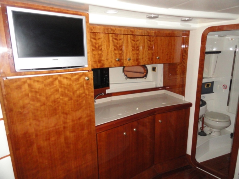 14 metros de largo y setenta, es un concentrado de grano y encanto. La lÃnea ágil denota su deportividad de gran carrera. La velocidad es excitante. Espacio habitable pertenece a una categorÃa mucho mayor. En una terraza de gran cabina, gran sofá, óvalo superior de la tabla. Incluso dentro de Flash 48 ' sigue sorprendiendo. La sala de estar tiene una cocina con altura completa del refrigerador. El armador tiene cuarto de baño con cabina de ducha separada. Incluso el camarote tiene un baño privado. versión hard top barco en excelentes condiciones, posibilidad de COMMUTING |