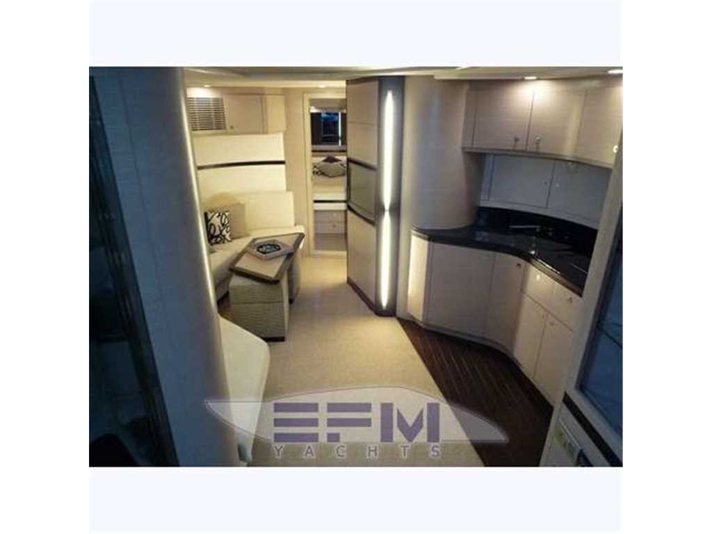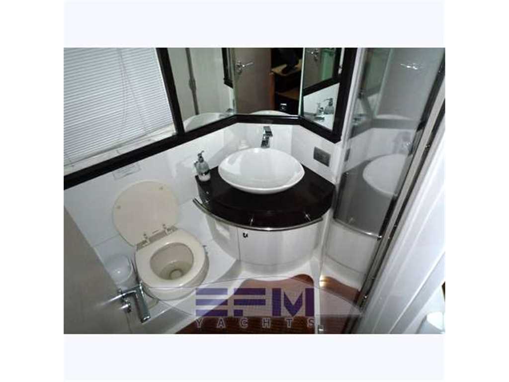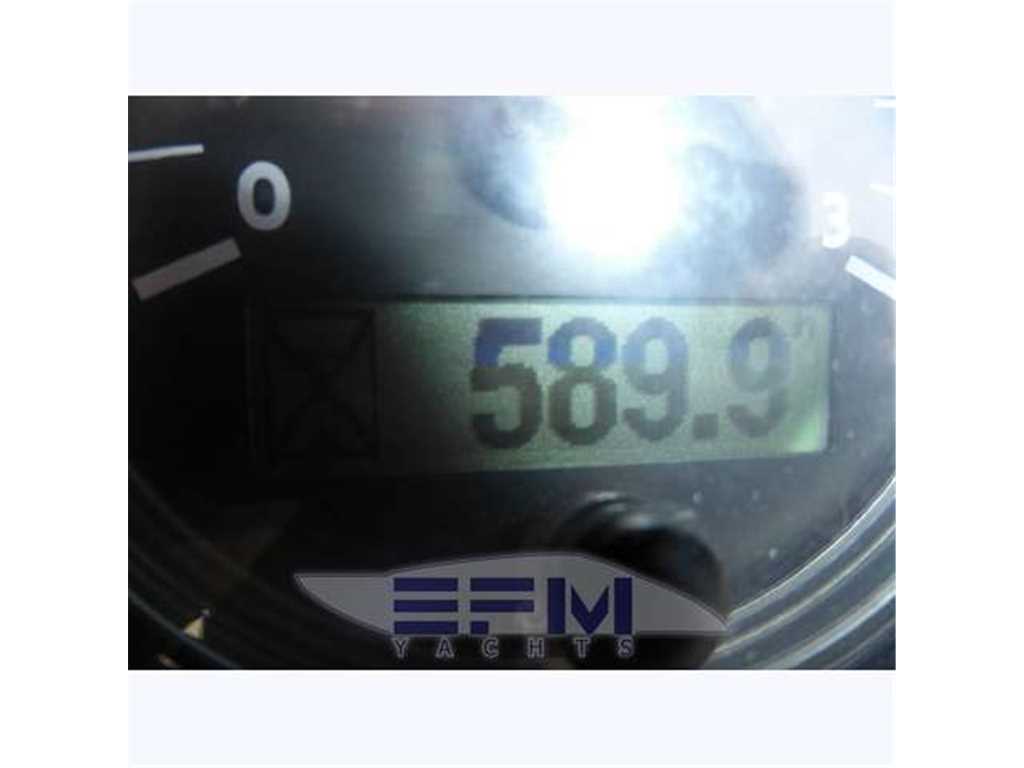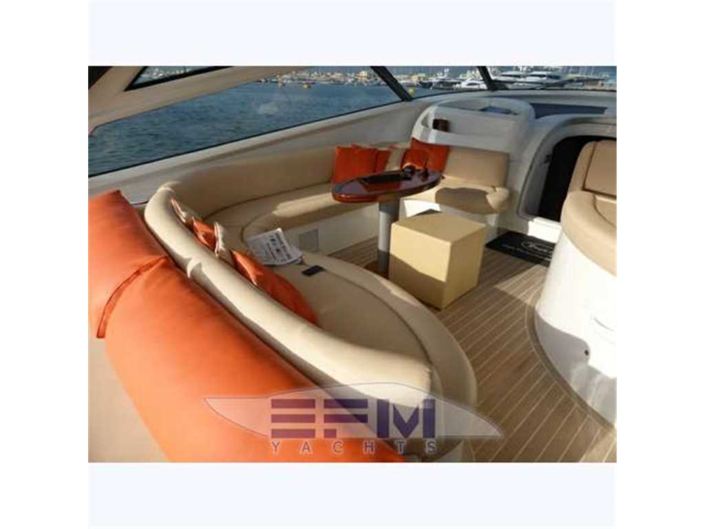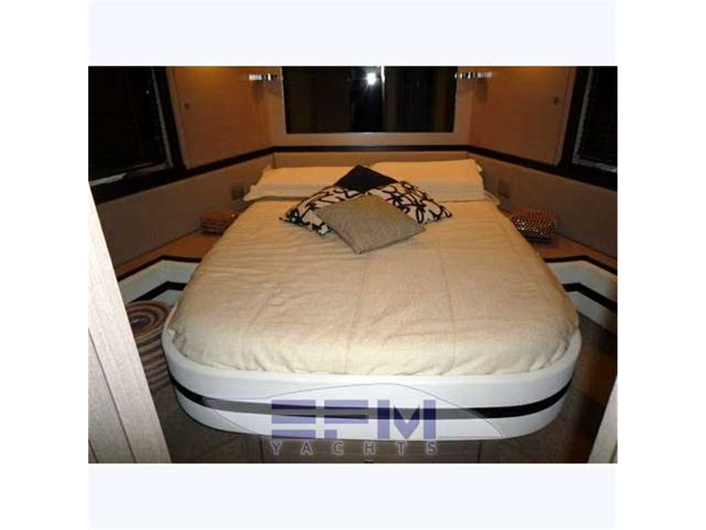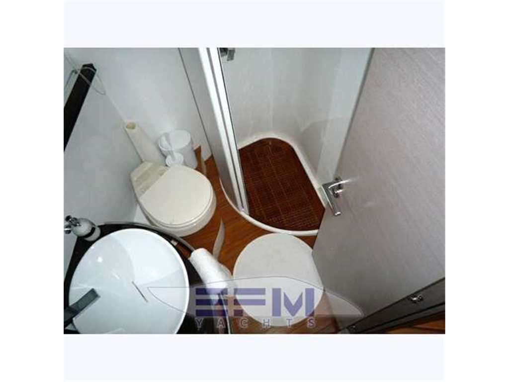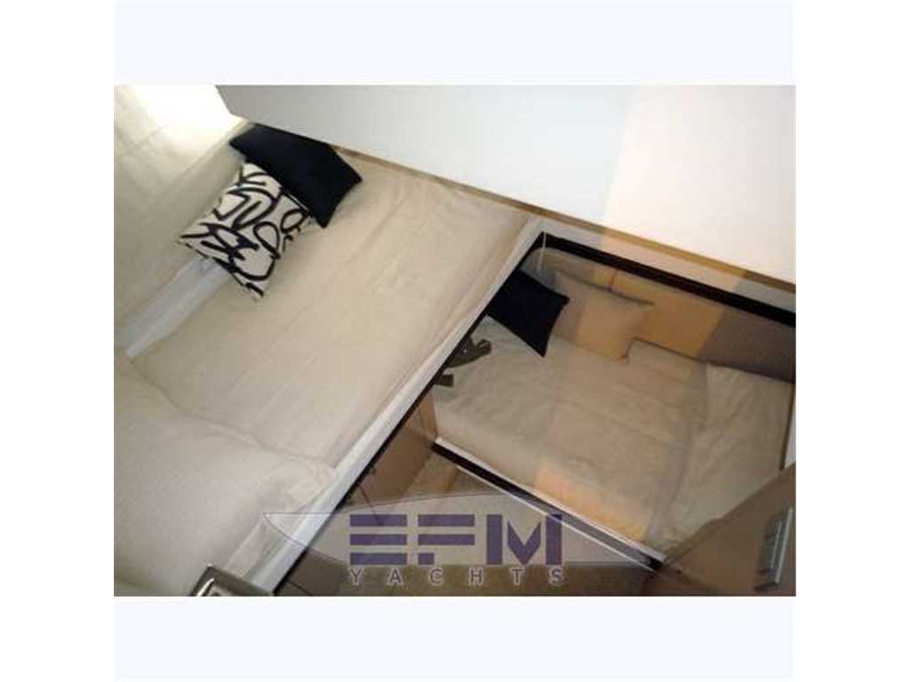 Notas internasCostruzione e strutture: scafo realizzato con resine speciali e tessuti in vetrokevlar. Per le murate, finitura in gelcoat blue navy; linee d'acqua verniciate. Bottazzo in acciaio inox Coperta: camminamenti in vetroresina antisdrucciolo; battagliole, bitte di ormeggio e passacavi in acciaio inox; 2 passauomo in coperta; bimini top con apertura elettrica; roll-bar e parabrezza in vetroresina con trasparenti in vetro temperato Zona di prua: ancora tipo Danforth in acciaio zincato da 40 chilogrammi con passaggio in cubia con piastre in acciaio inox; verricello elettrico da 1.500 watt; 75 metri di catena in acciaio zincato Pozzetto: divaneria a C con tavolo centrale nella parte sinistra del pozzetto; sedile pilota a 2 posti con gavoni; mobile bar con frigo, lavello e grill disposto specularmente verso poppavia; prendisole poppiero con passaggio a dritta per la plancia di poppa Plancetta poppiera: in vetroresina con scaletta bagno manuale; doccia acqua calda e fredda; passerella idraulica e gruetta tender a scomparsa. INTERNI Suddivisione e caratteristiche: a pruavia del grande salone è disposta la cabina armatoriale con bagno privato. Verso poppa vi sono le 2 cabine ospiti e una seconda toilette Posto di pilotaggio: sul lato di dritta del pozzetto, servito da divanetto a 2 posti. Plancia ergonomica con strumentazione motori, radiotelefono VHF, plotter con GPS, ecoscandaglio, bussola, pilota automatico con interfaccia GPS Zona carteggio: sui tavolini in pozzetto e nel salone interno Zona cucina: collocata nella zona mediana dell'imbarcazione, sul lato di dritta. Mobili base e pensili in legno pregiato; piastra cottura; microonde; mobile con frigo/freezer da 270 litri. La qualità e la raffinatezza degli allestimenti si nota a prima vista. Lo spazio è ben sfruttato ed è adeguatamente valorizzato dalla scelta di tonalità chiare in tutte le cabine per ciò che riguarda arredi e rivestimenti. Accessoristica interna di alta gamma Interni moderni ed eleganti in rovere sbiancato e venghe e pavimento in moquette . Ampia e spaziosa dinette posizionata al centro barca, è arredata con divano in pelle + 2 sedute amovibili , tv LCD e impianto Hi-Fi, ed è dotata di una funzionale cucina super attrezzata completa di grande frigo 270 lt ,3 fuochi vetroceramica ,lavello ,lavastoviglie, forno microonde. A prua è posizionata la cabina armatoriale, con bagno e cabina doccia spaziosa come quella di casa. Verso poppa sono situate le due cabine ospiti gemelle: una con i letti in piano e bagno privato con box doccia , e l' altra con i letti alla francese e il bagno con doppio ingresso anche dal salone. Hull: Deep V with hydrodynamic runners . Surface propellers with 5 blades Construction material: hull made ??of special resins and fabrics in vetrokevlar . For the sides , gelcoat finish navy blue , water lines painted . Stainless steel fendering Deck: fiberglass anti-slip walkways , railings , mooring bollards and fairleads in stainless steel , 2 hatches on deck , bimini top with electric opening , roll cage and fiberglass windshield with tempered transparent glass Bow area: Danforth type anchor made ??of galvanized steel from 40 kilograms to pass cubia with stainless steel plate , electric winch with 1,500 -watt , 75 meters of galvanized steel chain Cockpit: C -shaped settee with central table on the left side of the cockpit, pilot seat 2 seats with lockers, wet bar with refrigerator , sink and grill symmetrically disposed towards aft, starboard aft sundeck with passage to the Aft Aft platform: fiberglass ladder with manual shower hot and cold water ; gangway and crane tender disappearing . INTERIOR Layout and characteristics : a large living room is arranged forward of the cabin with private bathroom. Aft there are two guest cabins and a second toilet Helm station: on the starboard side of the cockpit, served as a 2 seater sofa . Ergonomic dashboard with engine instrumentation , VHF radio , GPS plotter , depth sounder , compass , autopilot with GPS interface Galley: on the tables in the cockpit and saloon interior Kitchen area: located in the middle area of the boat, on the starboard side . Base cabinets and wall cabinets in precious wood , hotplate , microwave oven, cabinet with fridge / freezer 270 liter . The quality and sophistication of the equipment you will notice at first glance. The space is well utilized and is suitably enhanced by the choice of light colors in all cabins for what concerns furniture coverings . Accessories inside the high-end Modern and stylish interiors in oak and venghe and carpet flooring. Wide and spacious dinette placed in the center of the boat is furnished with a leather sofa + 2 chairs , removable LCD TV and Hi- Fi , and has a functional fully equipped kitchen complete with large fridge 270 lt, 3 burner hob , sink, dishwasher, microwave . At the bow is located the cabin with bathroom and walk -in shower like at home . Aft are located on the two twin guest cabins : one with twin beds and a private bathroom with shower, and ' other with queen size beds and a bathroom with double entrance from the living room also . Notas de la instrumentaciónStrumentazione Raymarine completa: gps plotter cartografico C 120 interfacciato - vhf - ssb - autopilota interfacciato - ecoscandaglio - manette elettroniche - telefono gsm - antenna telefono satellitare - antenna Sat tv in dome kvh m5 - lettore cd/dvd - televisore lcd - decoder x ski - indicatori flaps - computer controllo indicatori gestione motori • Radiotelefono VHF • Plotter con GPS ed Ecoscandaglio incorporato • Bussola magnetica • Pilota automatico con interfaccia GPSELETTRICO • Gruppo elettrogeno da 9 KW a 220 V c.a. in cassa insonorizzata, filtro gasolio,e silenziatore tipo Acqualift,con comando di accensione e arrestodal quadro elettrico, batteria avviamento • Aria condizionata in tutte le cabine sottocoperta per clima temperato • Boiler elettrico da 50 lt a 220 V c.a. • Gruppi batterie a 24 V c.c.