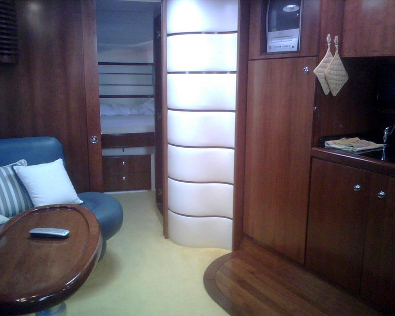 Notas internascamarote de proa doble con cuarto de baño y ducha privada - cabina doble en popa con ducha - cocina en el salón - comedor con sofá mesa y cuero - la tripulación de cabina de popa azul -