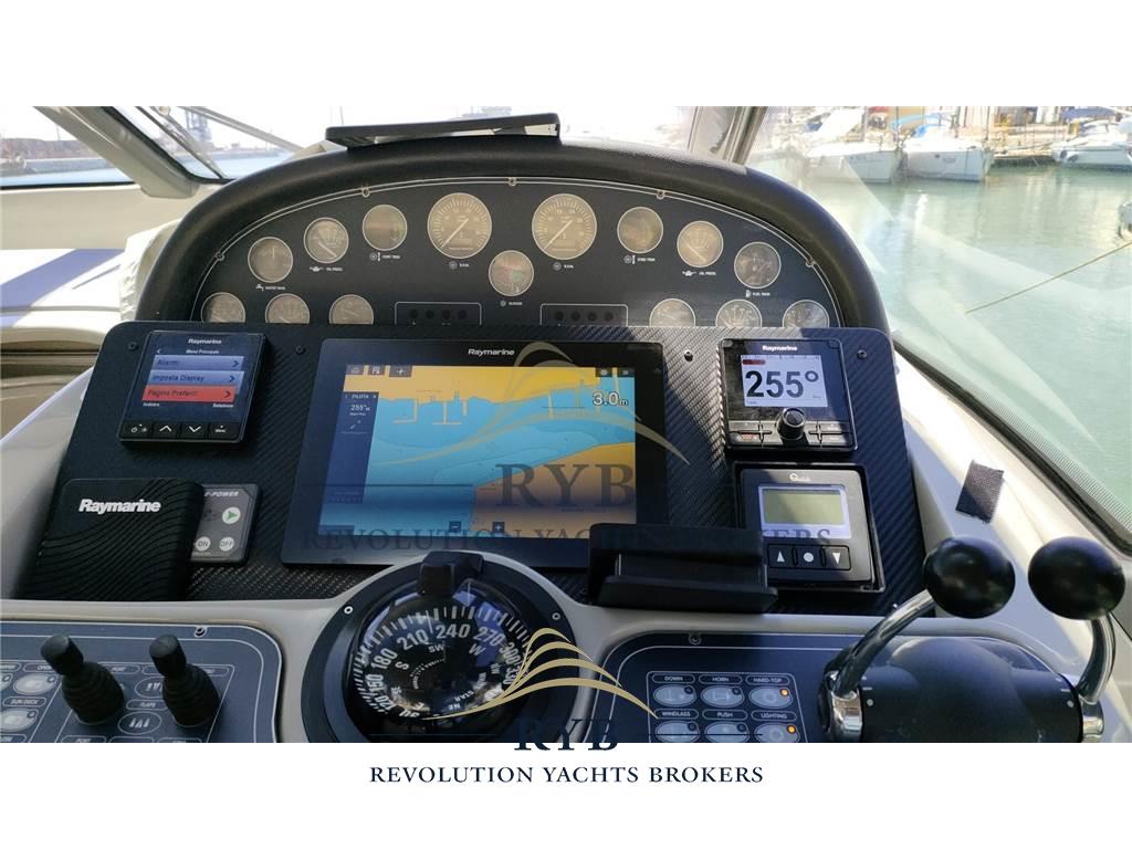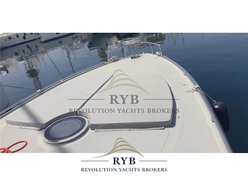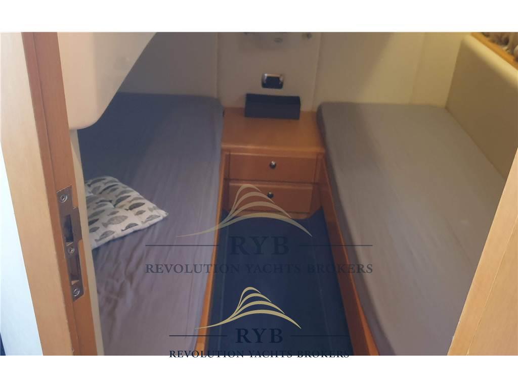 Notas internasNotas de la instrumentaciónAngolo barra, Bussola, Comando motori elettronico, Contamiglia, Ecoscandaglio, GPS, Pilota automatico, Plotter, Radio VHF.Notas de armamentoAllestimento tecnico e di coperta:Allarme motore, Colorazione speciale, Doccia esterna, Elica di prua - bow thruster, Flap idraulici, Hard top, Indicatori Flaps, Lavandino nel Pozzetto, Passerella, Piattaforma, Pompa di sentina automatica, Pompa di sentina elettrica, Pozzetto Teak, Presa 220V banchina, Salpa Ancore Elettrico, Scaletta da bagno, Tavolo pozzetto, Tavolo Salone Abbattibile, Tromba. Dotazioni domestiche di bordo: Aria condizionata, Clima reversibile, Impianto acque nere, Prese interne 12v, Prese interne 220v, WC marino elettrico. Intrattenimento: Altoparlanti, Impianto TV, Radio AM/FM, Stereo. Cucina ed elettrodomestici: Cucina, Frigorifero esterno, Frigorifero interno. Tappezzerie: Cappottina, Copripozzetto, Cuscineria completa, Cuscineria di poppa, Cuscineria di prua, Cuscineria Pozzetto, Tendalino. |