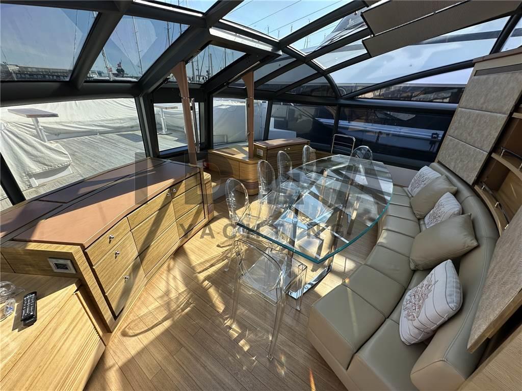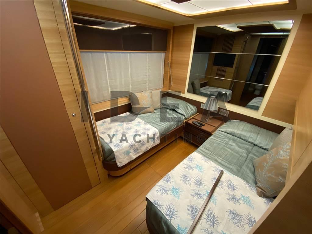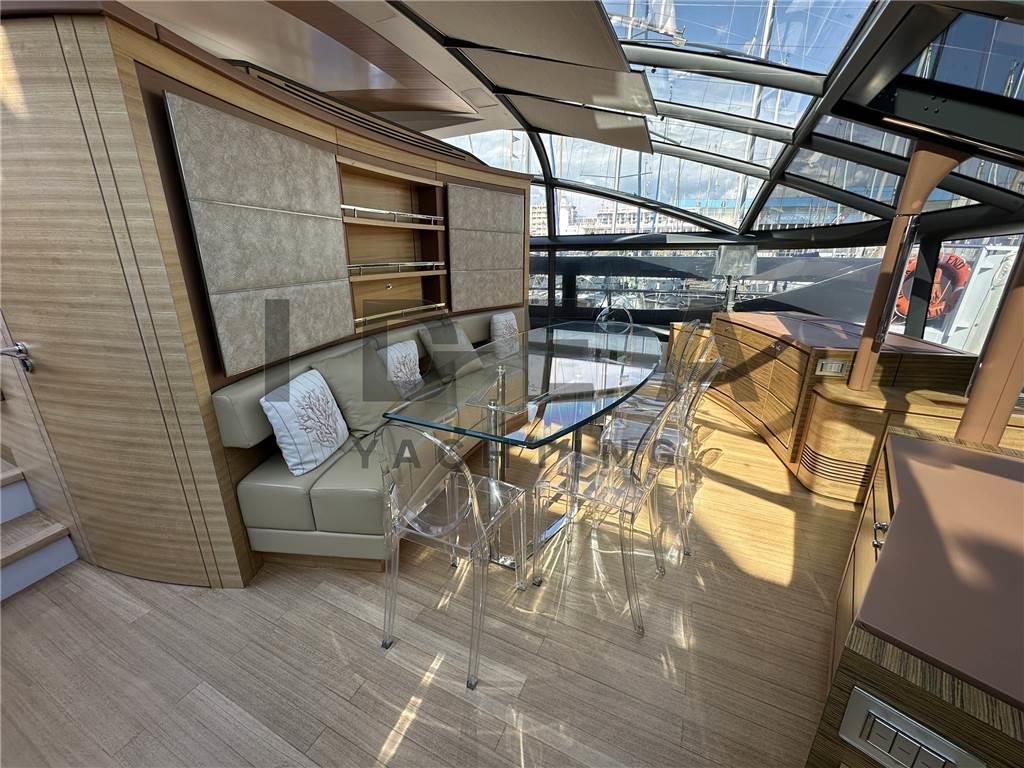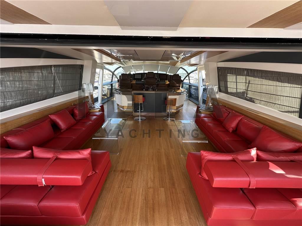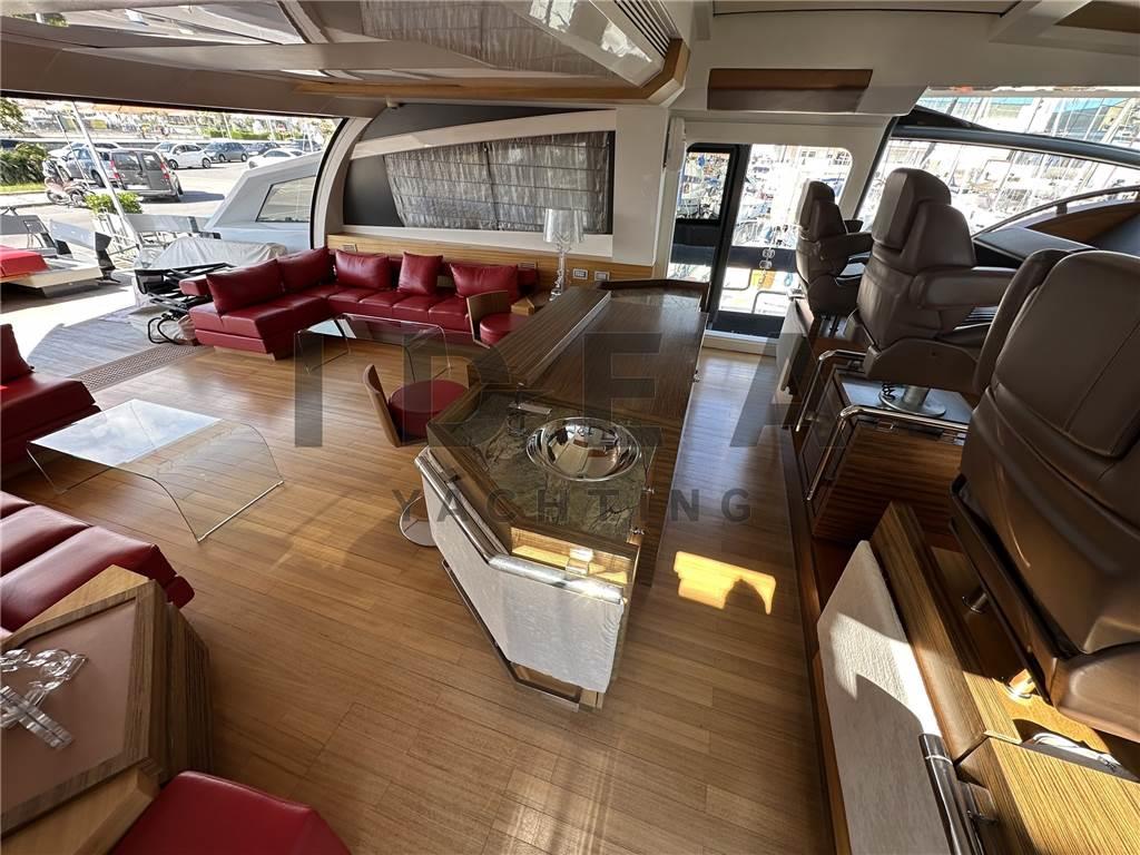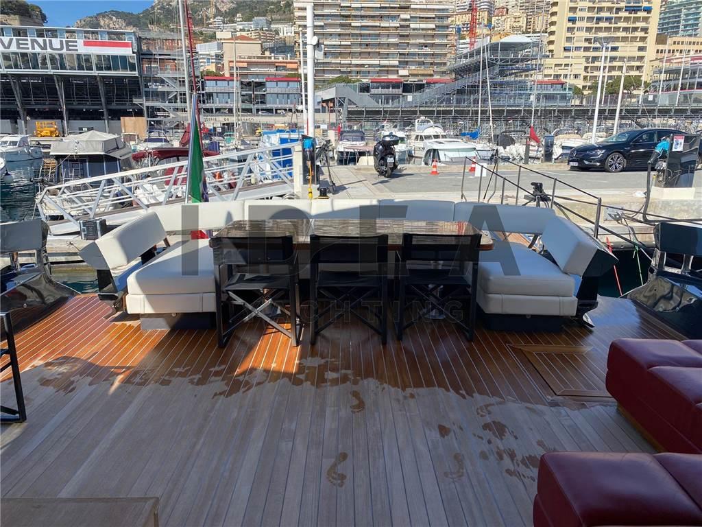 Notas internasNotas de la instrumentaciónBussola, Computer di bordo, Display, GPS, Pilota automatico, Plotter con antenna GPS, Radar, Radio VHF, Telefono GSM.Notas de armamentoAllestimento tecnico e di coperta:Ancora, Camminamenti laterali in teak, Elica di prua - bow thruster, Impianto antincendio, Pozzetto Teak, Tavolo pozzetto, Tender, Winch Elettrico. Dotazioni domestiche di bordo: Aria condizionata, Dissalatore (140 l/h), Serbatoio Acque Nere, Telecamera. Intrattenimento: Antenna Satellitare TV, TV. Cucina ed elettrodomestici: Forno, Frigorifero interno, Lavastoviglie, Piastra in vetroceramica. Tappezzerie: Bimini, Copripozzetto, Cuscineria di prua, Cuscineria Pozzetto, Tendalino. |
