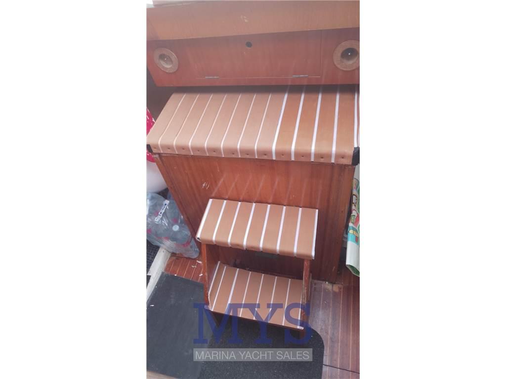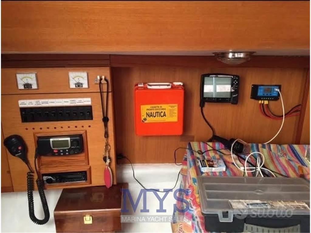 Notas internasCabina di prua con letto matrimoniale a V Bagno con lavandino, wc, carabottino per doccia Dinette con tavolo da pranzo e due divani a murata. Trasformabile in cabina con due letti singoli Cucina a L dotata di lavello, frigo, forno e fuochi Notas de la instrumentaciónPlotter gpsEco Log VHF Pannello motore Batterie Caricabatteria Boiler acqua calda Altoparlanti Radio e stereo Autoclave Pompa di sentina elettrica Pompa di sentina manuale Salpancora elettrico Cucina Fornello Frigo Notas de armamentoTendalinoCuscineria completa Pannelli solari Luci in pozzetto |