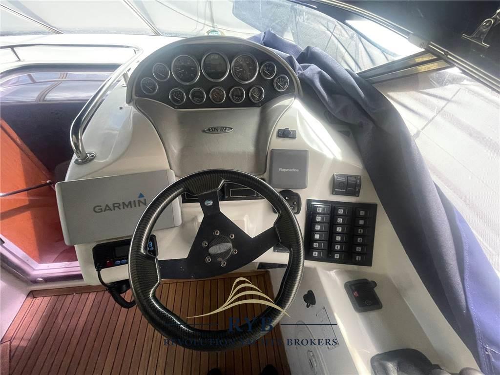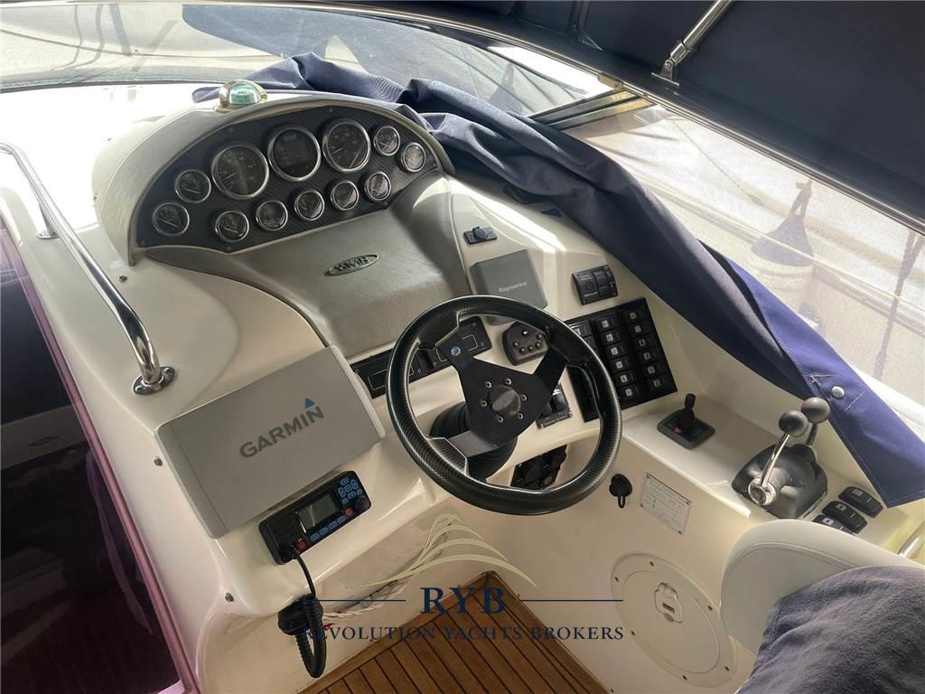 Notas internasNotas de la instrumentaciónBussola, Ecoscandaglio, GPS (GARMIN), Pilota automatico (RAYMARINE), Radio VHF.Notas de armamentoAllestimento tecnico e di coperta:Allarme motore, Doccia esterna, Elica di prua - bow thruster, Flap idraulici, Luci di cortesia, Piattaforma, Pompa di sentina elettrica, Pompa di sentina manuale, Pozzetto Teak, Salpa Ancore Elettrico, Scaletta da bagno, Tavolo pozzetto. Dotazioni domestiche di bordo: Aria condizionata, Pavimento interno in legno. Intrattenimento: Stereo. Cucina ed elettrodomestici: Cucina, Frigorifero esterno, Frigorifero interno. Tappezzerie: Cappottina, Cuscineria completa, Cuscineria di poppa, Cuscineria di prua, Tendalino. |