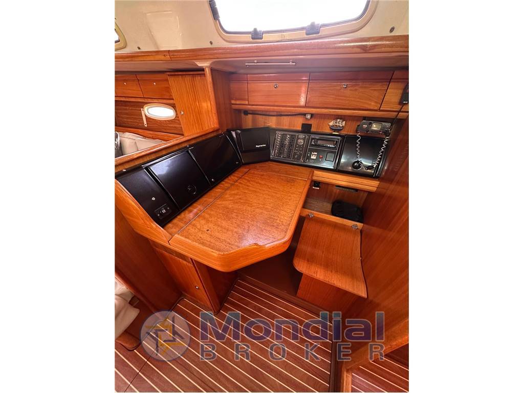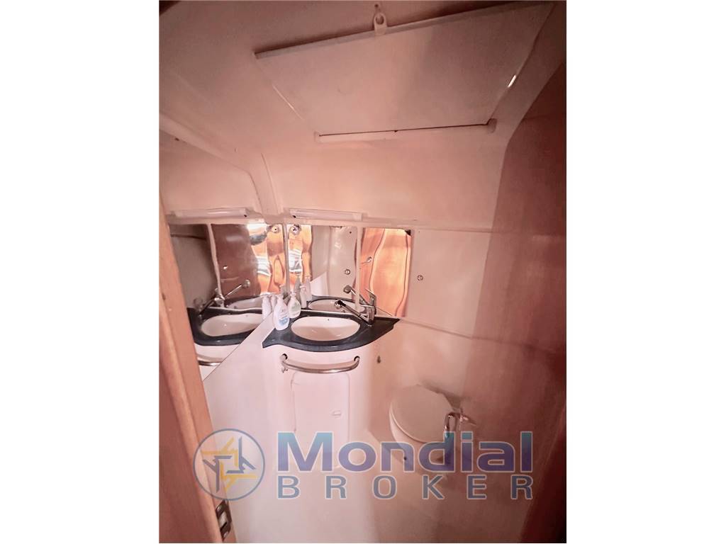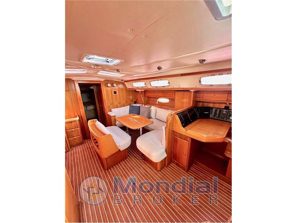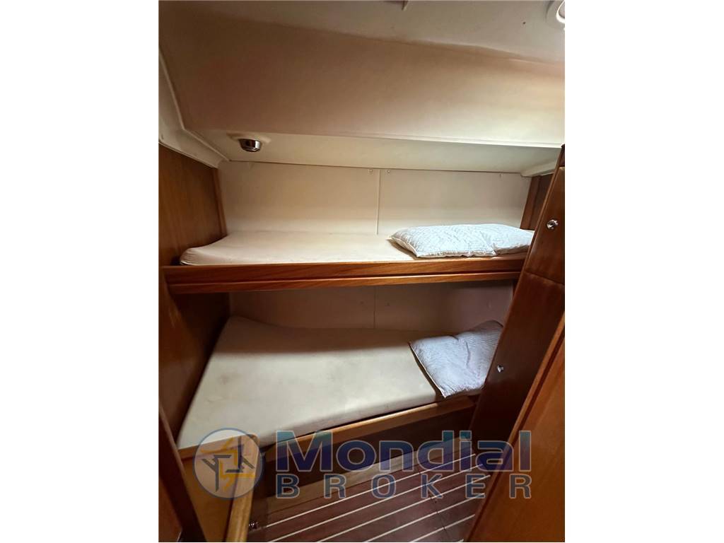 Notas internasInterni color ciliegio, entrando abbiamo una dinette di tutto rispetto per forma e dimensione, scendendo a dritta c'è un comodo carteggio con lo sgabello sulla paratia invece il pannello del quadro elettrico apribile . Continuando troviamo un grande divano a U che nel centro vi è posizionato un grande tavolo per ospitare 6/8 commensali racchiude il tutto una piccola panca. Difronte al divano c'è la cucina composta da un grande frigorifero, un lavello con acqua dolce /salata 3 fuochi con forno basculante agas, per finire alcuni mobiletti per lo stivaggio della cambusa e stoviglie. andando verso prua c'è una cabina con letto matrimoniale alla francese e una cabina con letti a castello, ed un bagno. a poppa ci sono le due cabine ospiti con il secondo bagno.