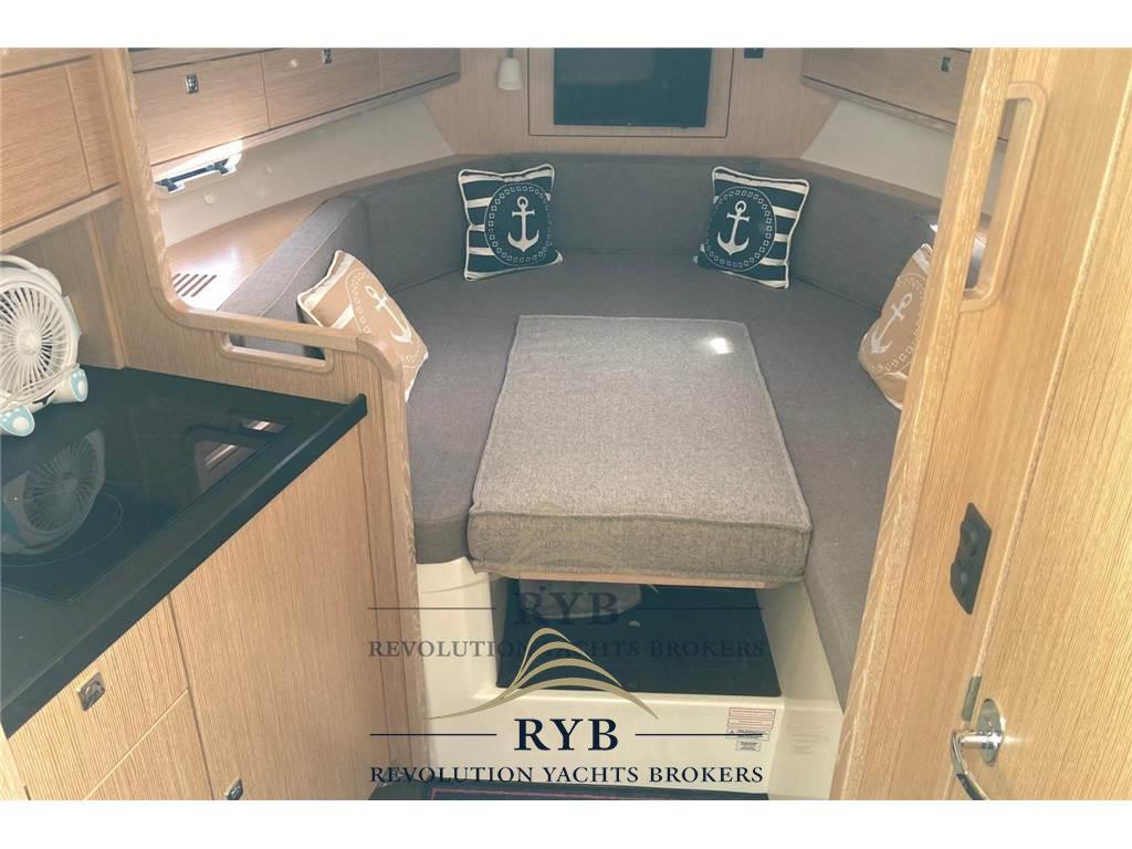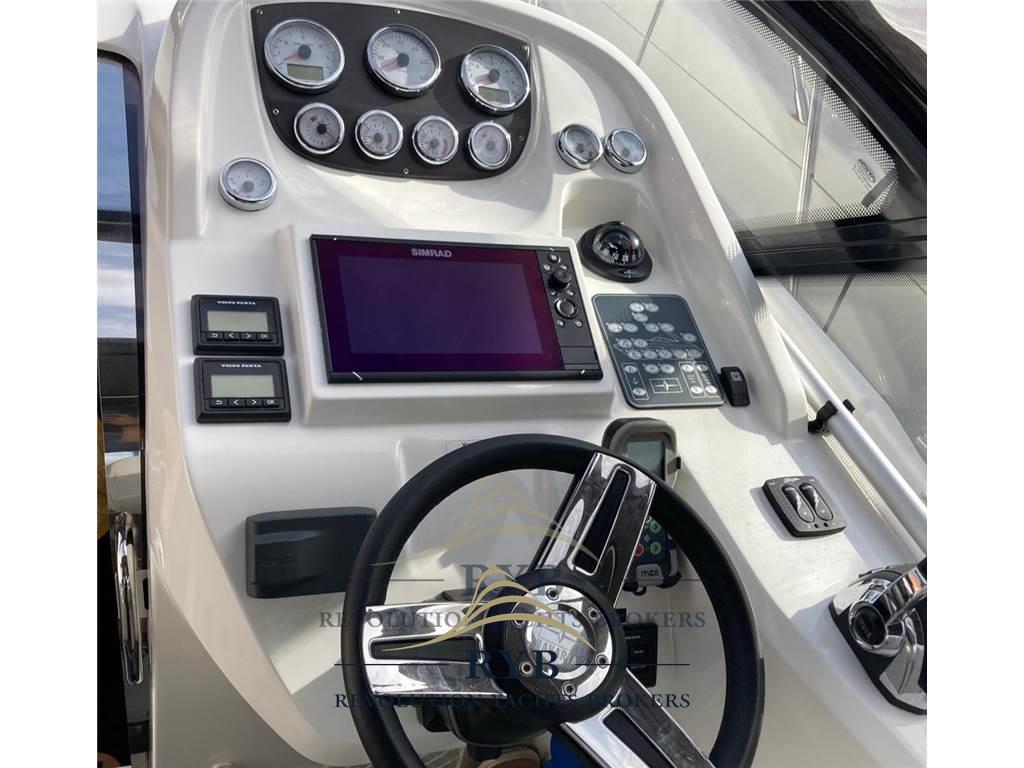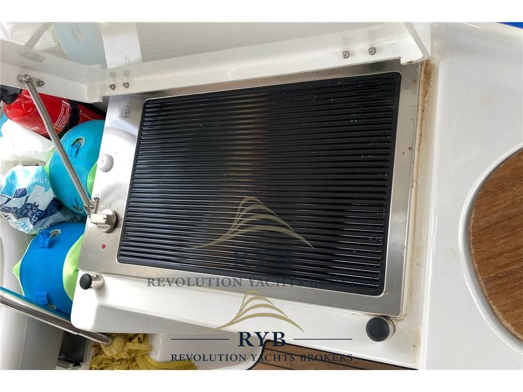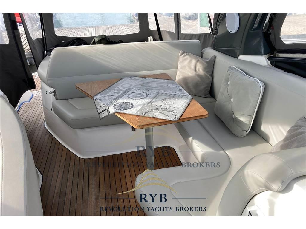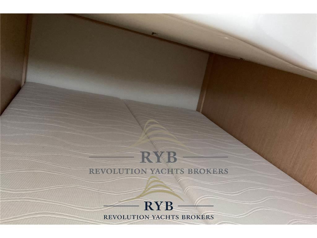 Notas internasNotas de la instrumentaciónBussola, Comando motori elettronico, Computer di bordo, Contametri catena, Ecoscandaglio, GPS, Log, Pilota automatico, Plotter con antenna GPS, Radio VHF.Notas de armamentoAllestimento tecnico e di coperta:Allarme motore, Allarme sentina, Ancora, Doccia esterna, Elica di prua - bow thruster, Flap idraulici, Impianto antincendio, Indicatori Flaps, Lavandino nel Pozzetto, Luci di cortesia, Piattaforma (versione con spiaggetta lunga), Pompa di sentina automatica, Pompa di sentina elettrica, Porta ingresso, Pozzetto Teak, Presa 220V banchina, Rollbar, Salpa Ancore Elettrico, Tavolo pozzetto, Tavolo Salone Abbattibile. Dotazioni domestiche di bordo: Aria condizionata, Impianto acque nere, Prese interne 12v, Prese interne 220v, Serbatoio Acque Nere. Intrattenimento: Altoparlanti, Stereo. Cucina ed elettrodomestici: Cucina, Fornello, Frigorifero interno, Frigorifero meccanico, Piastra in vetroceramica. Tappezzerie: Bimini, Cappottina, Copripozzetto, Cuscineria completa, Cuscineria di poppa, Cuscineria di prua, Tendalino. |