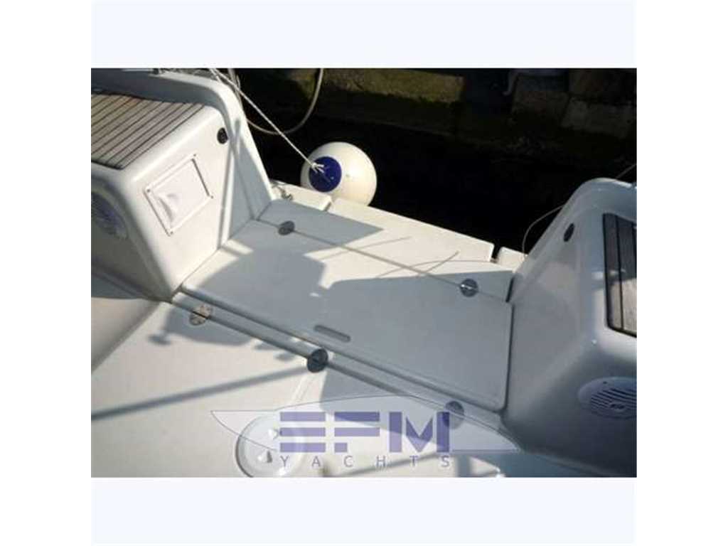 Notas de armamentoPakage elettronica Raymarine completo - Tender plastimare mt. 2.40 + Fb Suzuki 2,2 cv. - Doppio frigo - Dinette trasformabile - Tv Lg 32' Lcd - Lazy Bag, Spry Hood e bimini top in tela blu in ottime condizioni - Randa steccata fiocco avvolgibile - Avvolgiranda - Manica a vento - Doppia timoneria - bimini - cappottina - avvolgifiocco - vang rigido - doccetta esterna miscelata - panca abbattibile a poppa - piattaforma - scaletta bagno - allarme motore - ancora delta 20 kg con catena diam.10 - autoclave - autogonfiabile per 8 persone - sedute pozzetto con inserti in teak - pompa di sentina elettrica e manuale - presa diretta in banchina - raddrizzatore - salpa ancora elettrico - catena maggiorata 70 mt - supporto motore fuoribordo - winch windex - impianto acque nere - dotazioni di sicurezza complete - anulare con boetta - giubbetti salvataggio per 8 persone - versione 3 cabine e 3 bagni - bagni con wc marino manuale - cucina completa con forno, 2 frigoriferi interni, ghiacciaia - tacco portafuoribordo - battagliola inox - copriruota e copritavolo in tessuto blumarine - cuscineria del pozzetto in sky bianco antimacchia.
