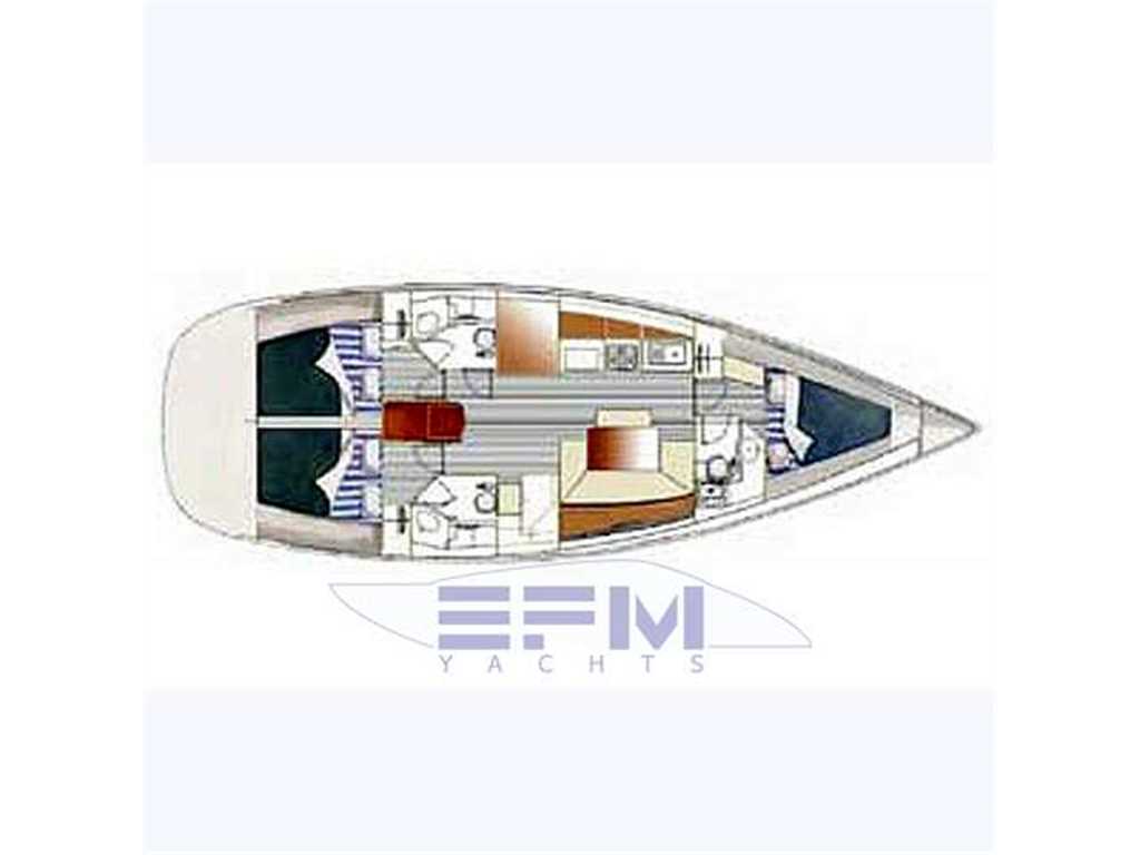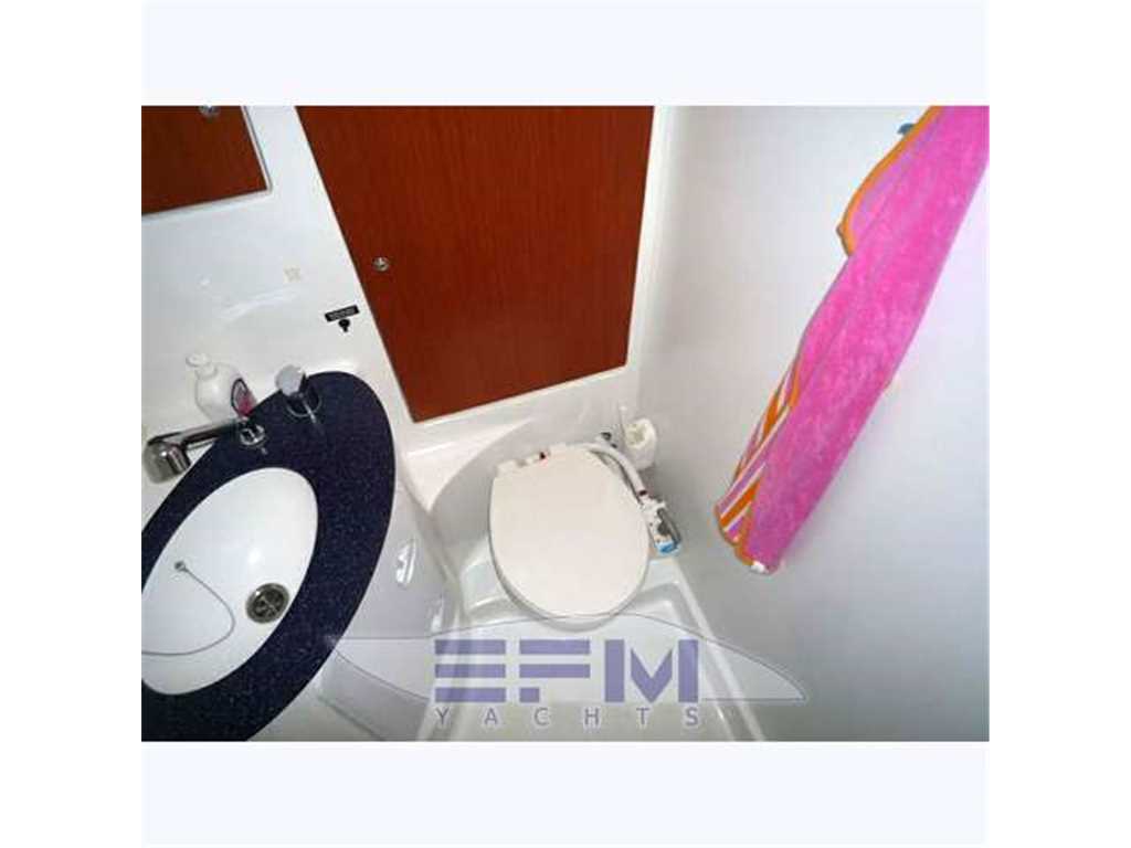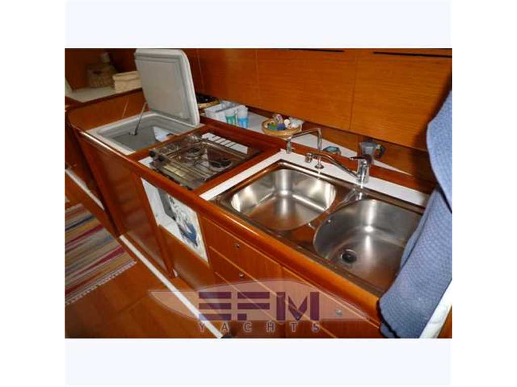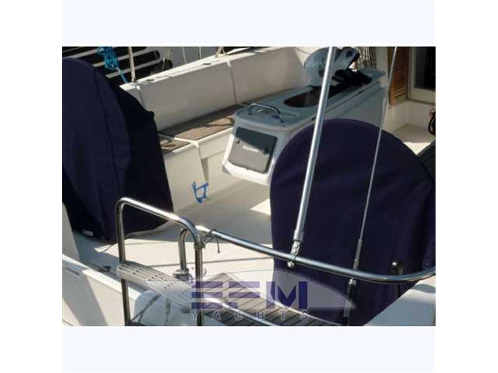 Full Raymarine electronics package formula - Tender Plastimar mt. 2.40 + Fb 2.2 hp Suzuki. - Double fridge - dinette - TV LG 32 'LCD - Lazy Bag, Spry Hood and blue canvas bimini top in excellent condition - battened mainsail furling jib - Chart plotter - cowl - Double steering - Bimini - Hood - furling - rigid vang - mixed outside shower - aft folding bench - platform - swimming ladder - engine alert - 20 kg Delta anchor with chain diam.10 - autoclave - life raft for 8 persons - seating cockpit with teak inserts - electric and manual bilge pump - jack direct dock - rectifier - electric windlass - plus 70 m chain - supporting outboard motor - winch Windex - black water system - complete safety equipment - with a ring buoy - saving vests for 8 people - version 3 cabins and 3 bathrooms - bathrooms manual marine toilet - fully equipped kitchen with oven, 2 refrigerators internal ice - portafuoribordo heels - steel rail - wheel covers and tablecloth fabric blumarine - cockpit cushions of white stain in sky.