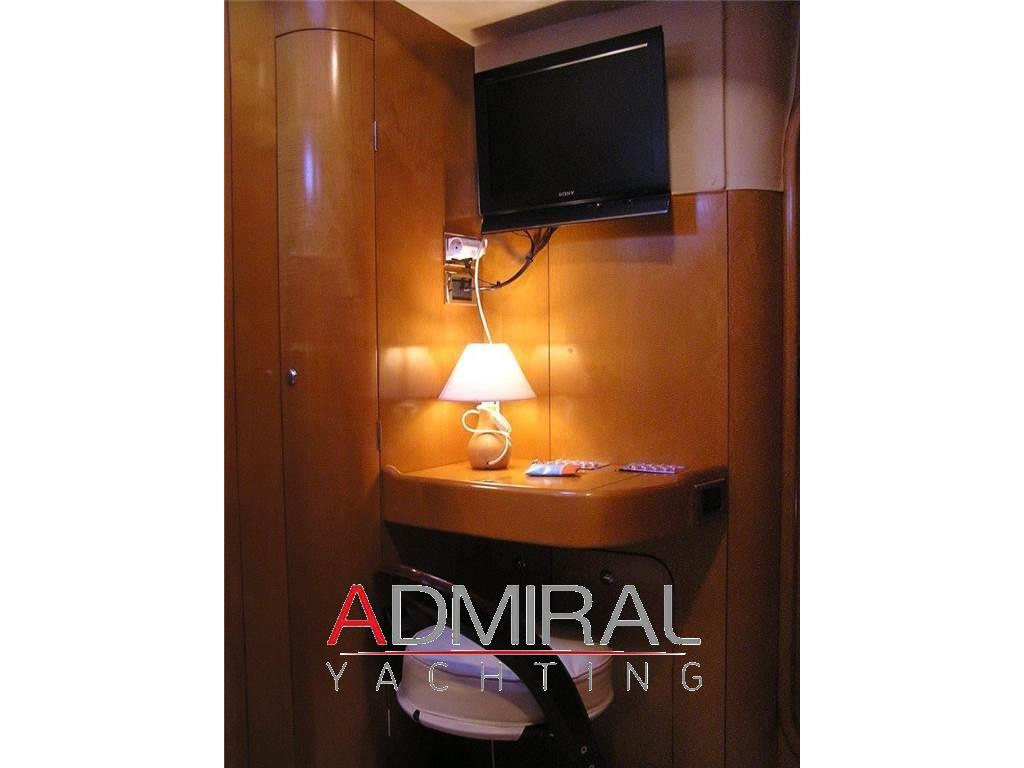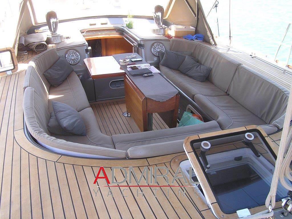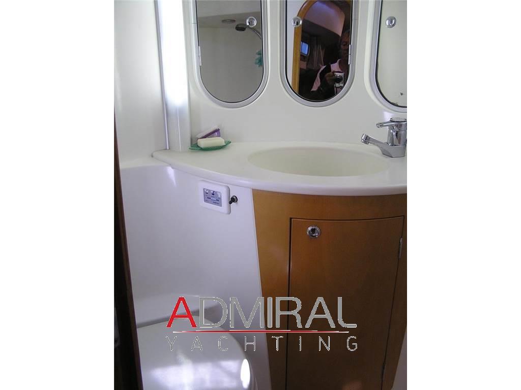 Notas de armamentoAllarme motore, Allarme sentina, Alternatore, Ancora, Autoclave, Batterie, Camminamenti laterali in teak, Caricabatterie, Colorazione speciale, Doccia esterna, Elica di prua - bow thruster, Garage per tender, Impianto antincendio, Luci di cortesia, Luci di navigazione, Passerella, Piattaforma, Pompa di sentina automatica, Pompa di sentina elettrica, Pompa di sentina manuale, Ponte in teak, Porta ingresso, Pozzetto Teak, Presa 220V banchina, Salpa Ancore Elettrico, Scaletta da bagno, Tavolo pozzetto, Altoparlanti, Aria condizionata, Bimini, Boiler, Cappottina, Congelatore, Cucina, Cuscineria completa, Cuscineria di poppa, Cuscineria di prua, Cuscineria Pozzetto, Digitale Terrestre, Dissalatore, Fornello, Frigorifero interno, ICE Maker, Impianto acque nere, Impianto TV, Inverter, Prese interne 220v, Radio AM/FM, Stereo, Telo copriconsolle, Tendalino, WC marino elettrico