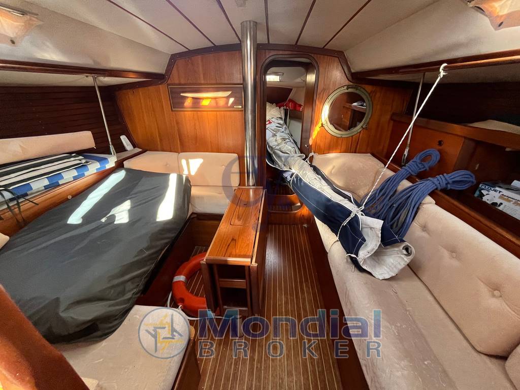 Notas internasbagno ospiti non in uso, utilizzato come armadio/cala vele. Comoda Dinette con divani sovrapposti ( cuscineria originale ).Cucina equipaggiata con lavello, piano cottura, frigorifero e forno.Tavolo da carteggio.Ampi gavoni in pozzetto. Notas de la instrumentaciónBussola - Auto Pilota - Vhf - Pack elettronica tridata.Notas de armamentoAlbero e boma in alluminio - Unità refrigerante elettrica - 3° batterie - pompa acqua dolce - Tavolo - Lazy bag - Pozzetto in teck - Interni inlegno - Radio stereo CD - Pompa di sentina elettrica/manuale - Impianto elettrico 12/220v - Caricabatterie - Boiler - Bimini – Scaletta bagno – Salpancore - doccia esterna - passerella - cuscineria esterna per il pozzetto - tendalino e cappottina - due ancore con catena da 10mm. Vele: Vele in buono stato e sempre rimessate - Randa 10 anni - Fiocco 5 anni- Mps - N° 6 Winches - Drizze |